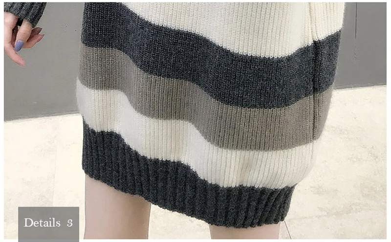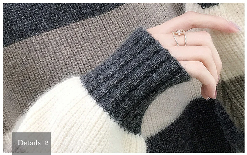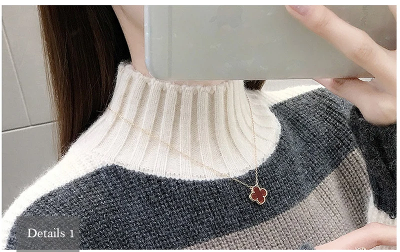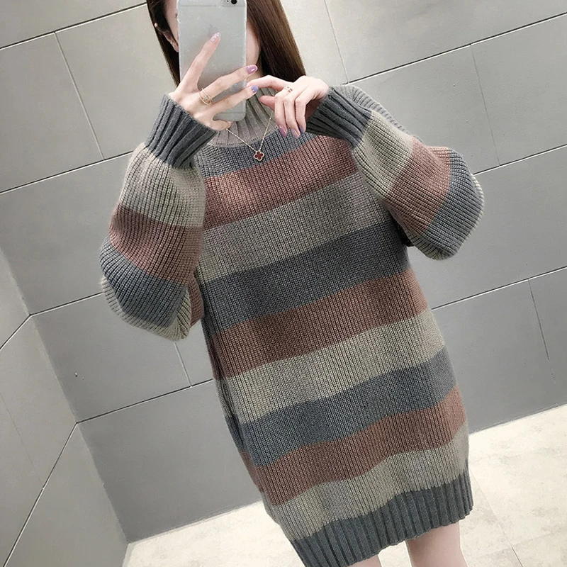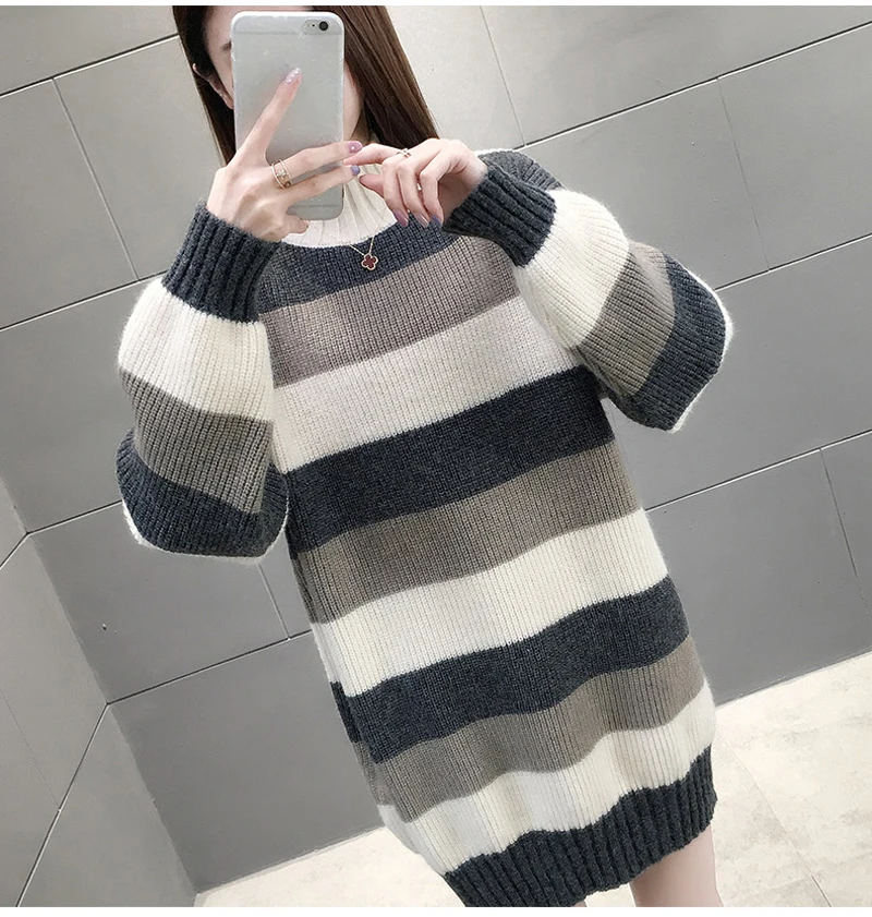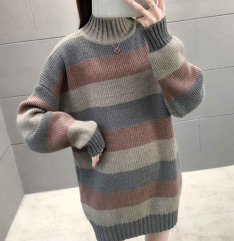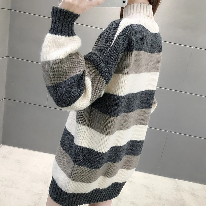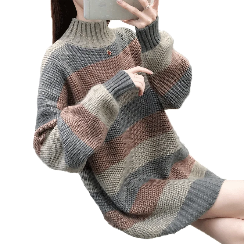 JMPRS Winter Striped Women Pullover Sweater Loose Long Sleeve Thick Turtleneck Knitted Jumper Sweater Coat Casual Ladies Top