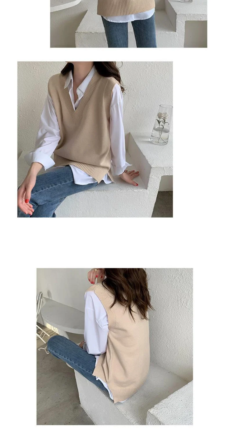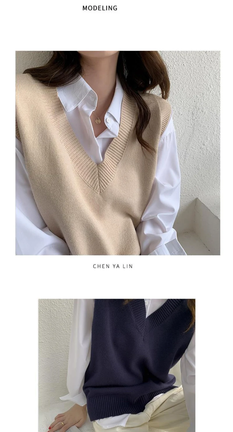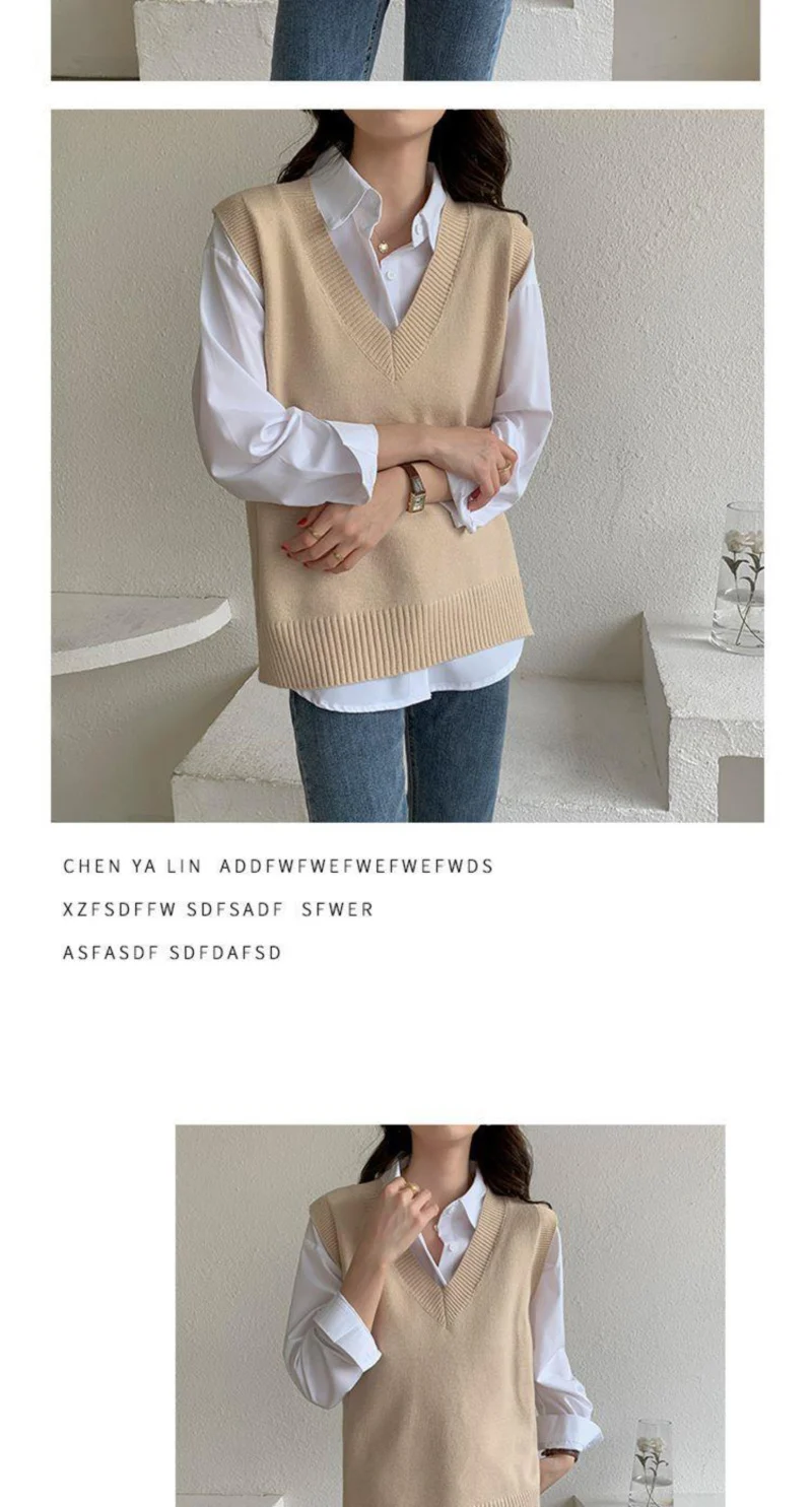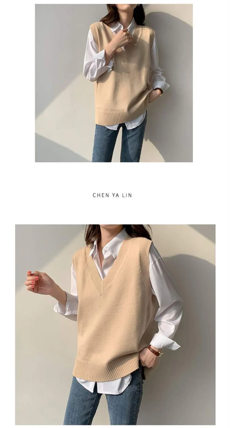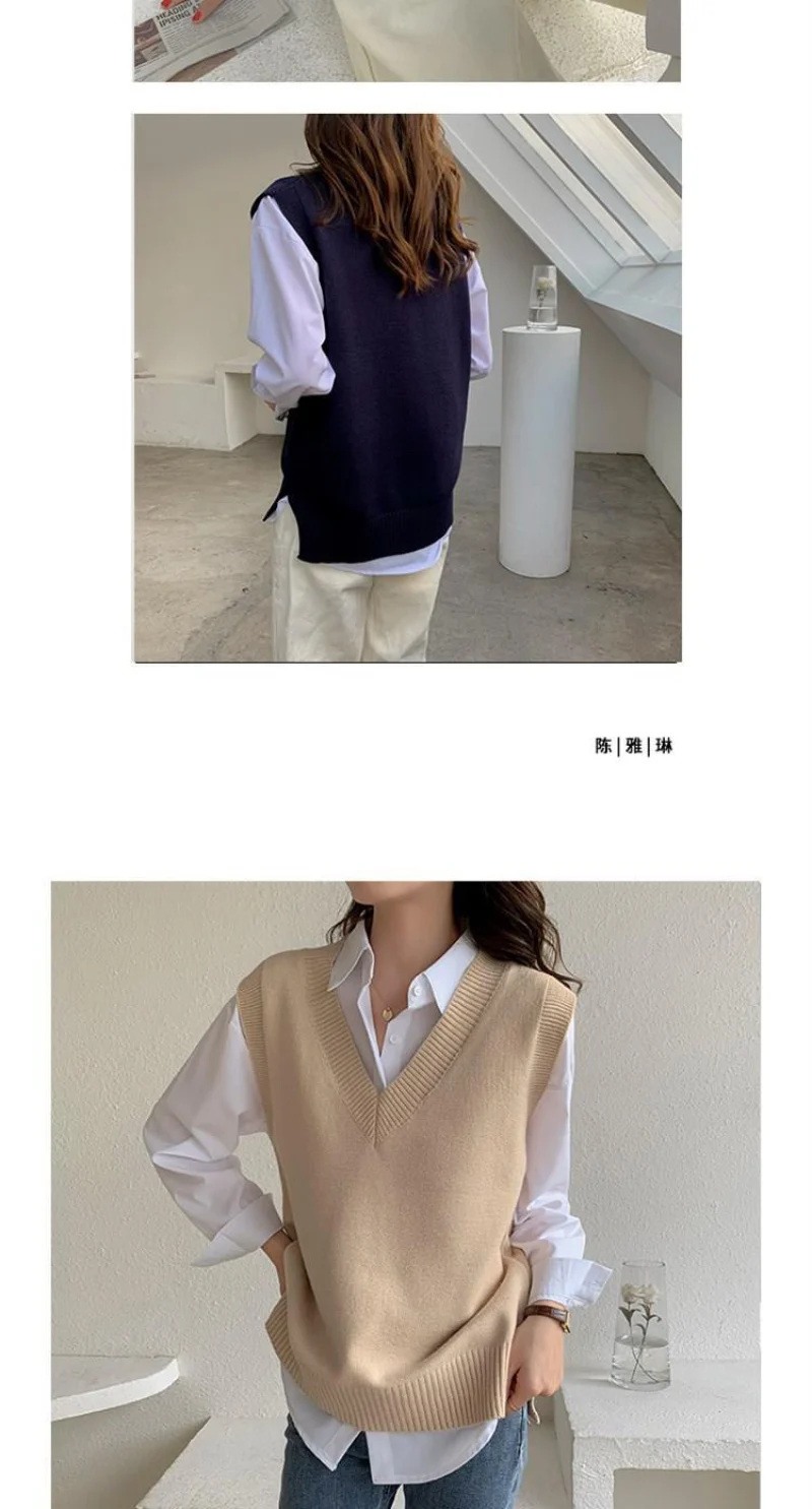 JMPRS Women Sweater Vest Autumn V-neck Knit Pullover Solid Simple Slim All-match Casual Korean Sleeveless Vintage Vest New