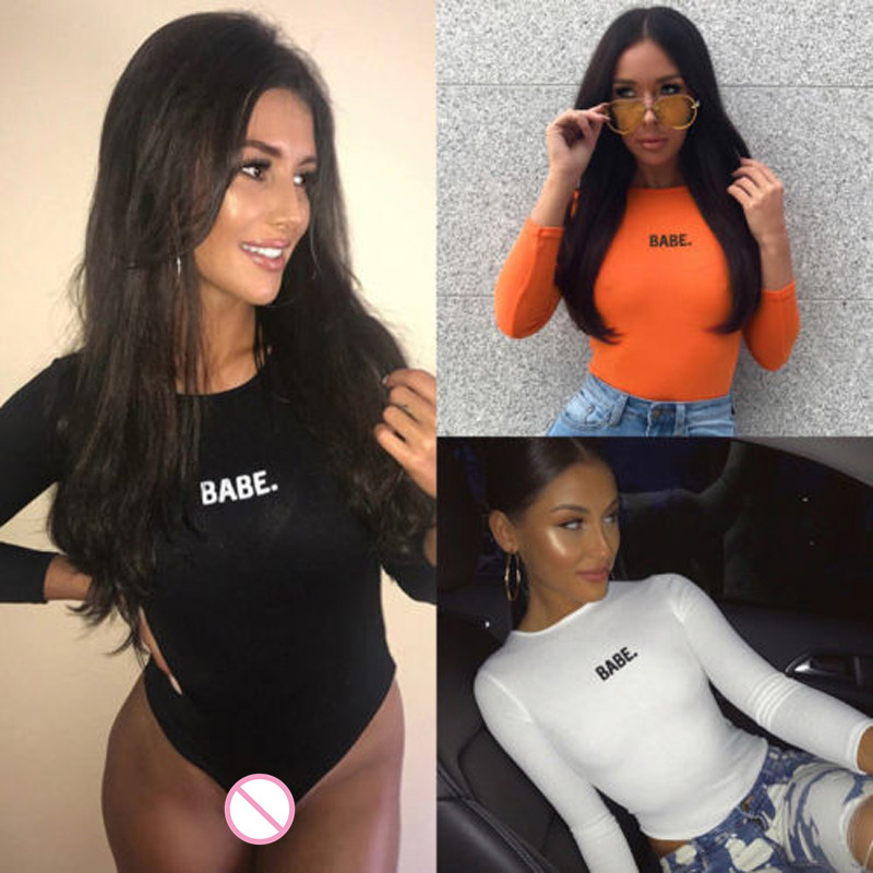Kayotuas Women Bodysuit Fashion Sexy Letter Long Sleeve Casual Skinny Autumn Winter O-Neck Hot Sale Ladies Bodycon Leotard