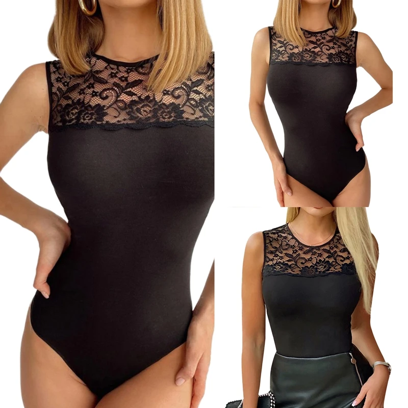 Kayotuas Women Bodysuit Lace Hollow Out Floral Print See-through Skinny Bodycon Slim Tight Skinny Leotard Tops Clubwear