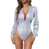 Kayotuas Women Bodysuit Sequin Rhinestone Deep V-Neck Skinny Ladies Bodycon Slim Casual Leotard Romper Tops Streetwear
