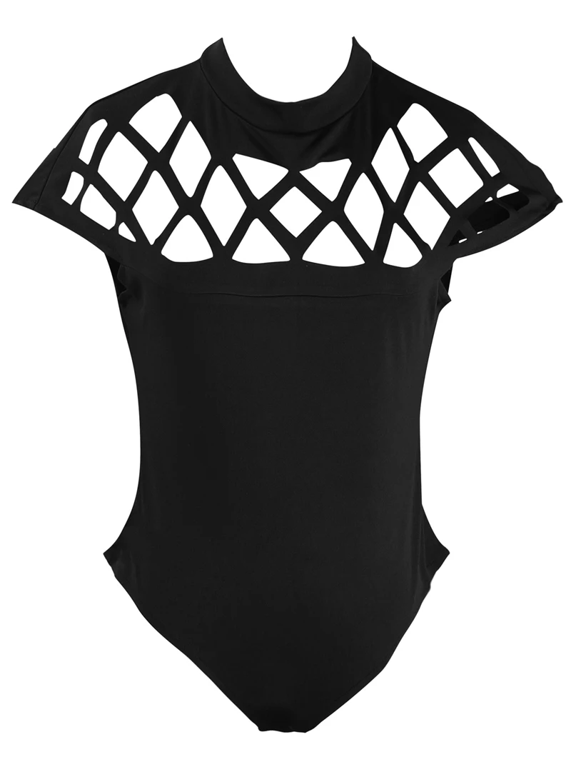 Kayotuas Women Bodysuit Sexy Lady Short Sleeve Turtleneck Black Hollow Out Clubwear Slim Fit Skinny Fashion Stretch Hot Leotard