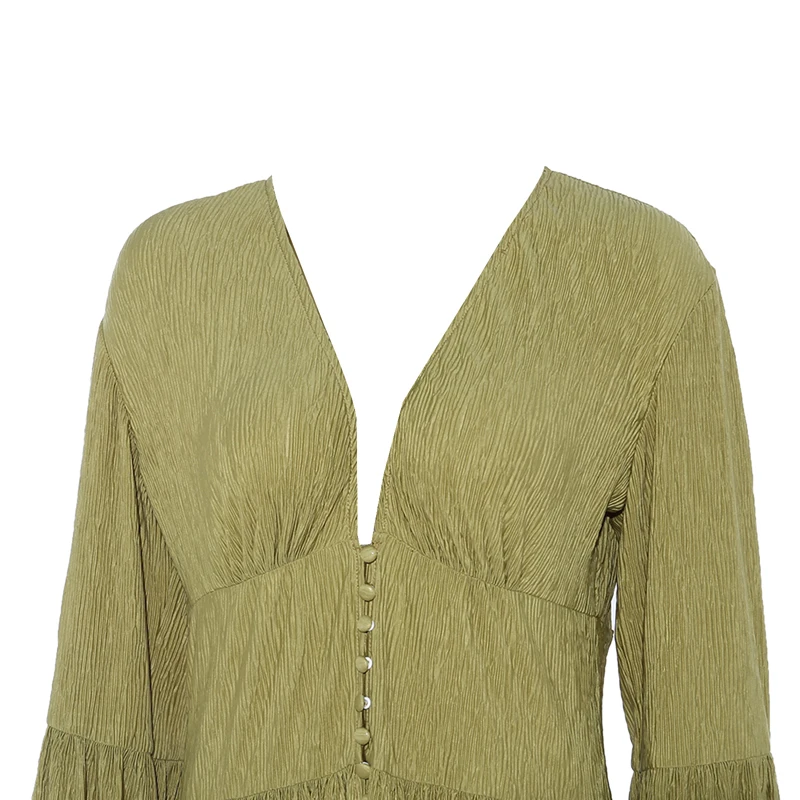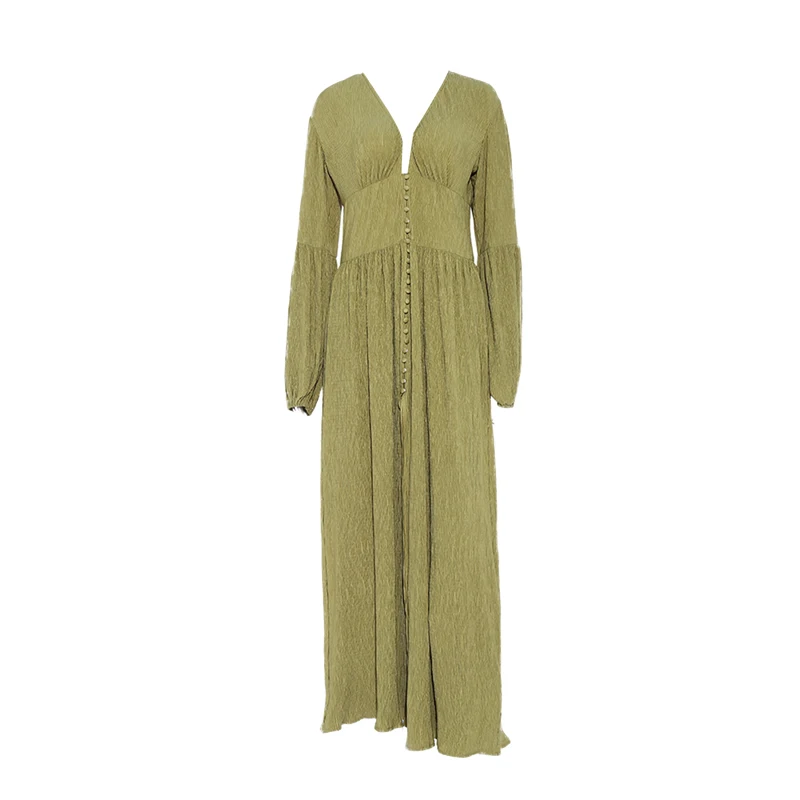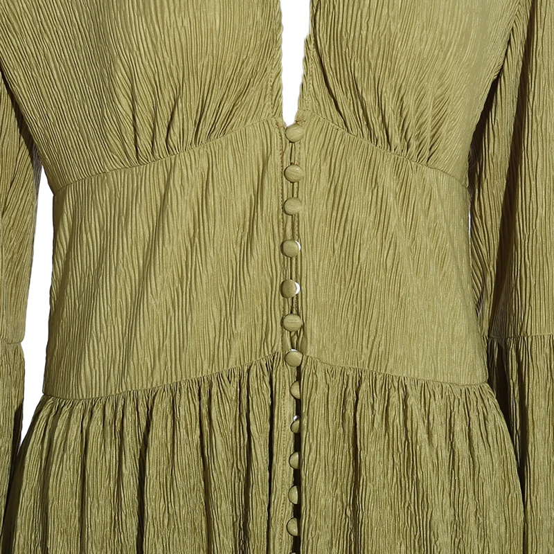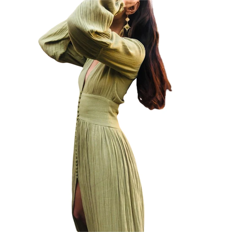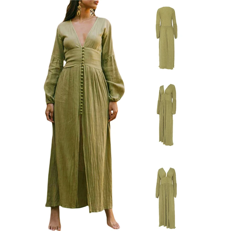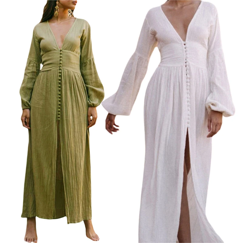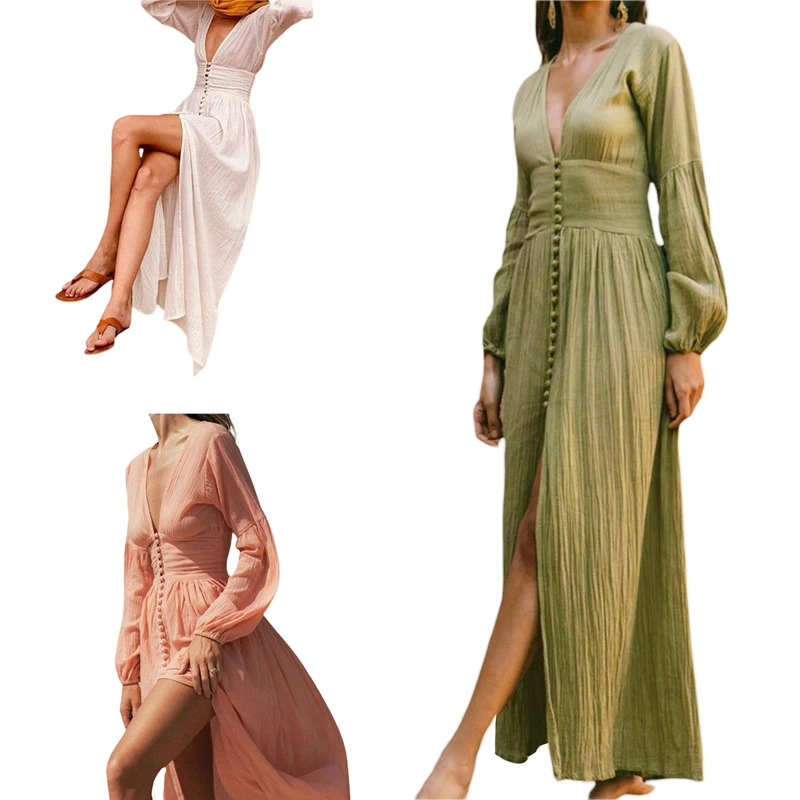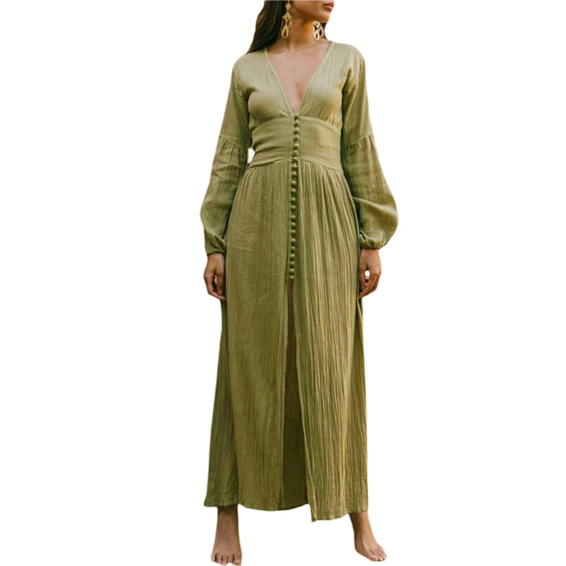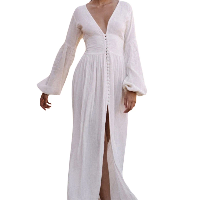 Kayotuas Women Dress Boho Beach V-Neck High Waist Split Slim Casual Ladies Girls Button Korean Fashion Streetwear Bodycon