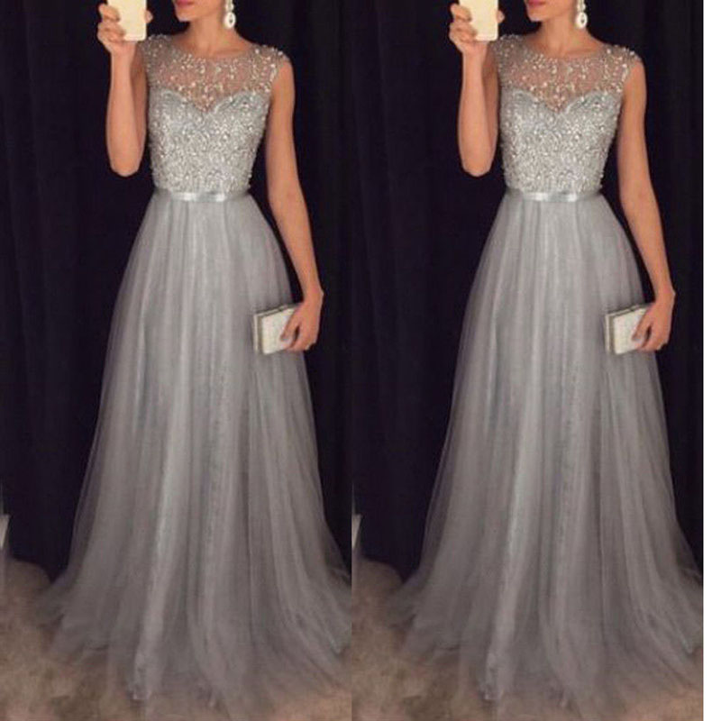 Kayotuas Women Dress Elegant Formal Evening Party Mesh Sleeveless High Waist Sequins Shinning Wedding Ball Gown Long Sundress