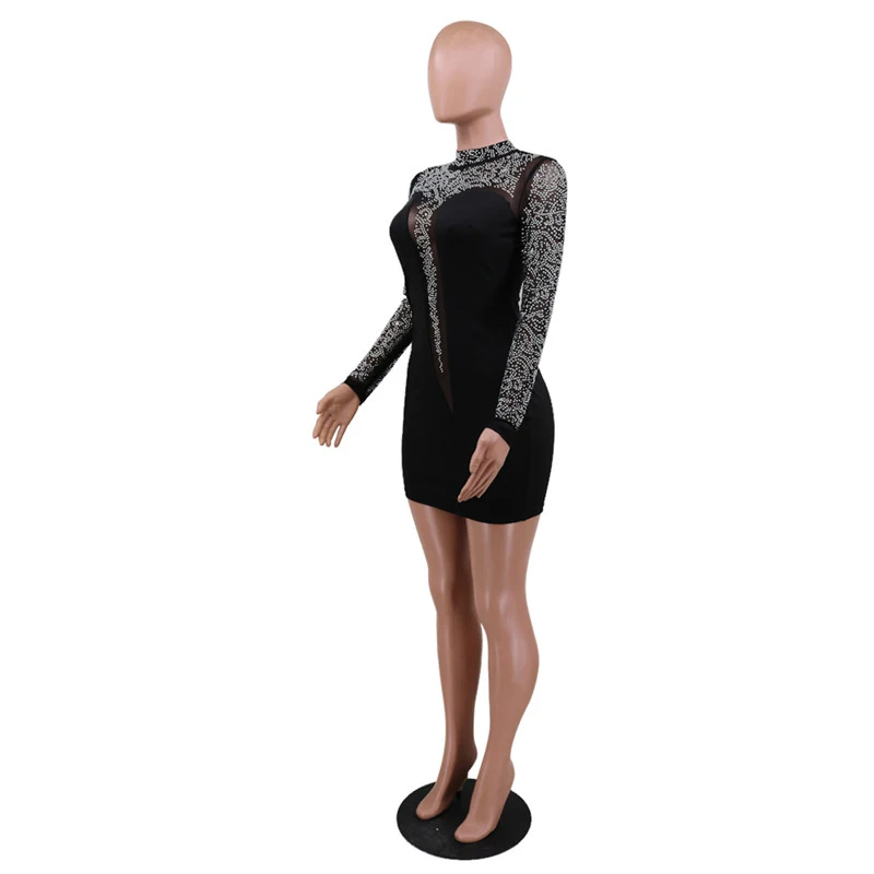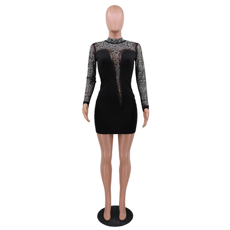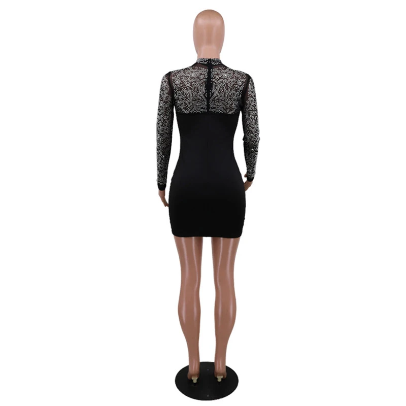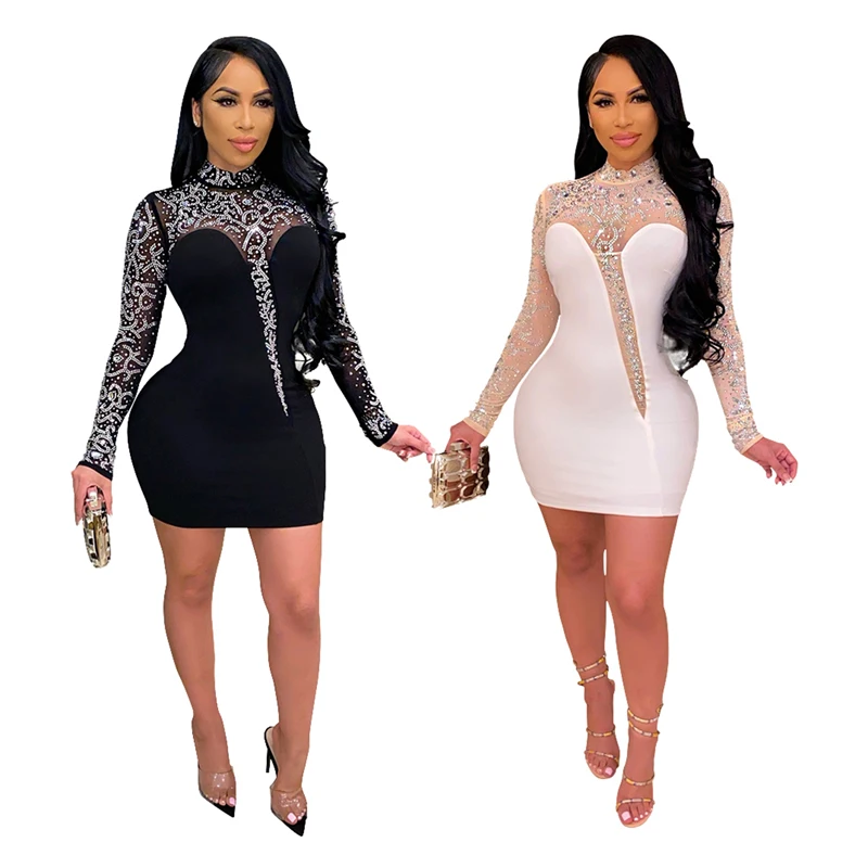 Kayotuas Women Dress Lace Evening Party Formal Elegant Ladies White Bodycon Long Sleeve Hollow Out Female Hot Sequin Clothing