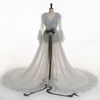 Kayotuas Women Dress Lace Ruffle Front Split Long Maxi Solid White Ball Gown See-Through Evening Party V-Neck Hot Clubwear