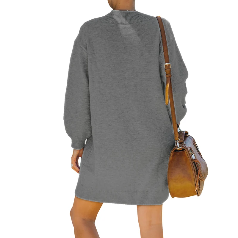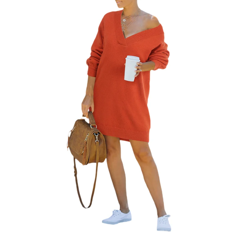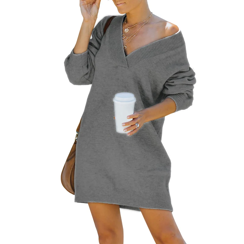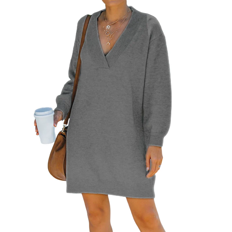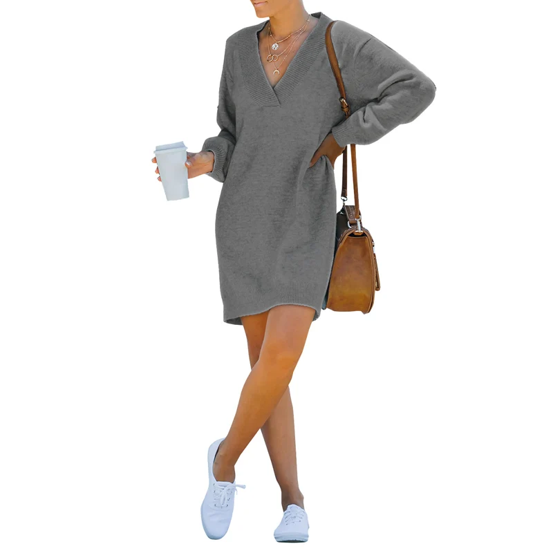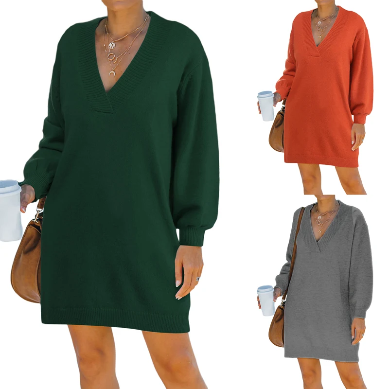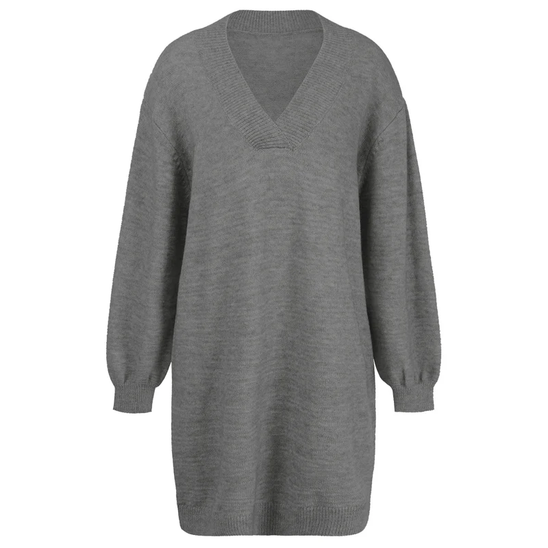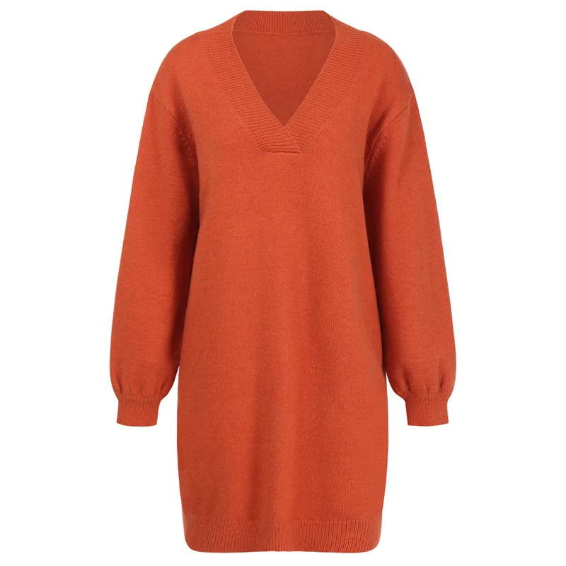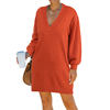 Kayotuas Women Dress Spring Autumn Loose V-Neck Mini Casual New Knitwear Solid Color Female Girls Streetwear Clothing