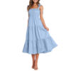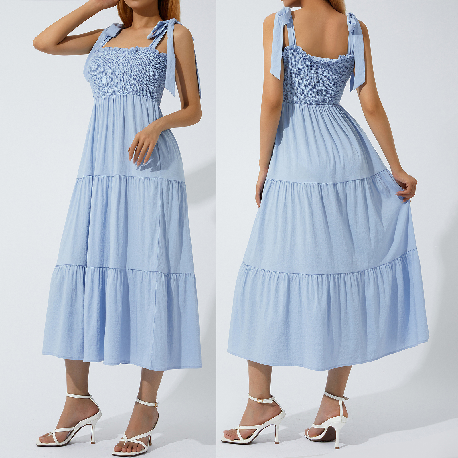 Kayotuas Women Dress Summer Boho Casual Elegant Office Ladies Pleated Hem High Waist A-Line Ruffles Simple Streetwear
