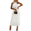 Kayotuas Women Dress Summer Halter Sleeveless Evening Party Pleated Ruched Hollow Out Elegant Office Ladies Chiffon Streetwear