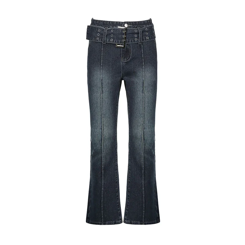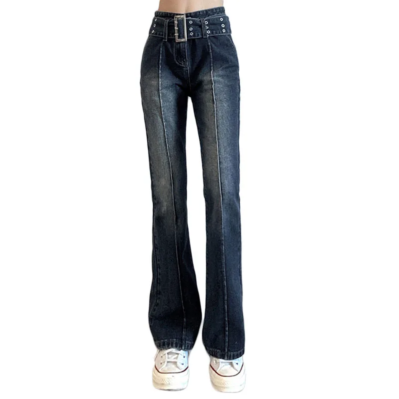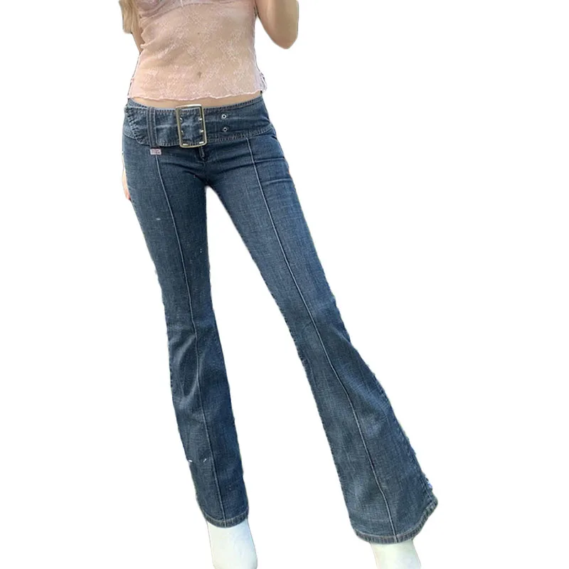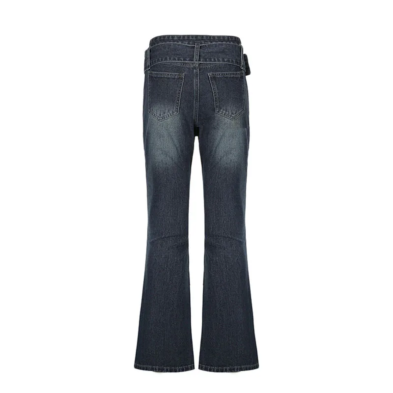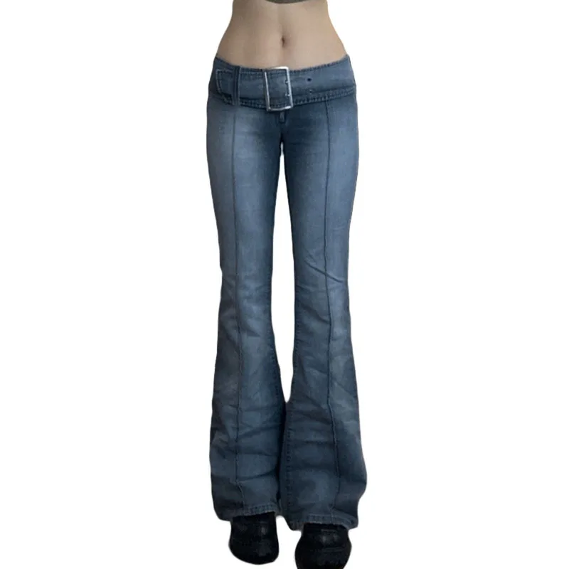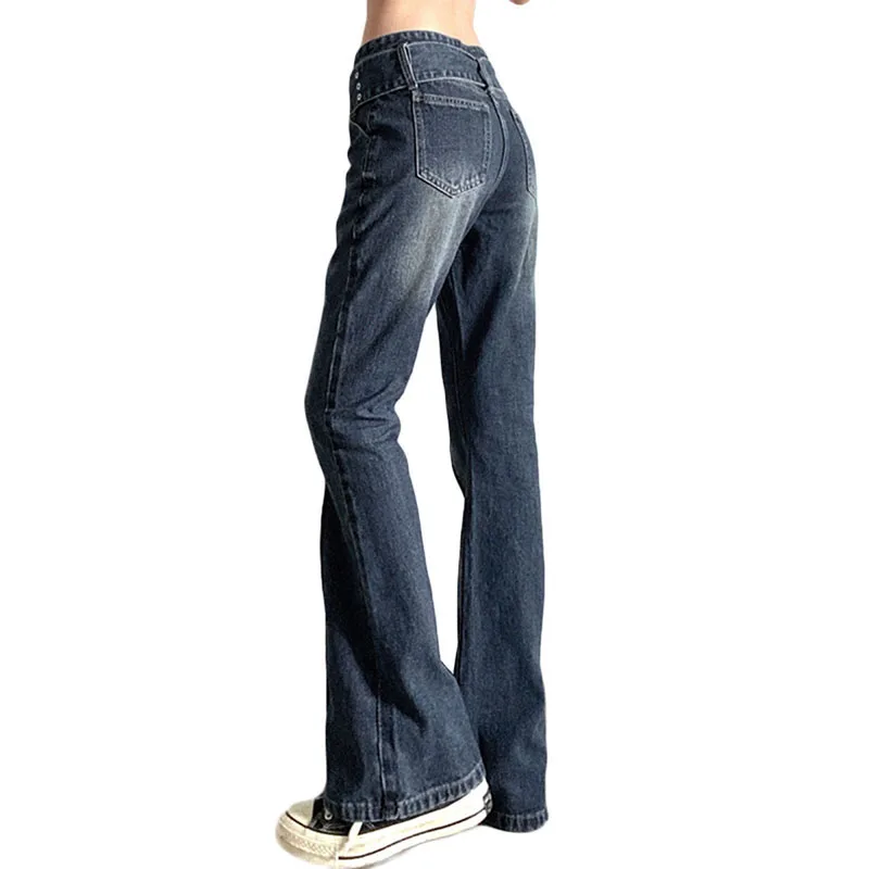 Kayotuas Women Flare Pants Loose Denim Buckle Classic Basic Fashion Chic Trousers Streetwear Vintage Clothes 90s