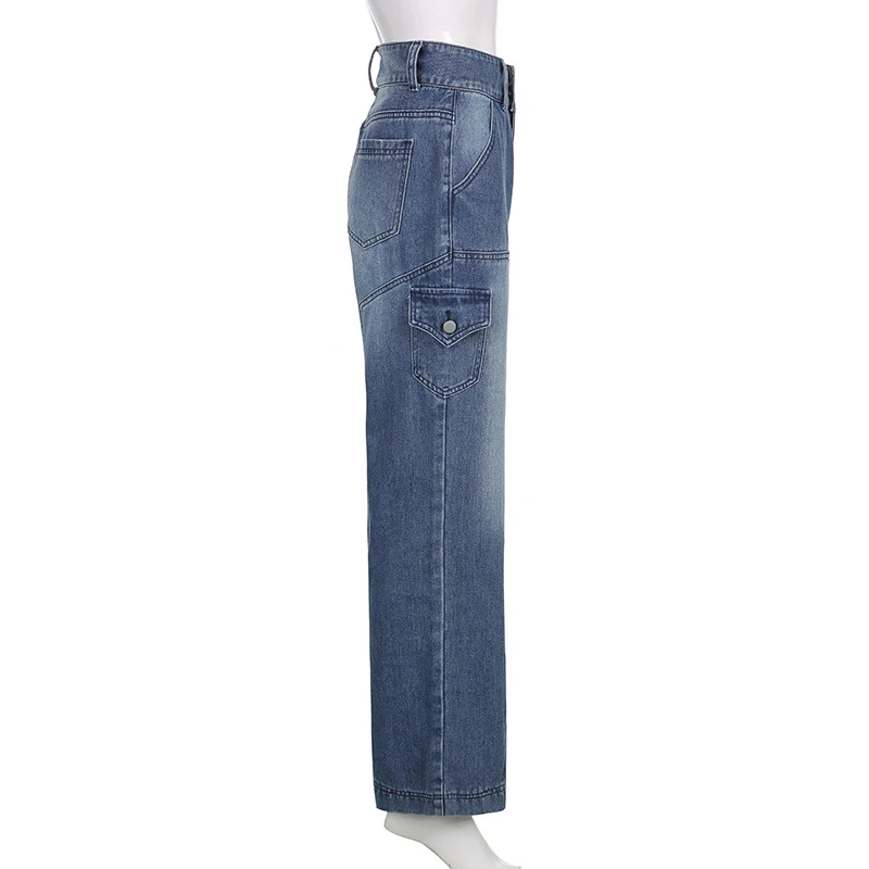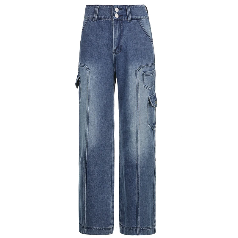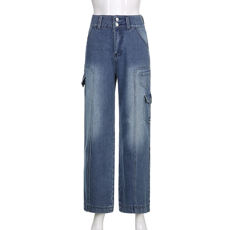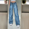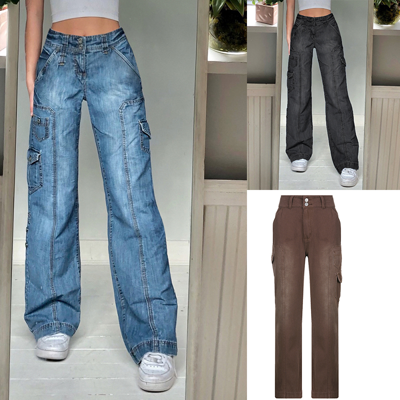 Kayotuas Women Jeans Cargo Trousers Loose Wide Leg With Pocket Running Outdoors Gym Fitness Jogger Casual Denim Streetwear Hot