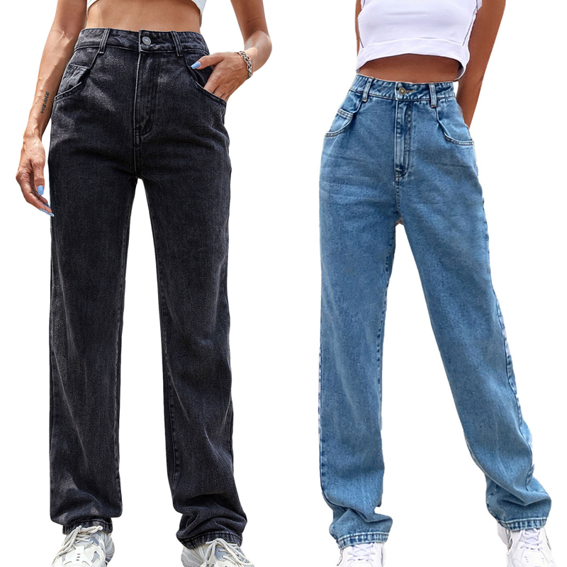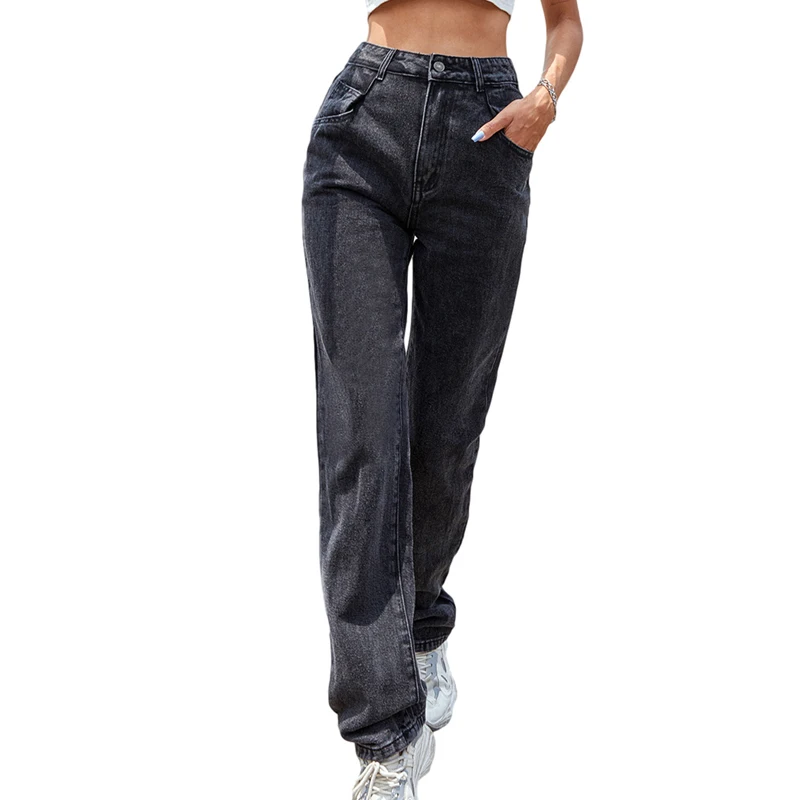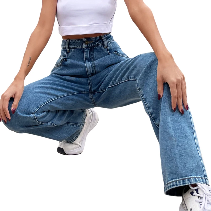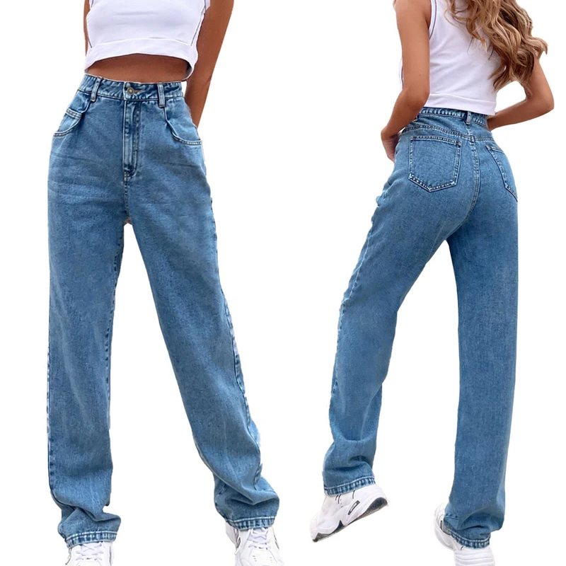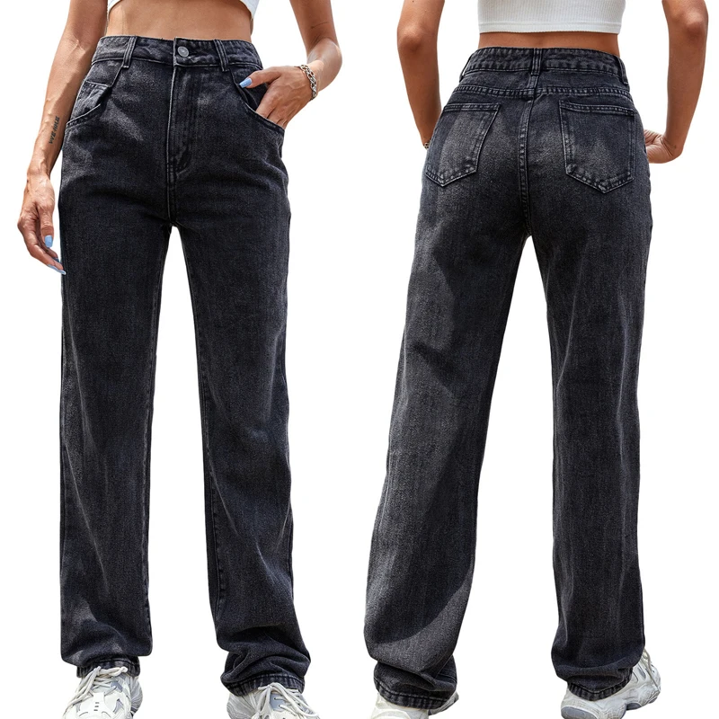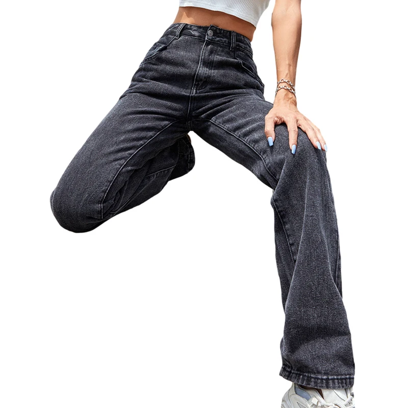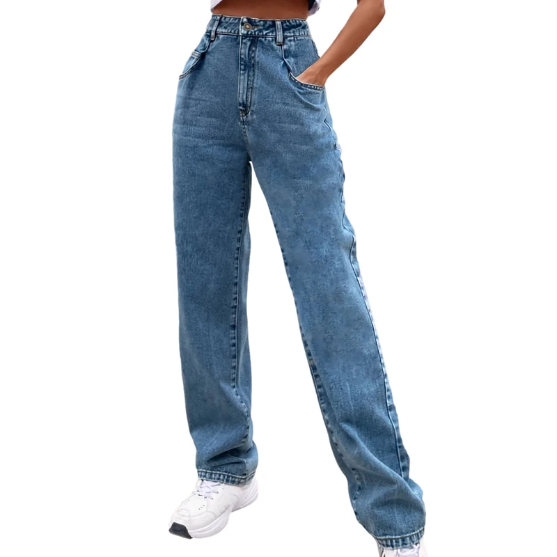 Kayotuas Women Jeans Denim Blue Black XS-L Loose Wide Leg High Waist Fashion Chic Trousers Basic Ladies Streetwear