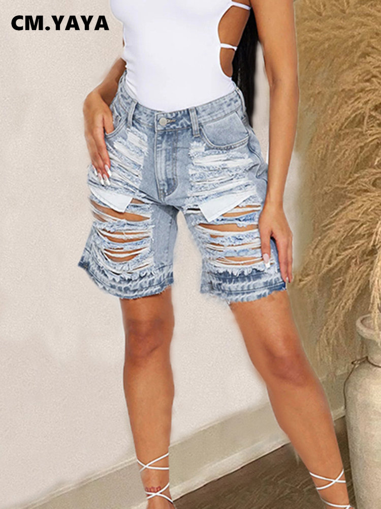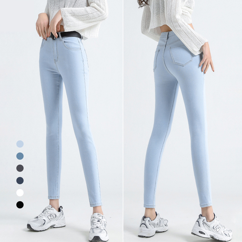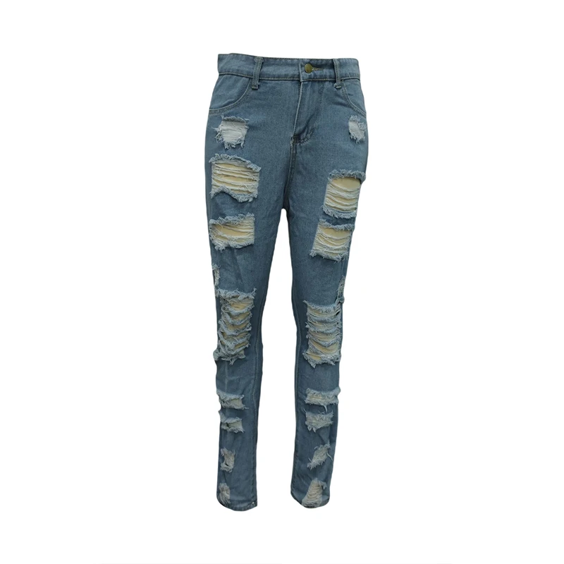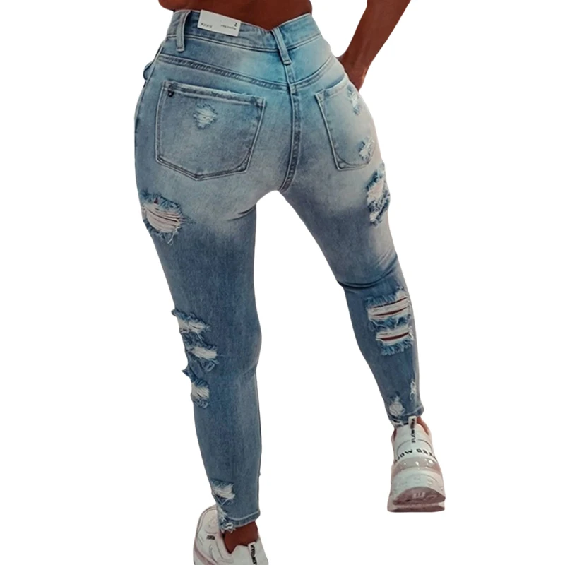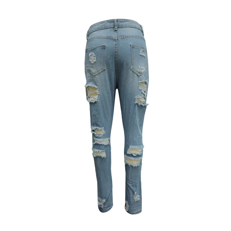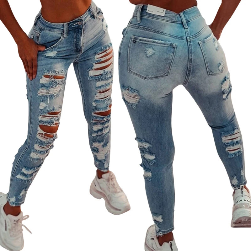 Kayotuas Women Jeans Denim Blue High Waist Ripped Hole Hollow Out Pencil Trousers Skinny Ladies Basic Streetwear S-3XL