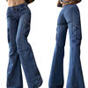 Kayotuas Women Jeans Flared Cargo Trousers with Pocket Loose Wide Leg Denim Blue High Street New Fashion Chic Bottoms