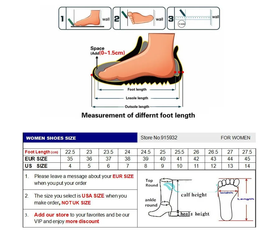 US4=EU35=Foot long 22.5CM US5=EU36= Foot long23CM