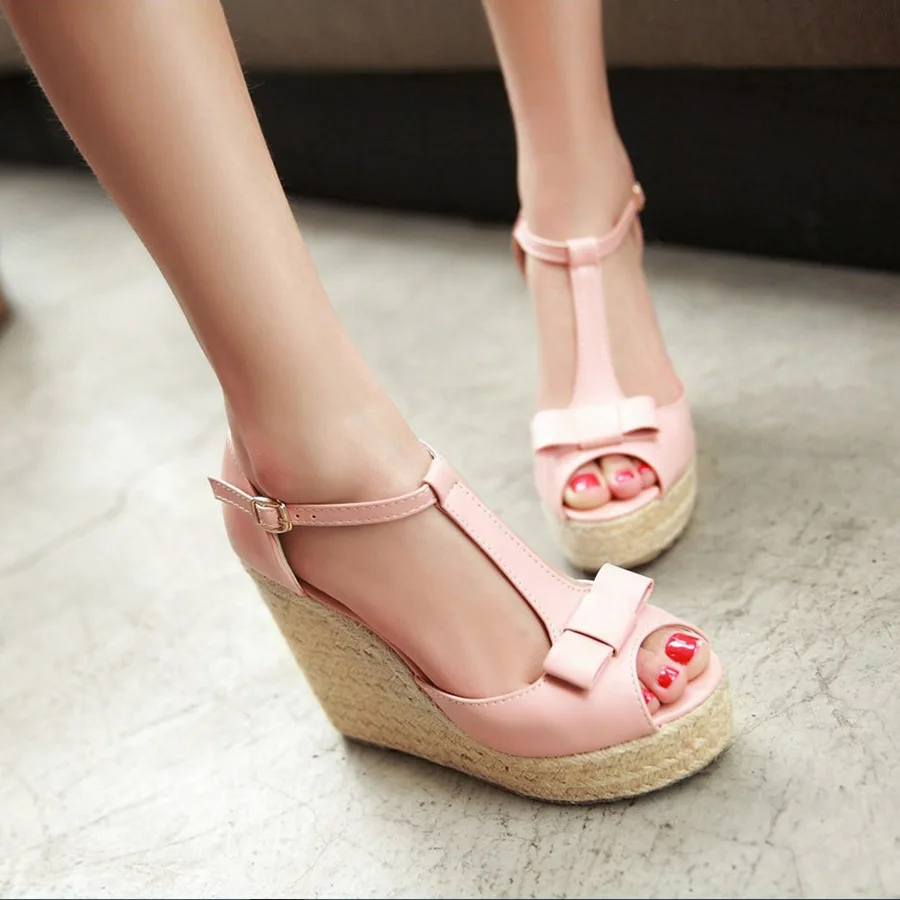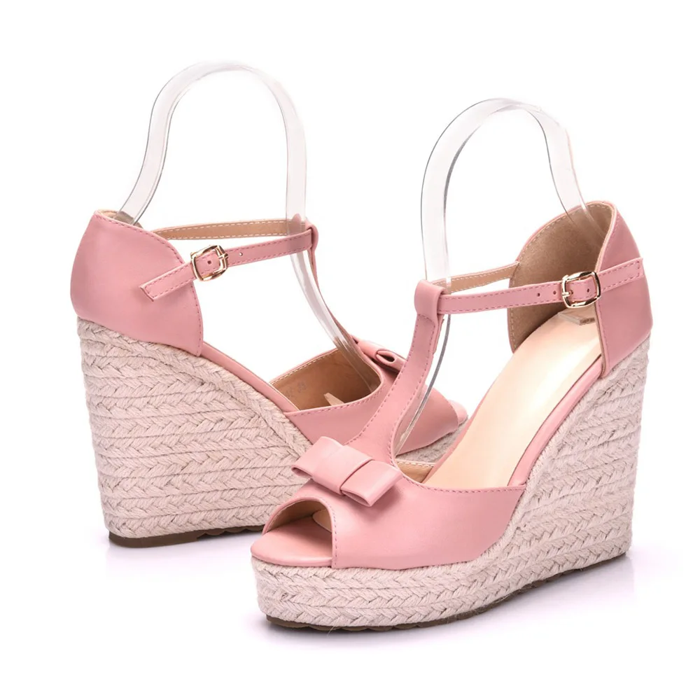 KNCOKAR Spring Summer New Wedge Sandals Female Waterproof Platform Fish Mouth Straw Braided High Heel Sandals National Wind 11cm