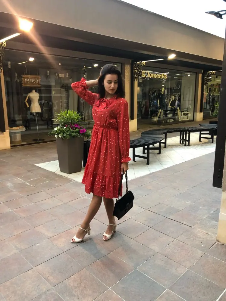 Delivery to Mo 19 days is good. Dress 100% synthetics, but pleasant to the body. The seams are well worked out, there was almost no thread, the only "but"-not neatly processed neckline. After hand washing, the dress did not shed. In general, for such money, I'm happy with the purchase, I plan to wear it.