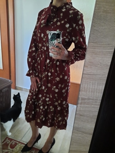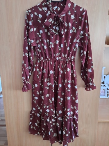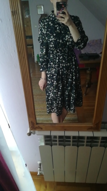 Nice dress, the material is soft. The size is ok, I ordered S, I'm 1.62 and my parameters are 84-60-85. The only problem is that it is slightly loose (can be seen in the picture).