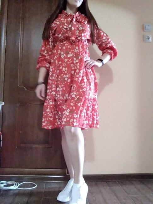 Excellent dress, but slightly translucent. It is necessary to take beige underwear for him. And still buy an antistatic, as the fabric sticks to the skin. But very cute, refreshing!