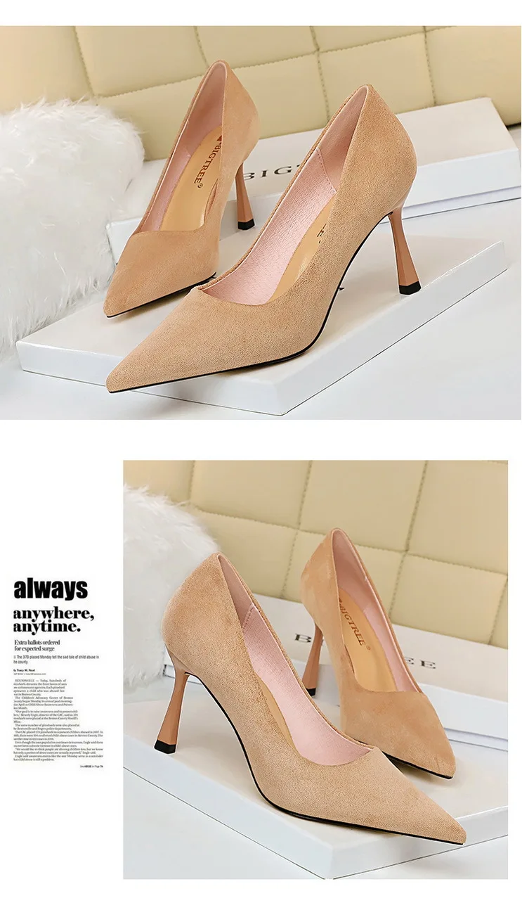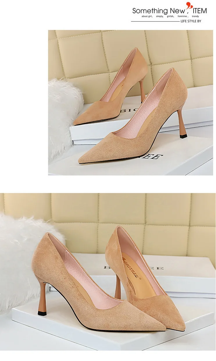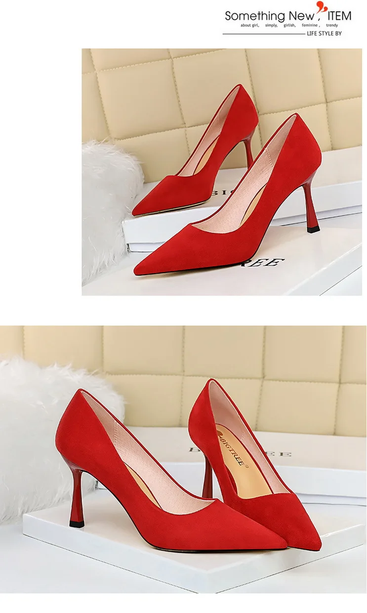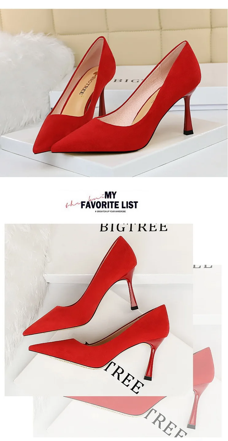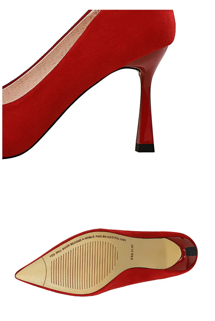 Korean Version of the Simple Thin Heel High Suede Suede Shallow Mouth Pointed Show Thin Sexy Nightclub High Heels Wedding Shoes