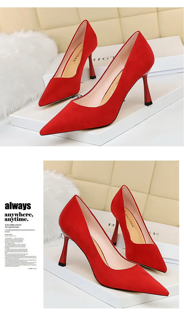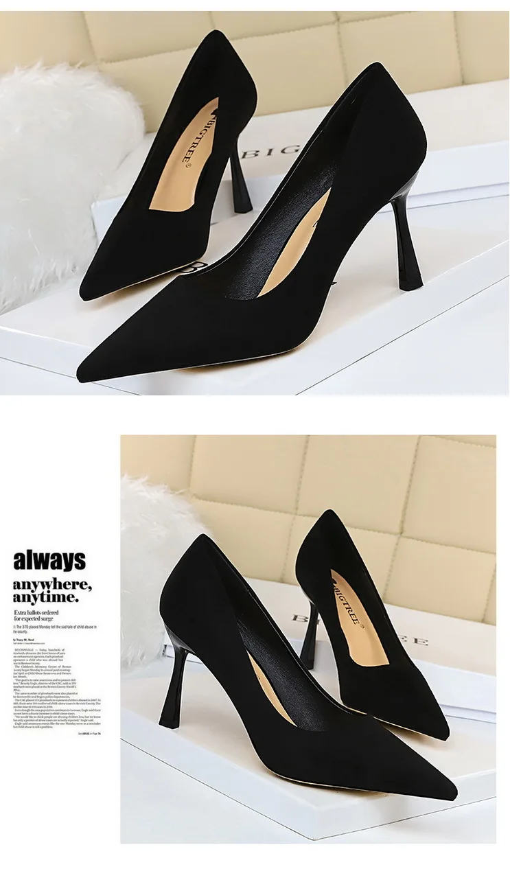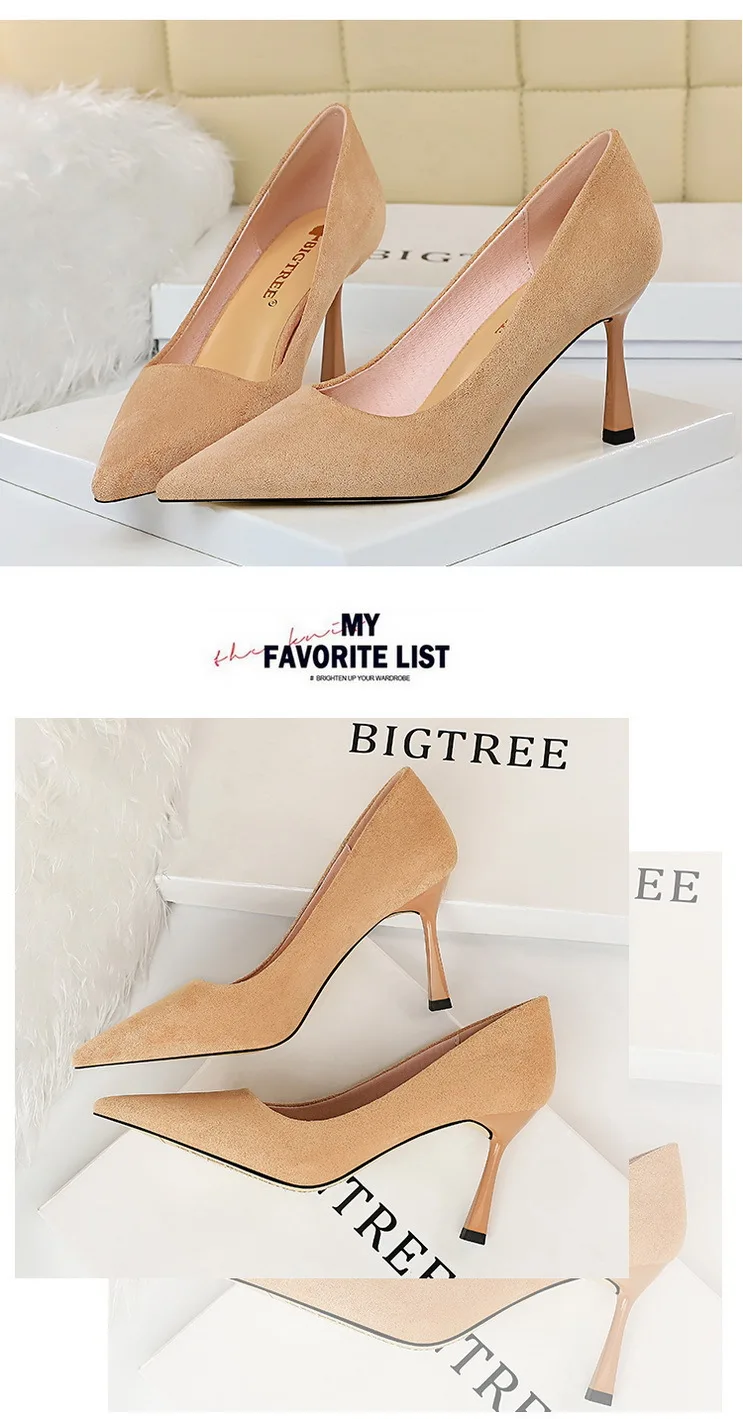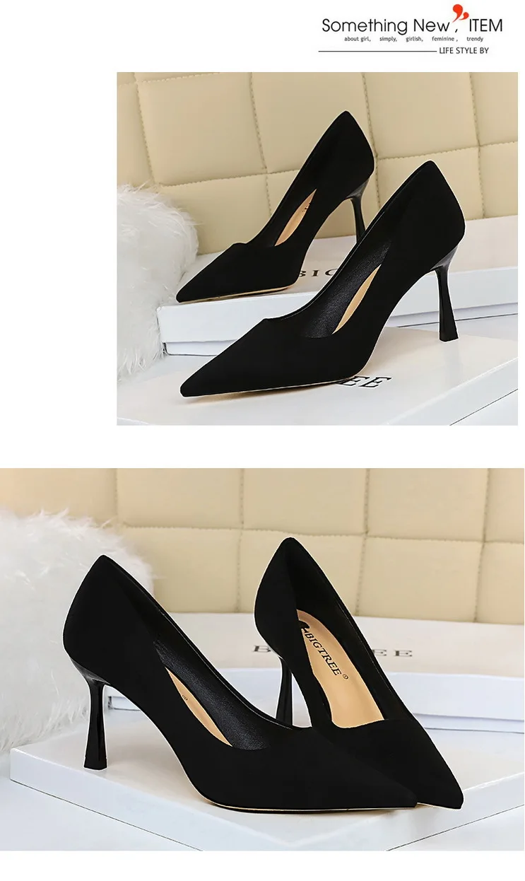 Korean Version of the Simple Thin Heel High Suede Suede Shallow Mouth Pointed Show Thin Sexy Nightclub High Heels Wedding Shoes