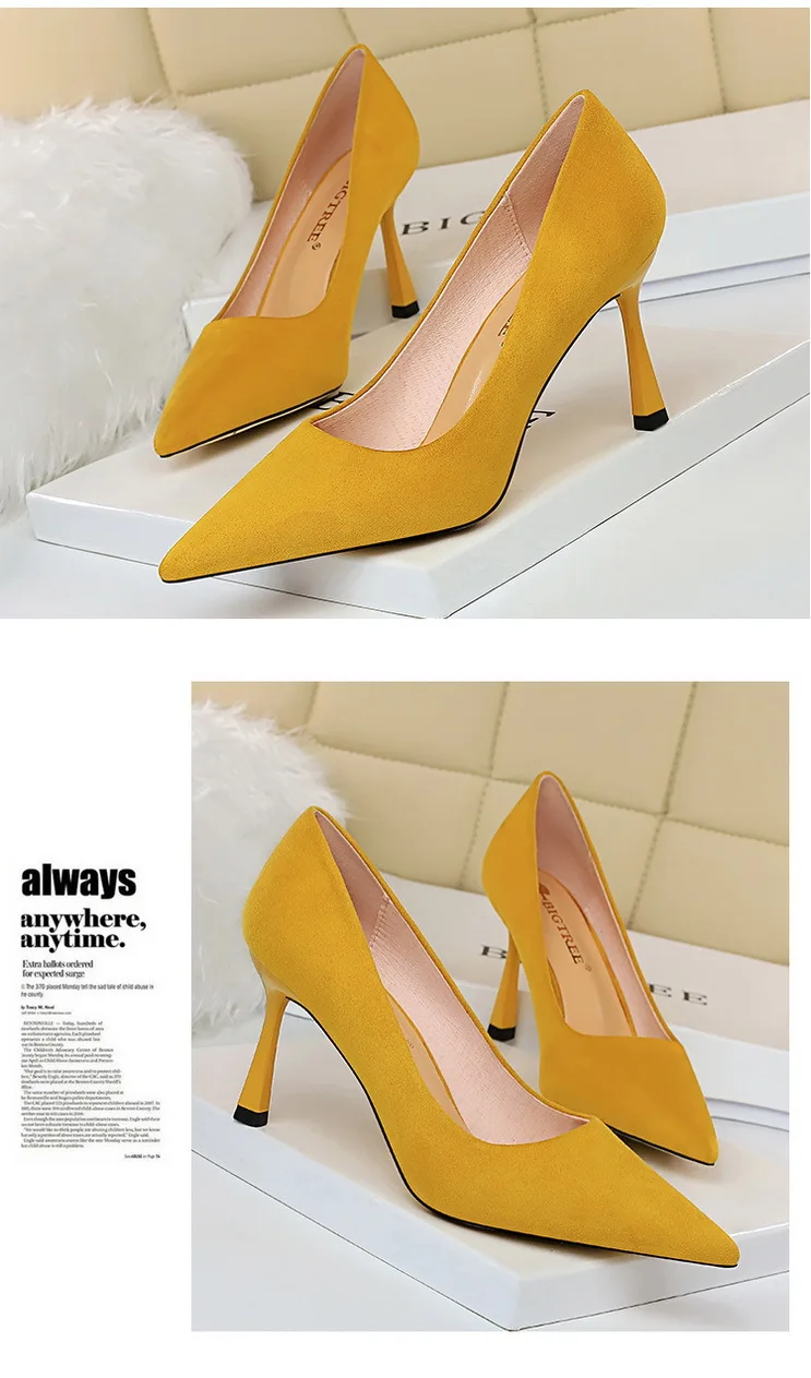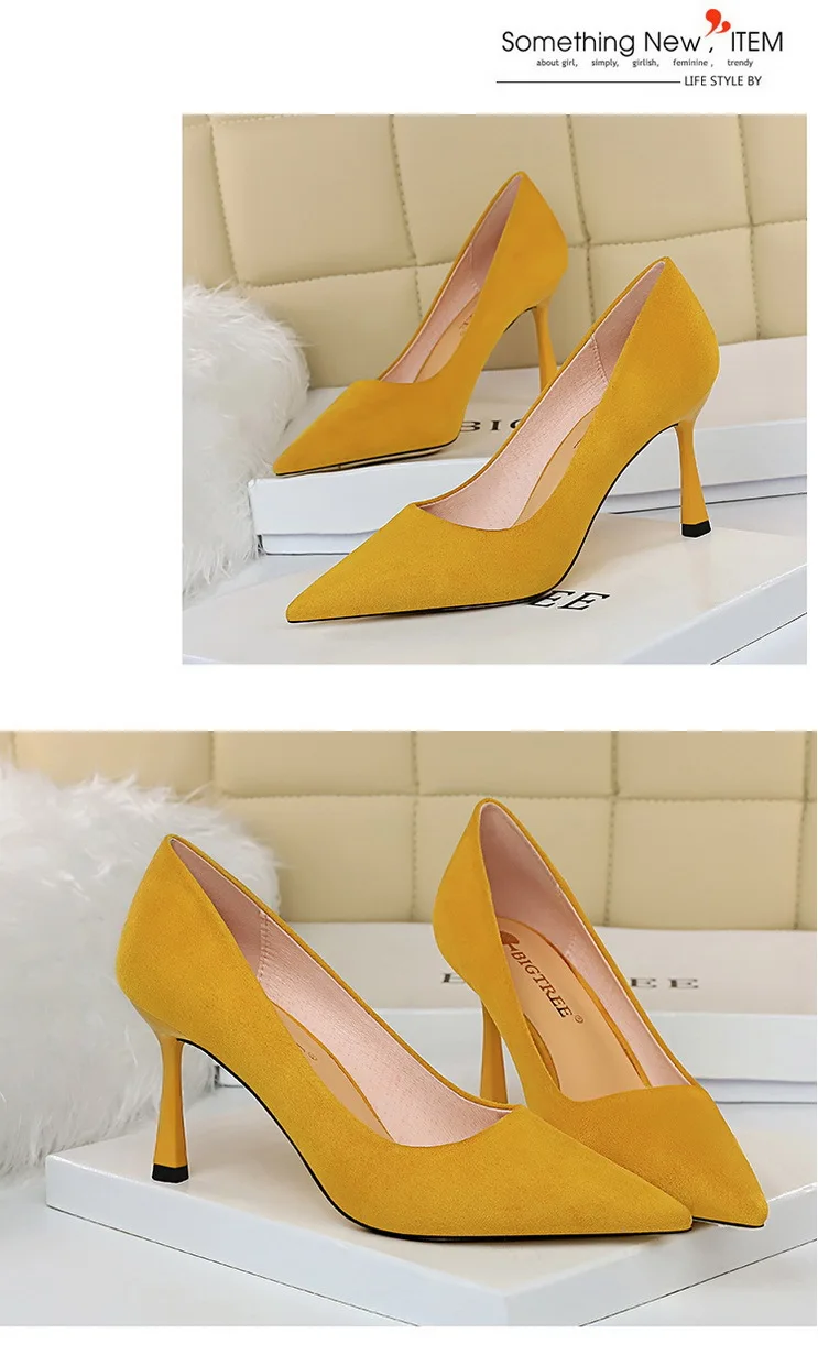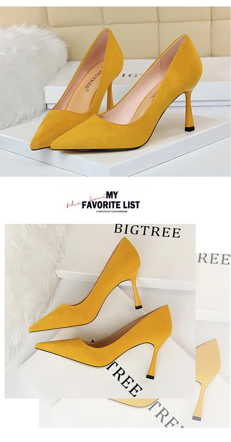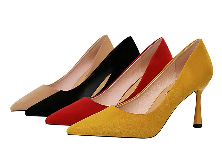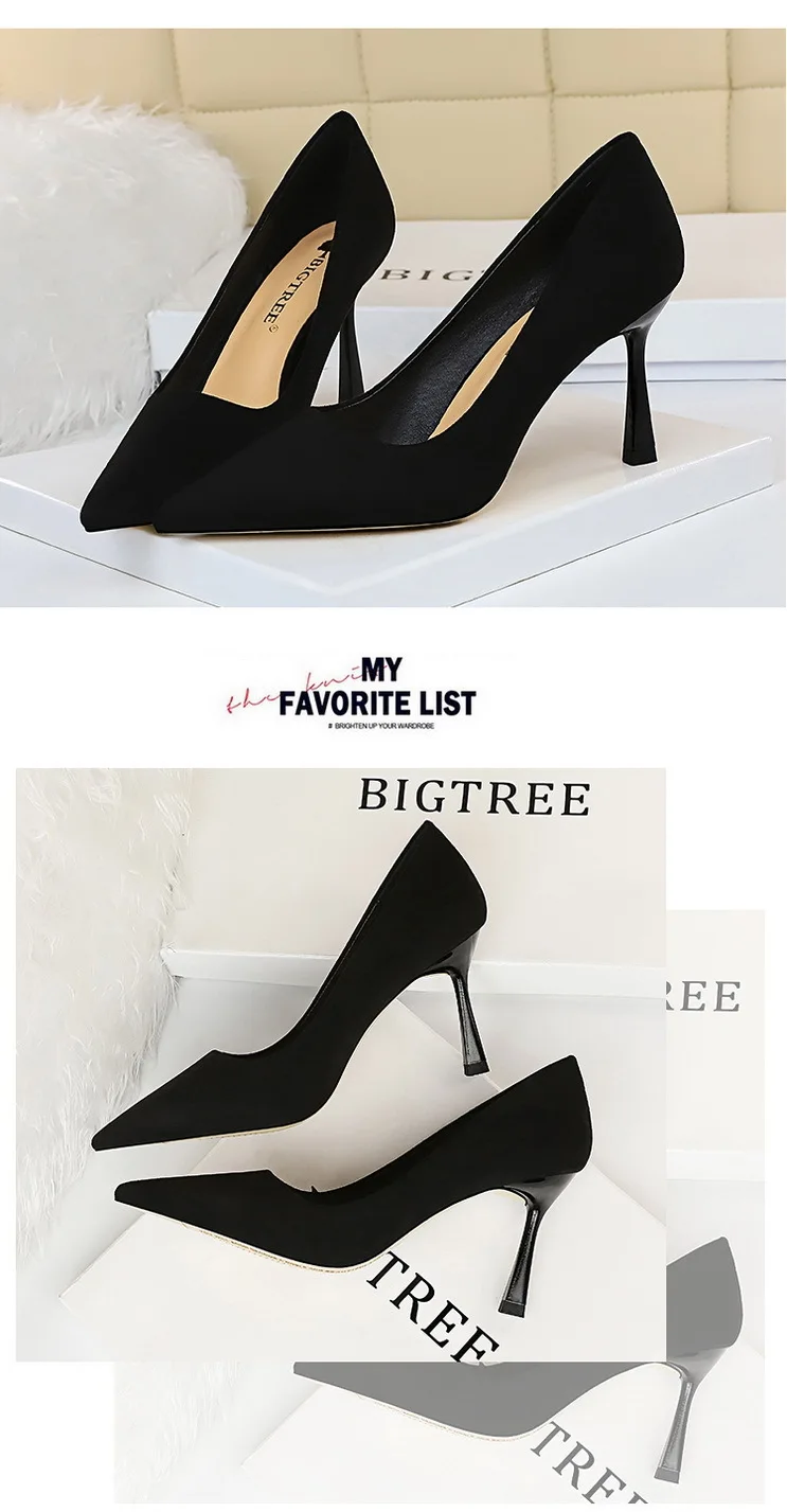 Korean Version of the Simple Thin Heel High Suede Suede Shallow Mouth Pointed Show Thin Sexy Nightclub High Heels Wedding Shoes
