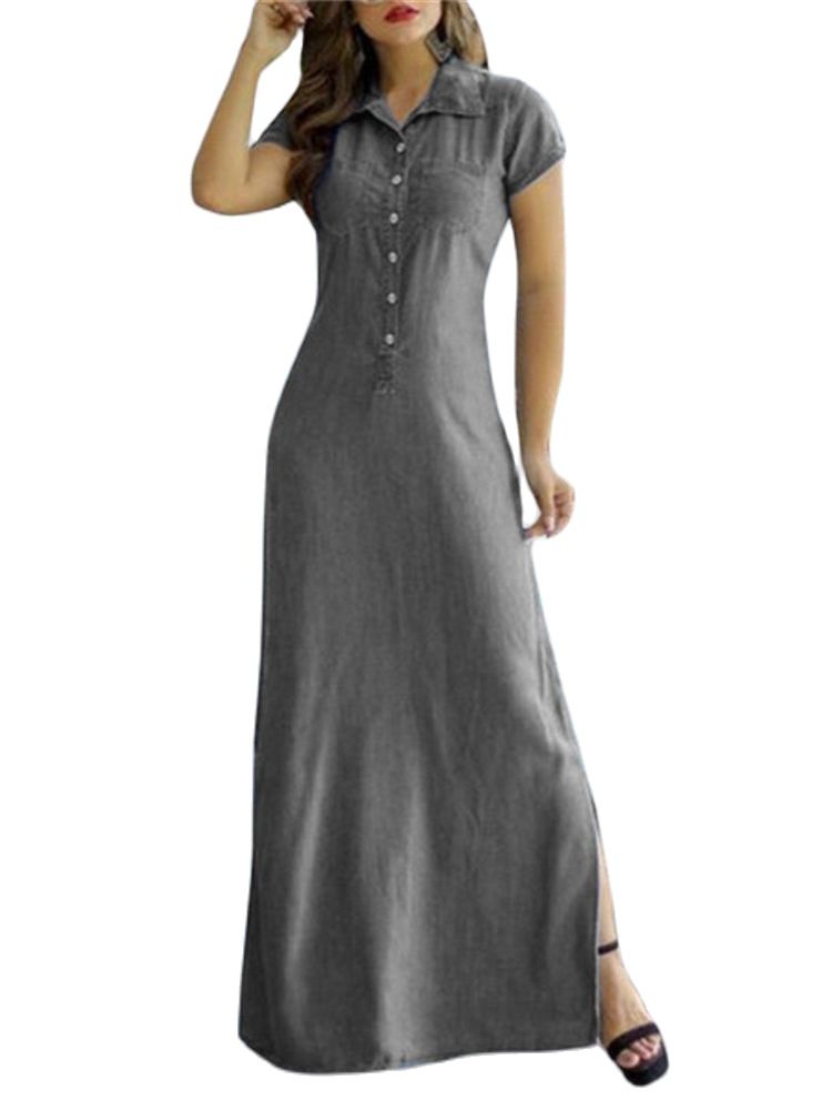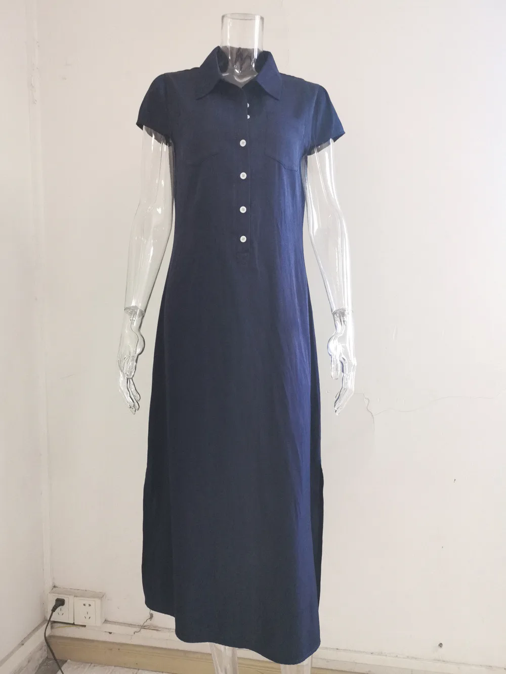 Ladies Dress Shirt Collar Slit Pocket Large Swing Skirt Black Casual Street Denim Dress 5XL 2022 Summer Women's New Long Skirt
