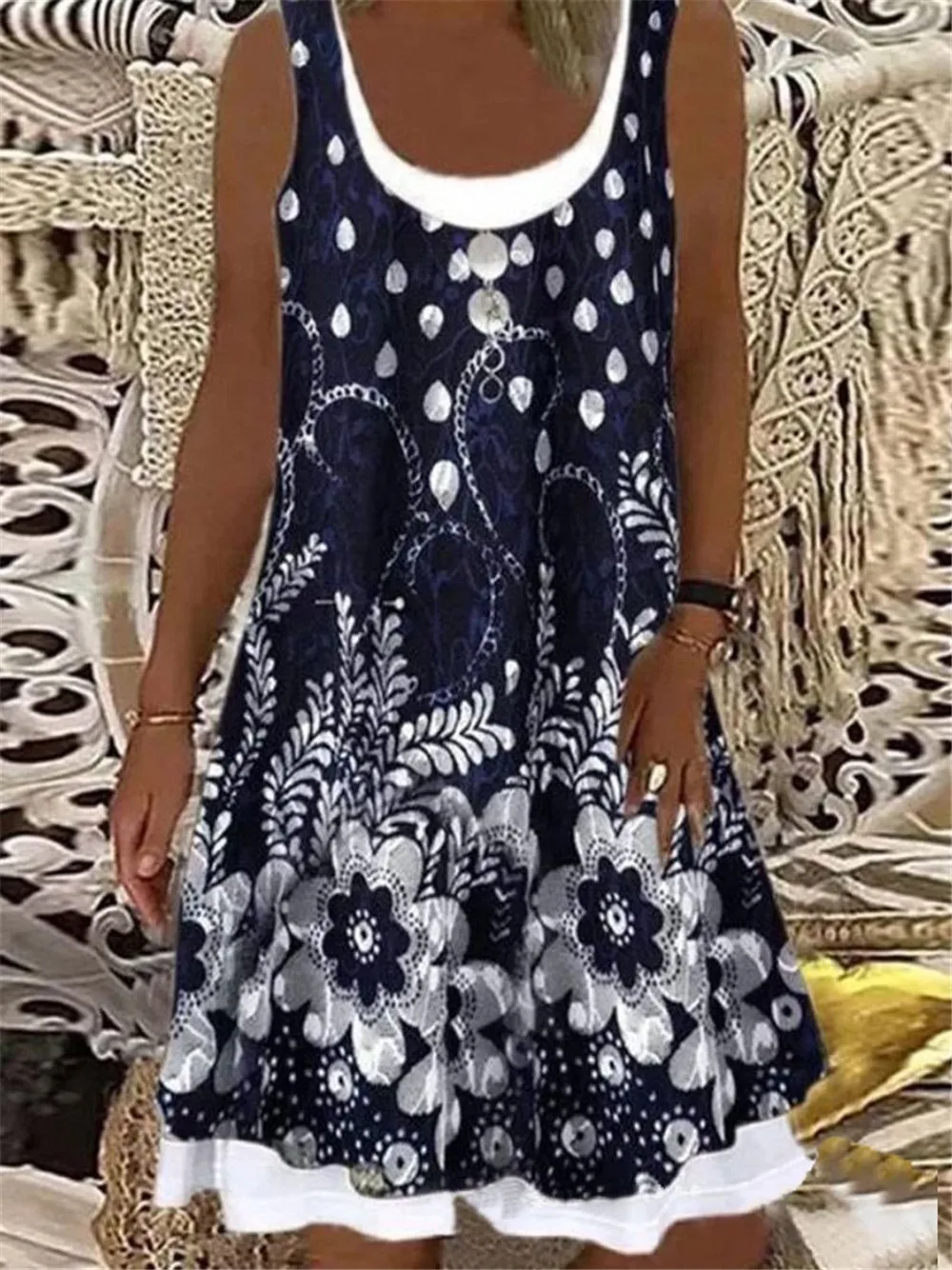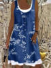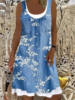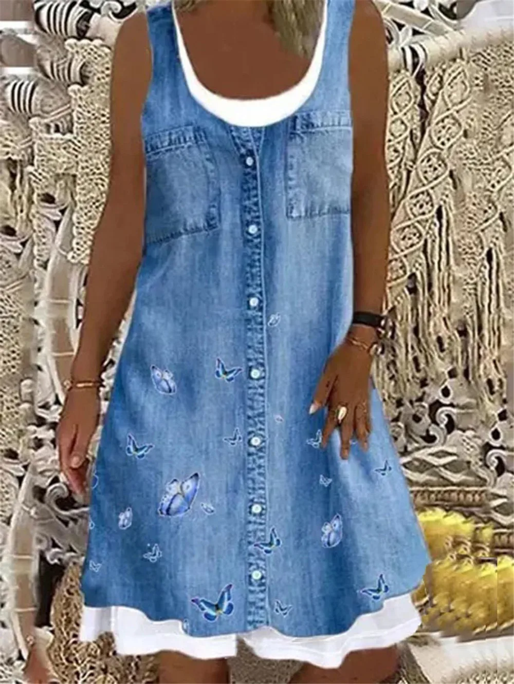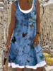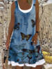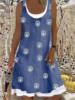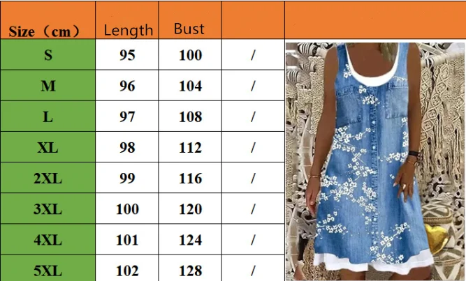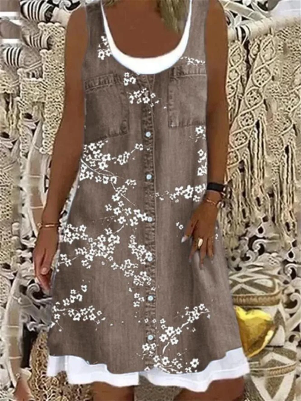 Ladies Dress Summer New Ladies Loose Fashion Digital Printing Fake Two Piece Round Neck Imitation Denim Street Casual Clothing