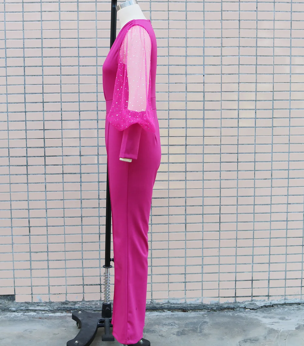 Ladies Elegant Office Jumpsuit Romper For Women 2023 High Waist Wedding Overalls Sequins Bodycon Long Sleeve Party Jumpsuit Club