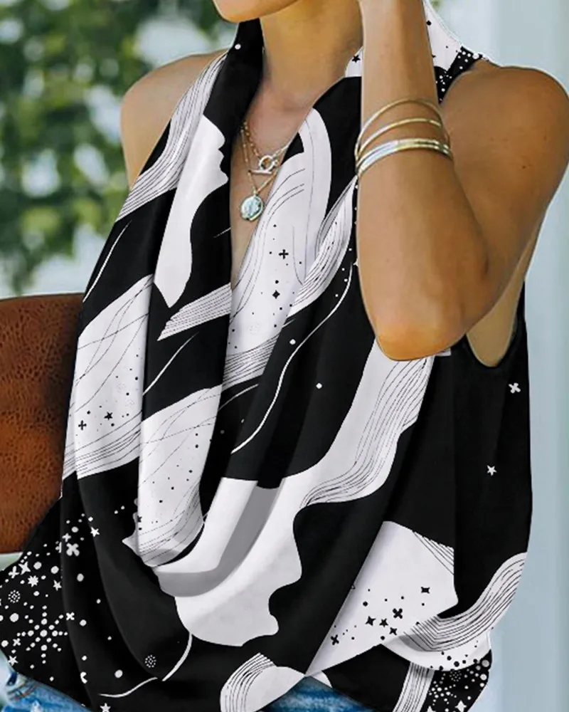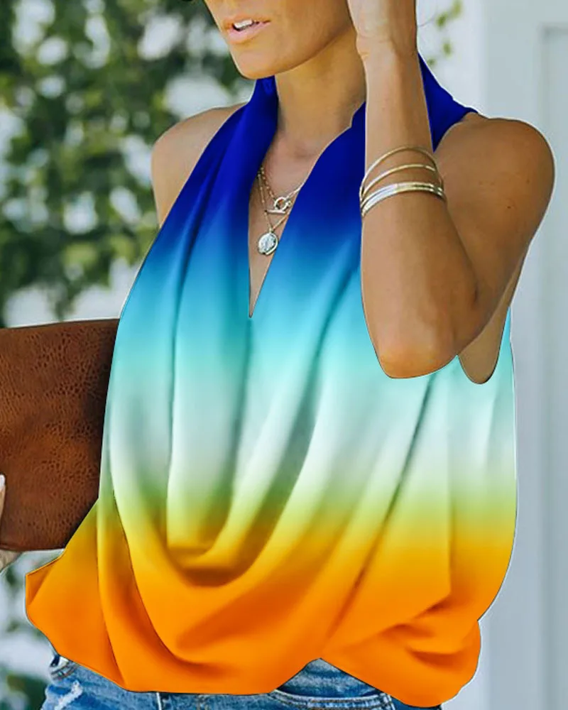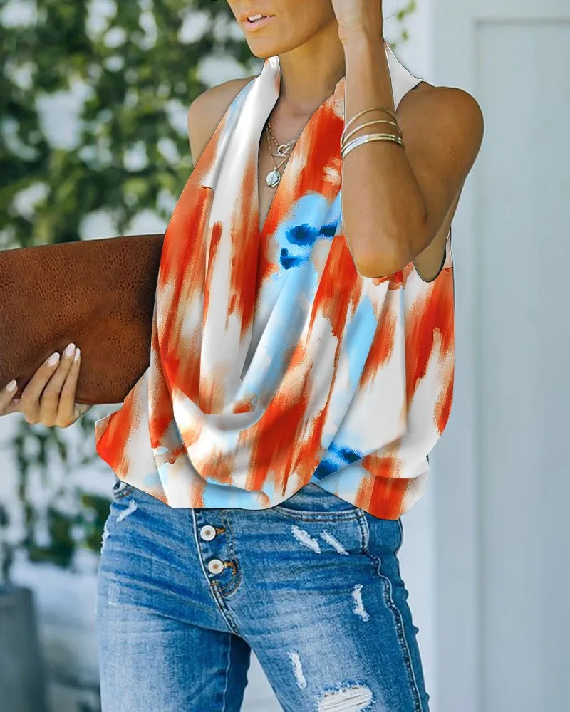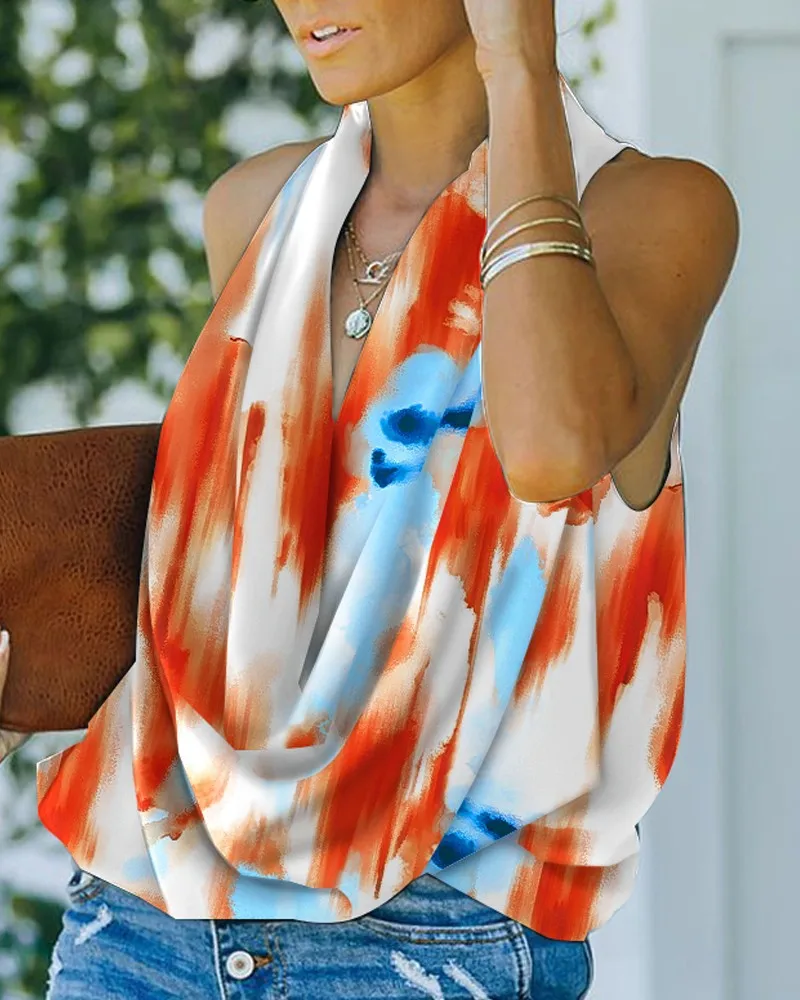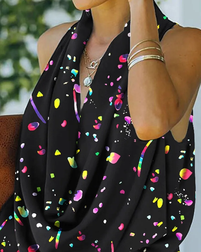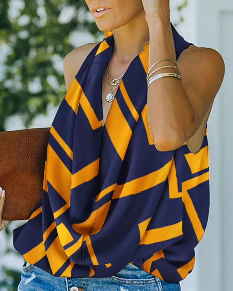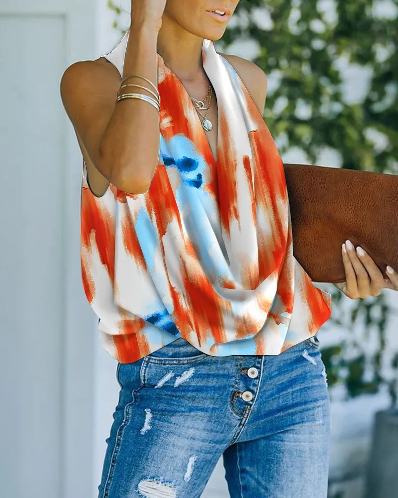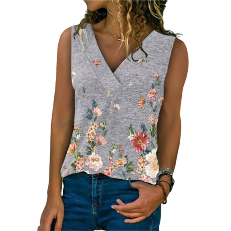 Ladies Fashion Beach Street Style Loose Summer Sleeveless Sexy V-Neck Blouse Top Casual Home Print Clothes Women Blusas Y Camisa
