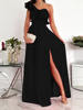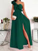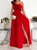 Ladies Off Shoulder Diagonal collar Pleated Evening Dress Solid Sleeveless Ruffle Hem Elegant Dress Summer Sexy Slit Maxi Dress