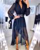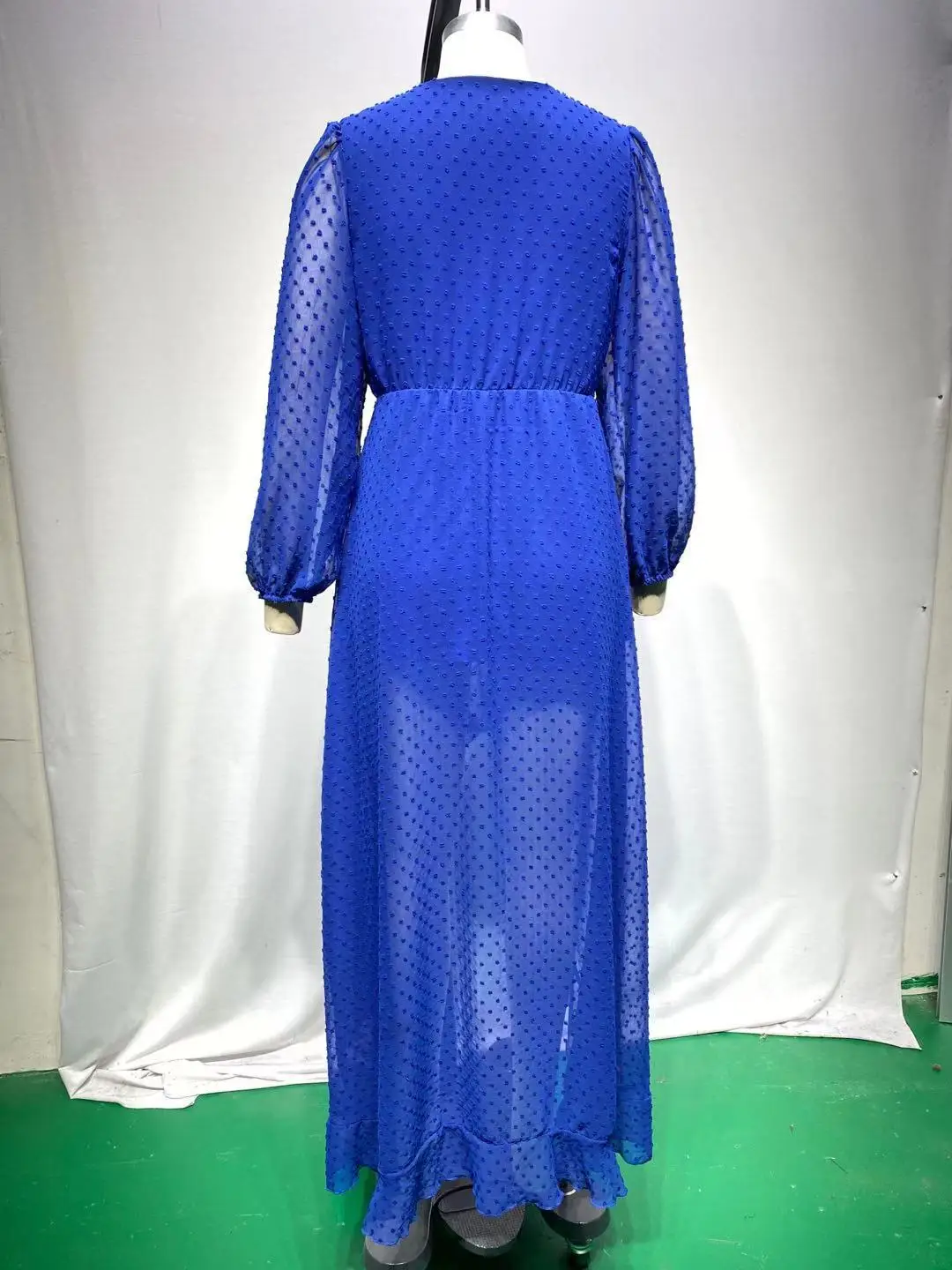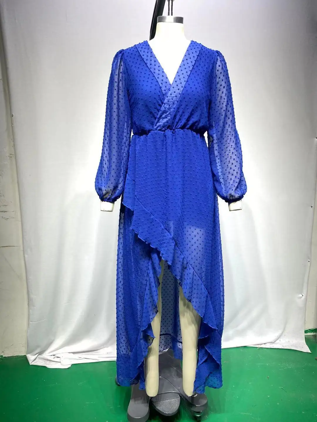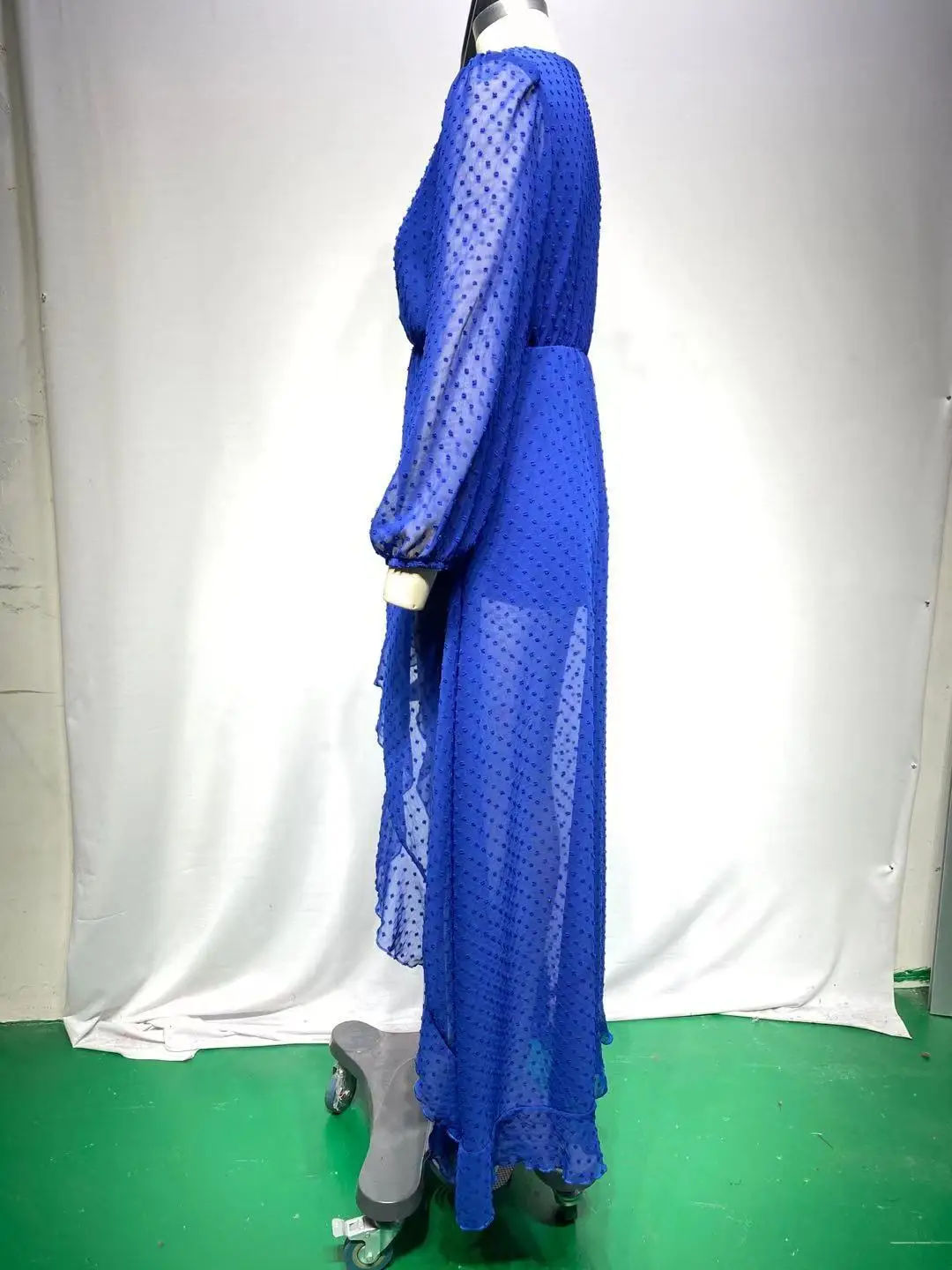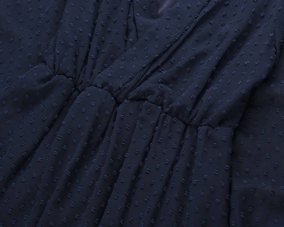 Lantern Sleeve Swiss Dot Mesh Ruffles Wrap Dress