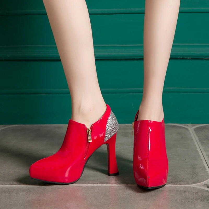 Large size 31-50 Elegant Luxury shoes women designers High Heels Platform Pumps Patent leather Pointed Toe party Shoe T2185-4