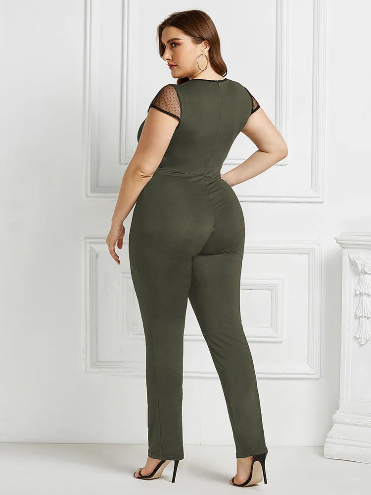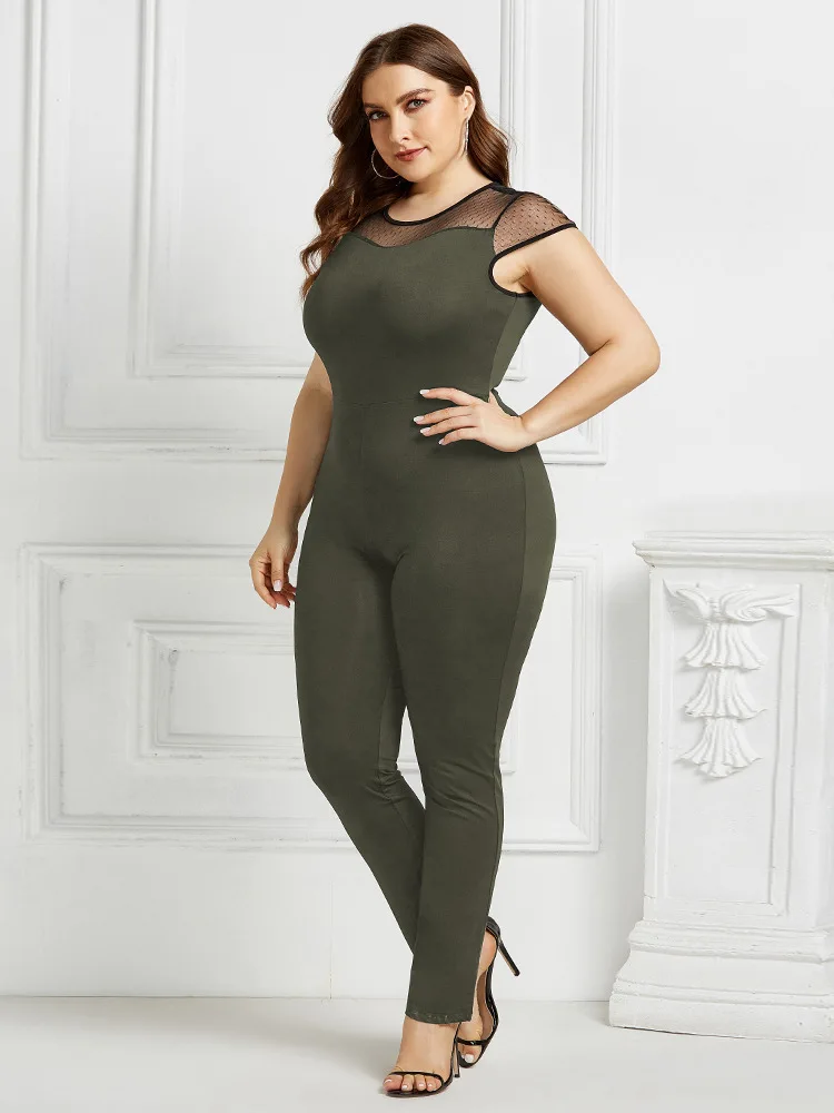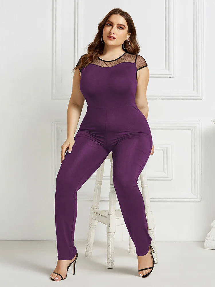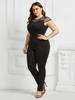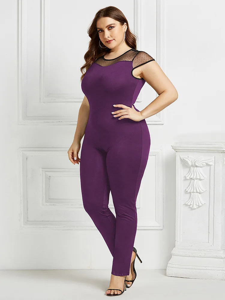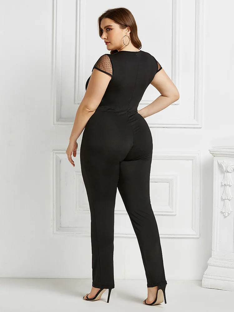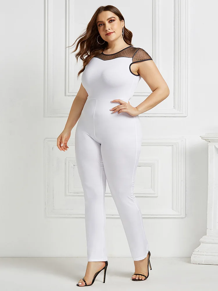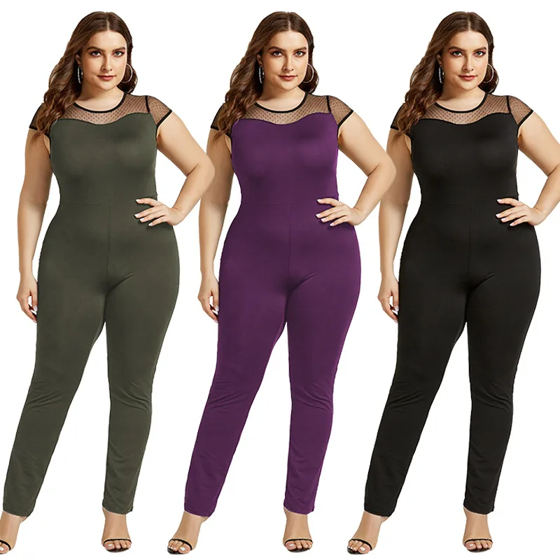 Large Size High Stretch Casual Women Summer Jumpsuit Short Sleeve Mesh Patchwork Sexy Women Jumpsuit Romper Black White Femme