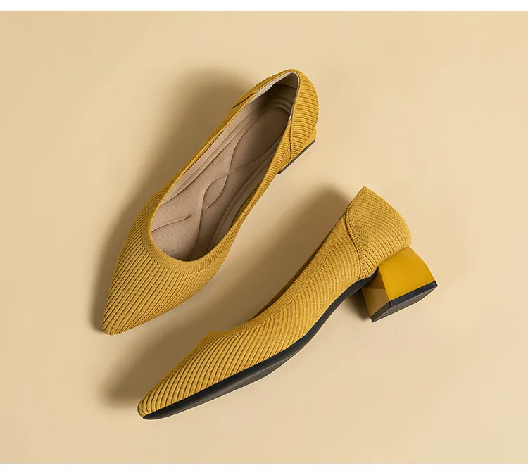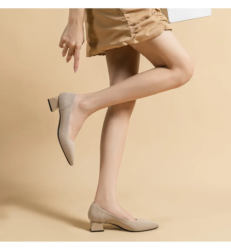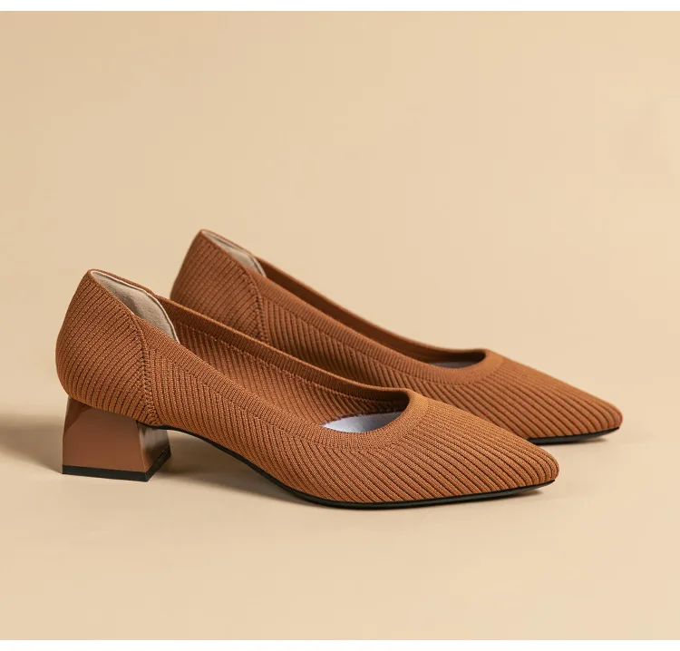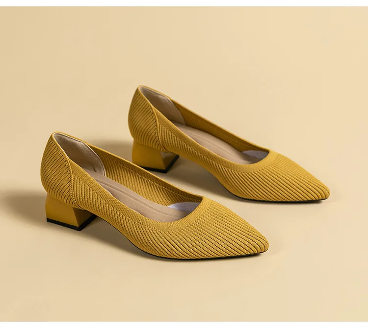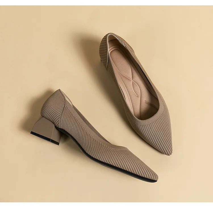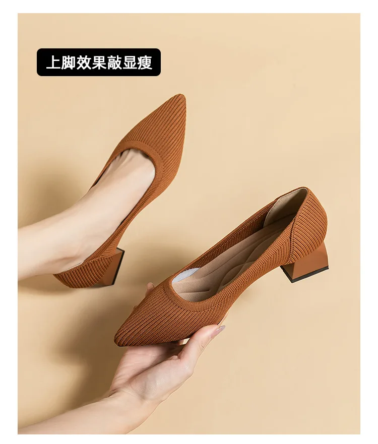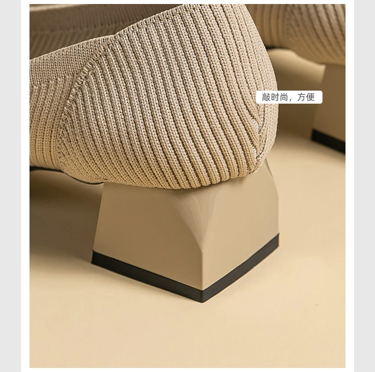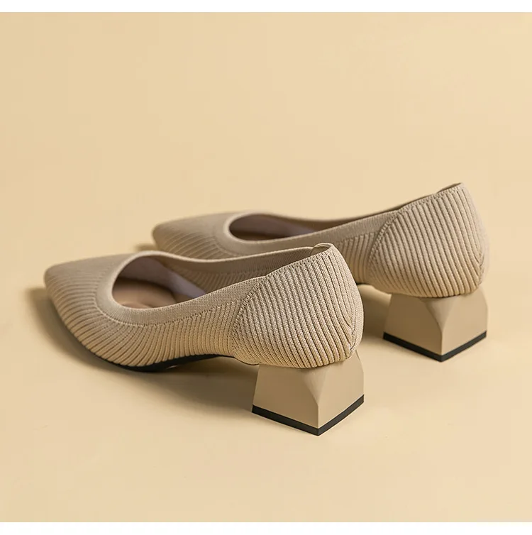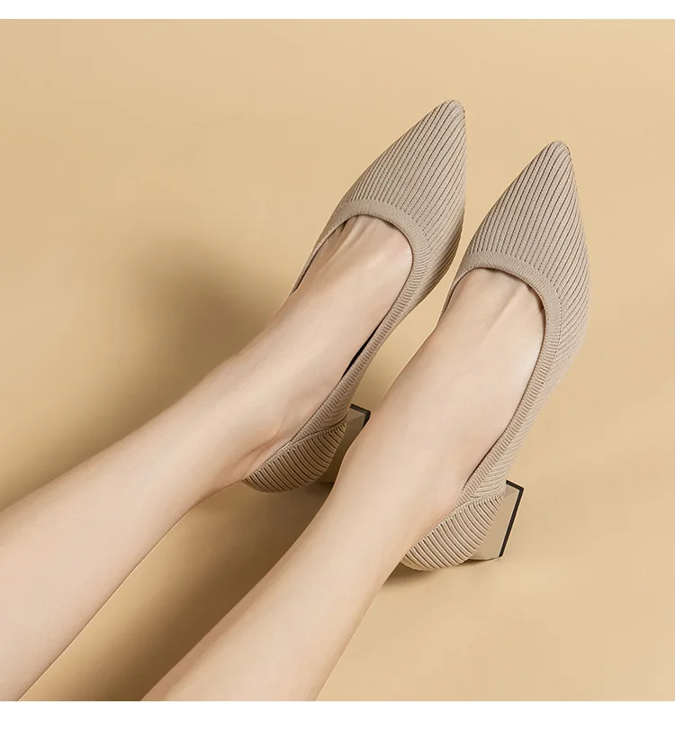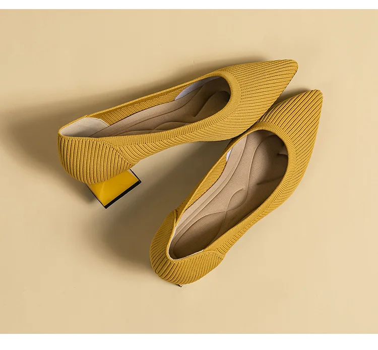Large Size Pumps Women's High Heels Mixed Color Woman Casual Shoes Breathable Knitted Shoes Fashion Heels Shoes Zapatos De Mujer