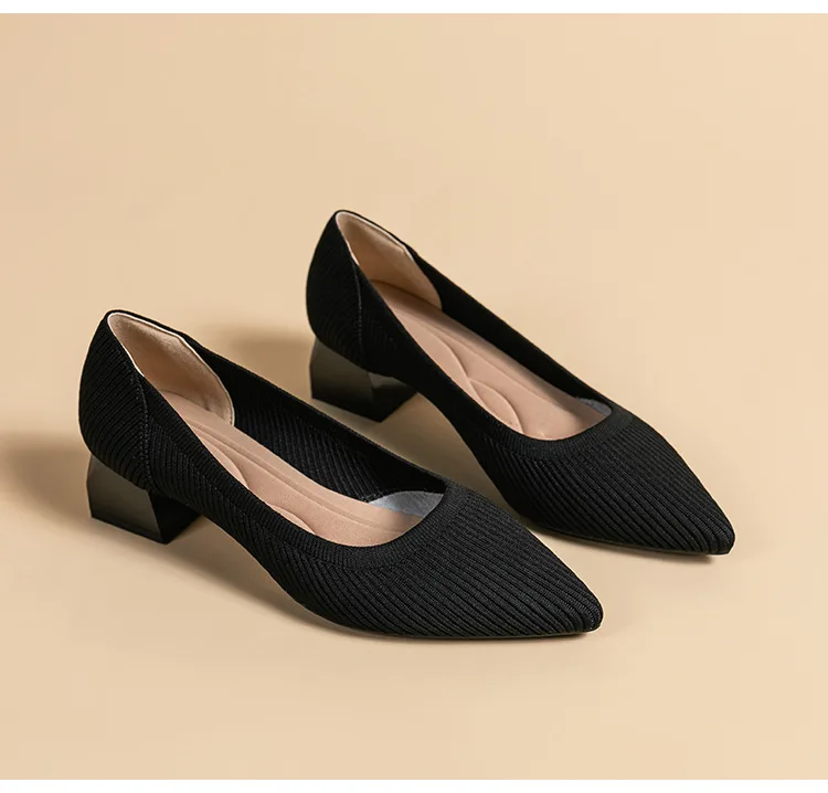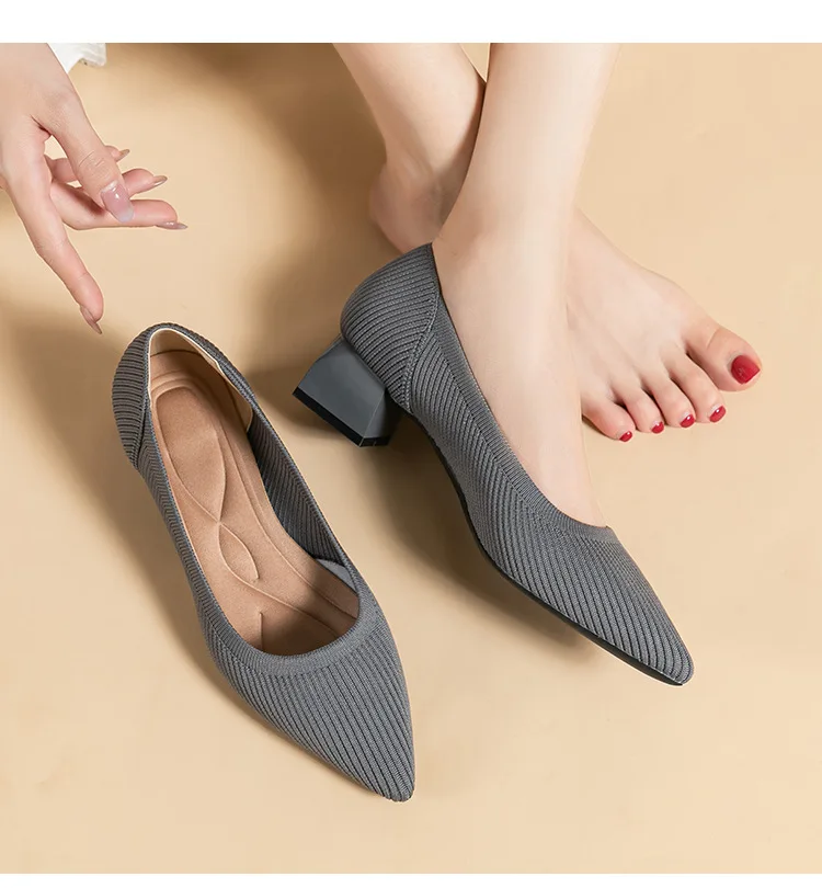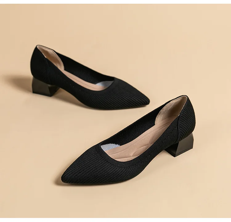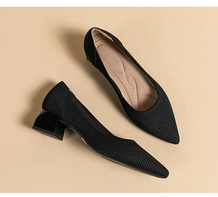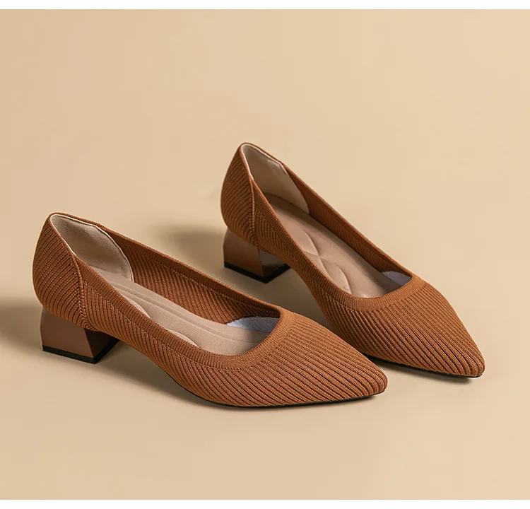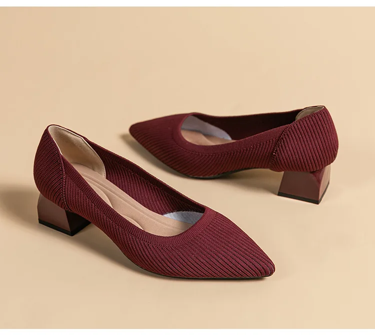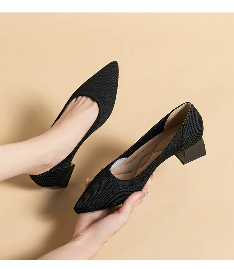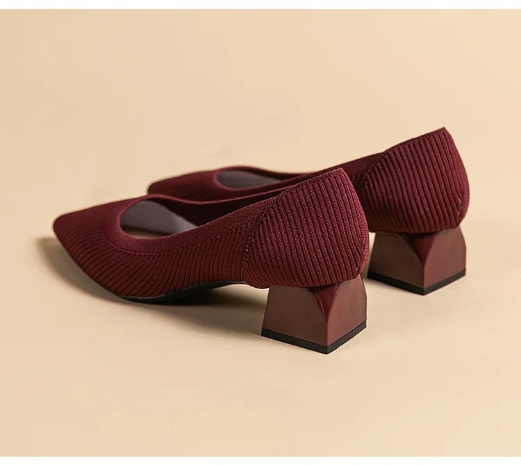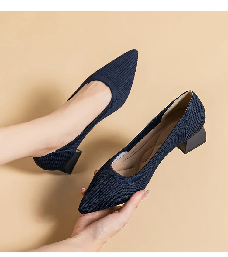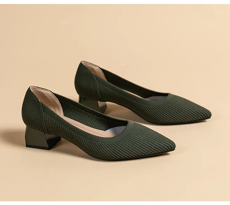 Large Size Pumps Women's High Heels Mixed Color Woman Casual Shoes Breathable Knitted Shoes Fashion Heels Shoes Zapatos De Mujer