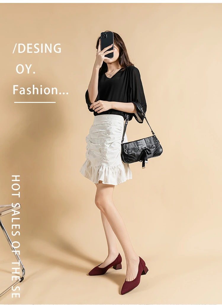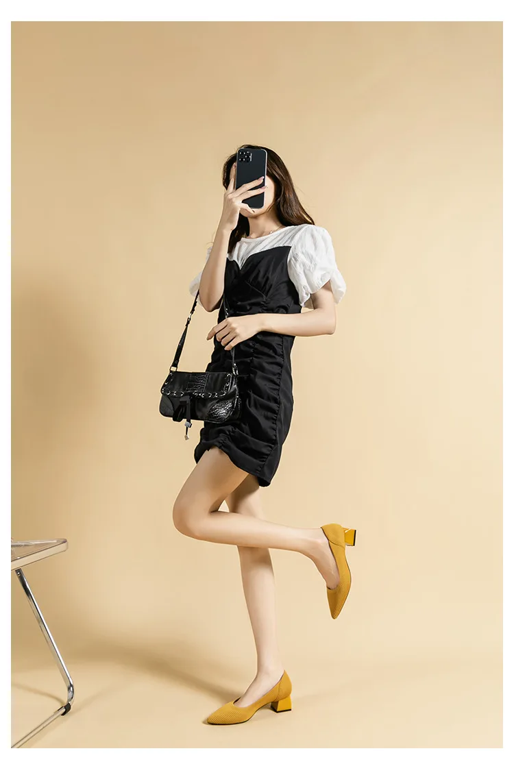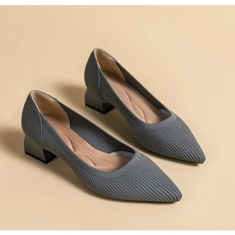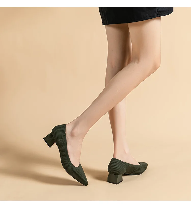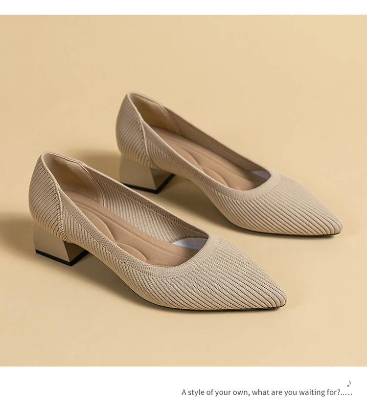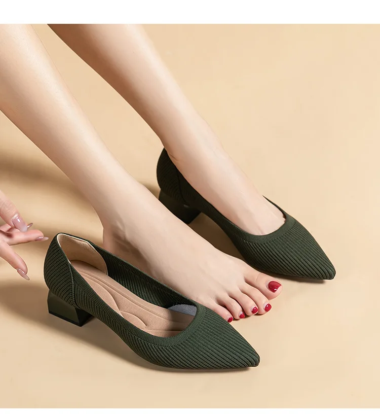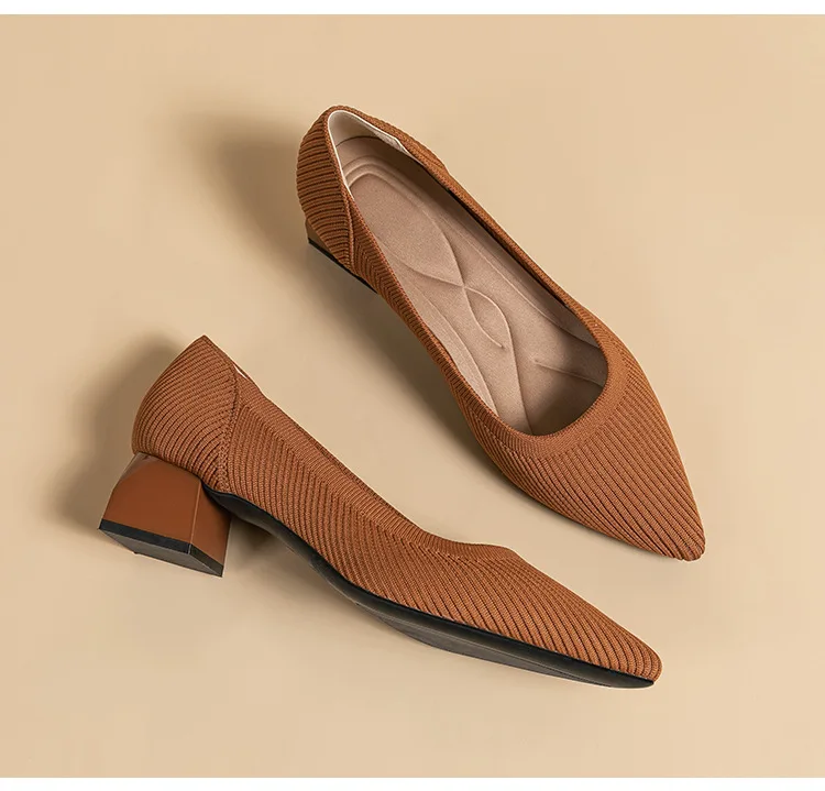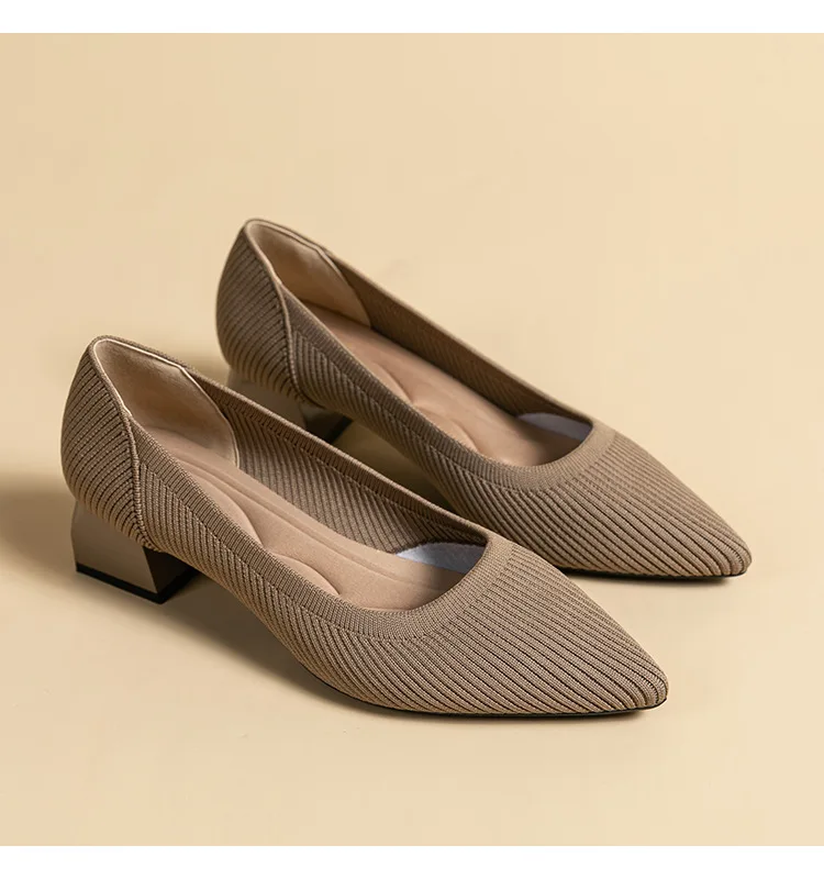 Large Size Pumps Women's High Heels Mixed Color Woman Casual Shoes Breathable Knitted Shoes Fashion Heels Shoes Zapatos De Mujer