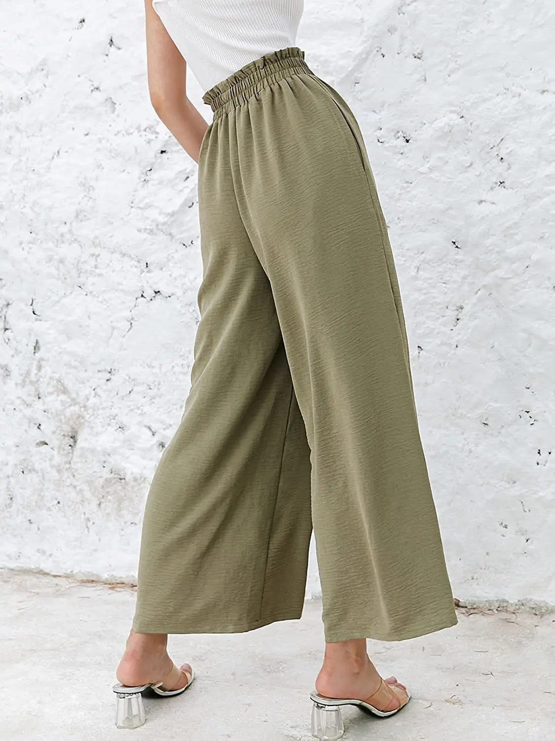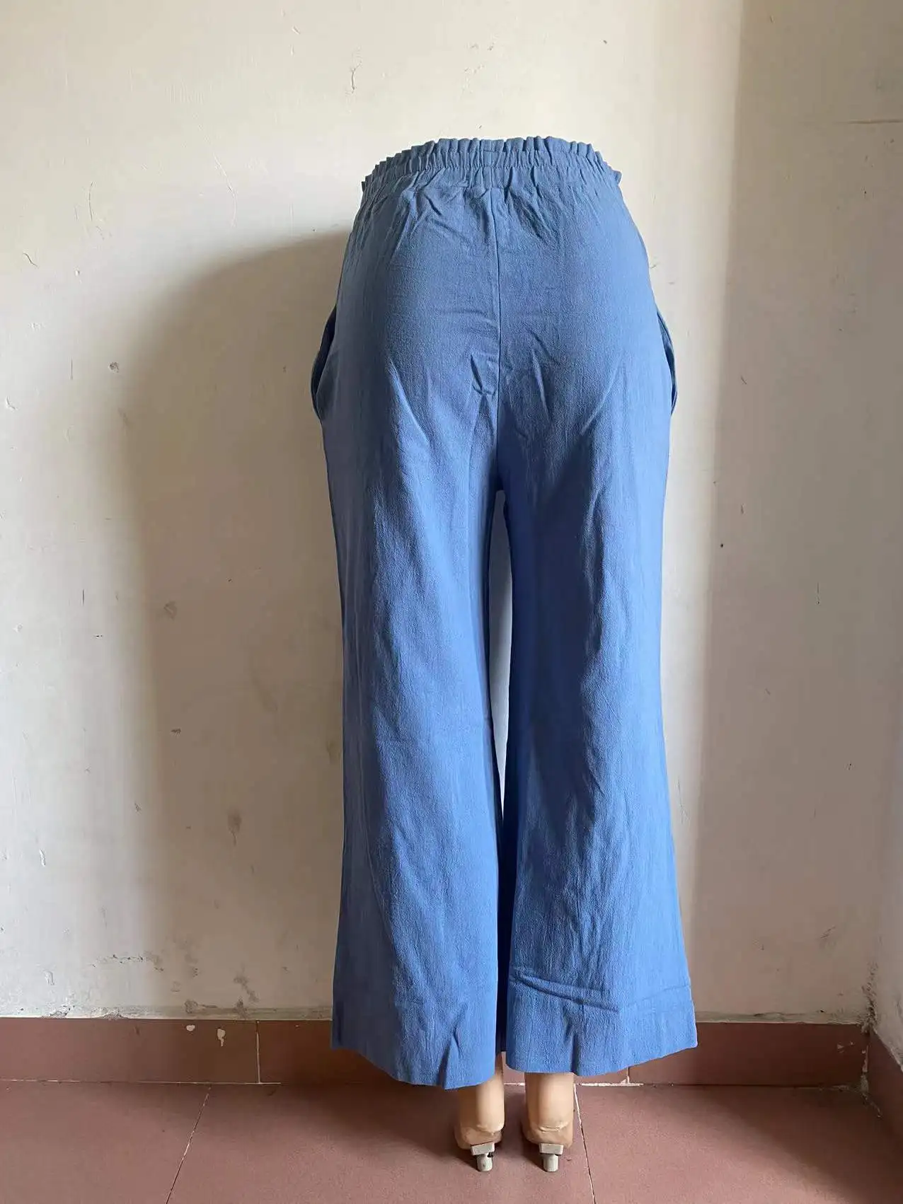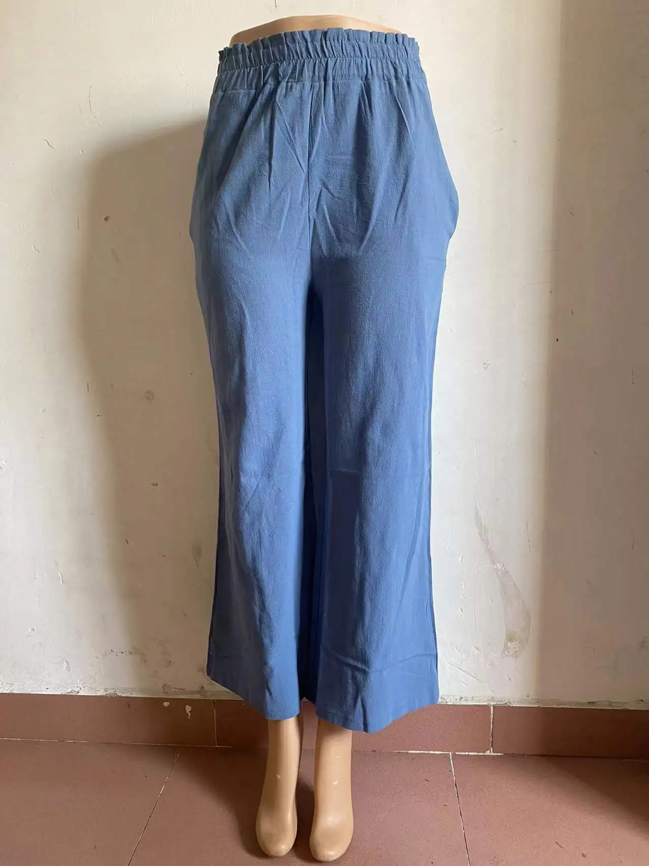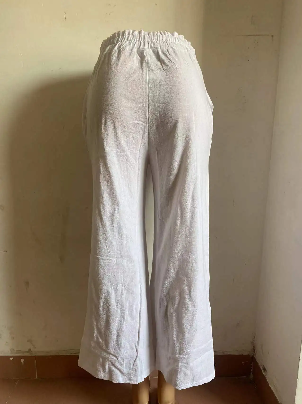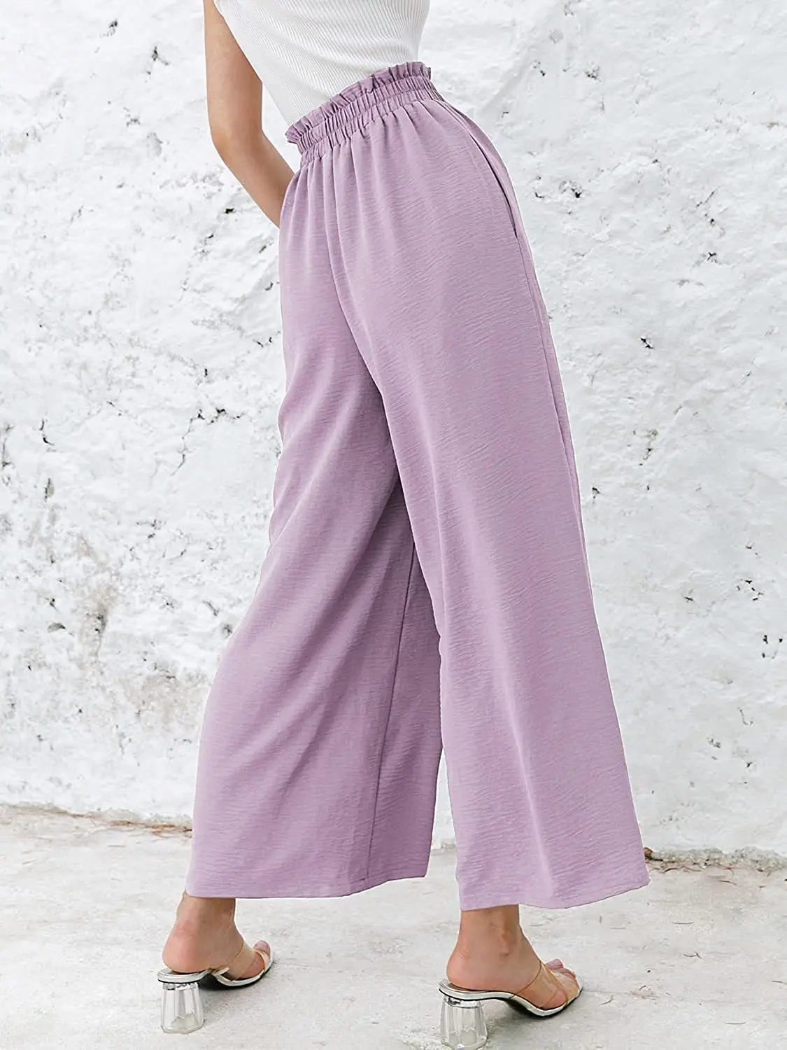 Large Size Solid High Waist Wide Leg Pants Women Loose Casual Summer Pants Trousers Classic Ruffled Soft Long Female Bottoms