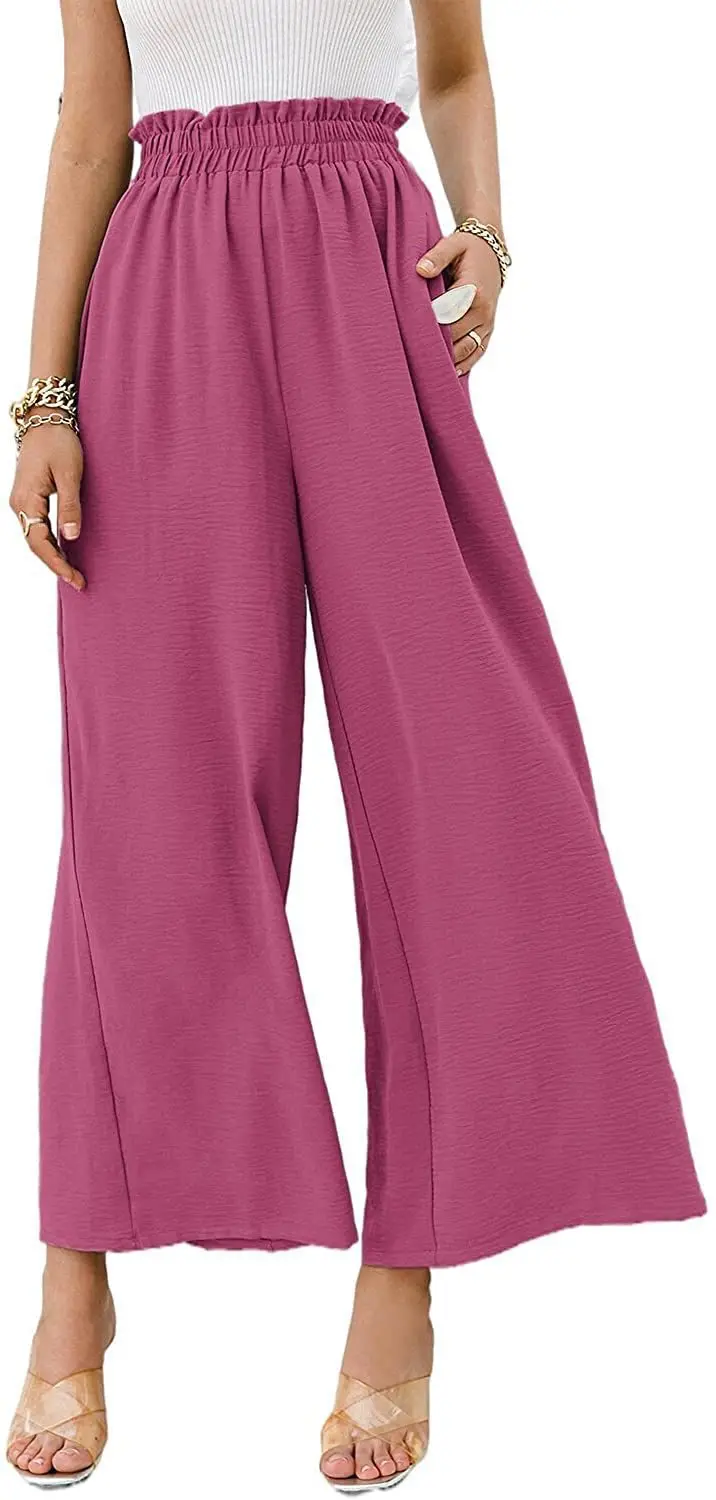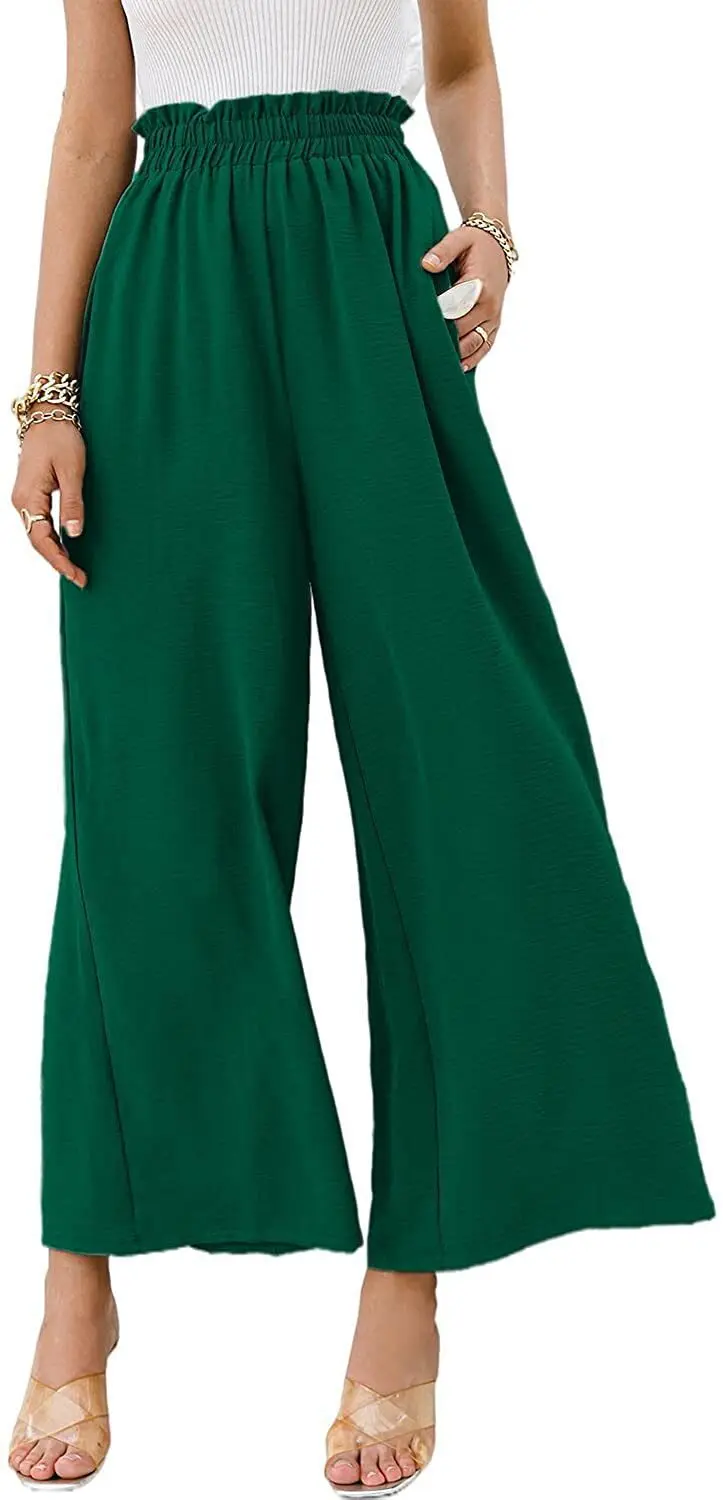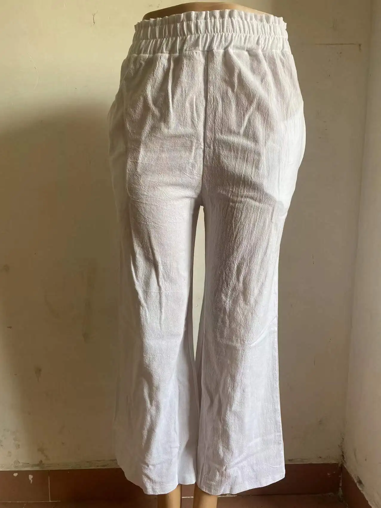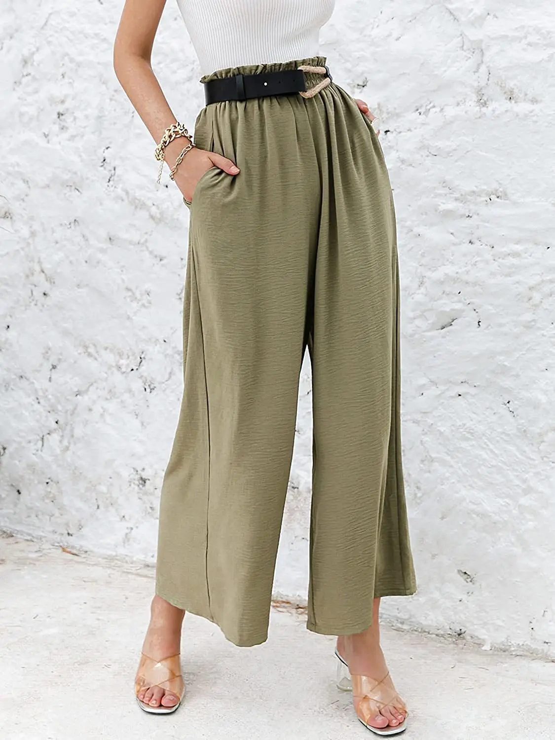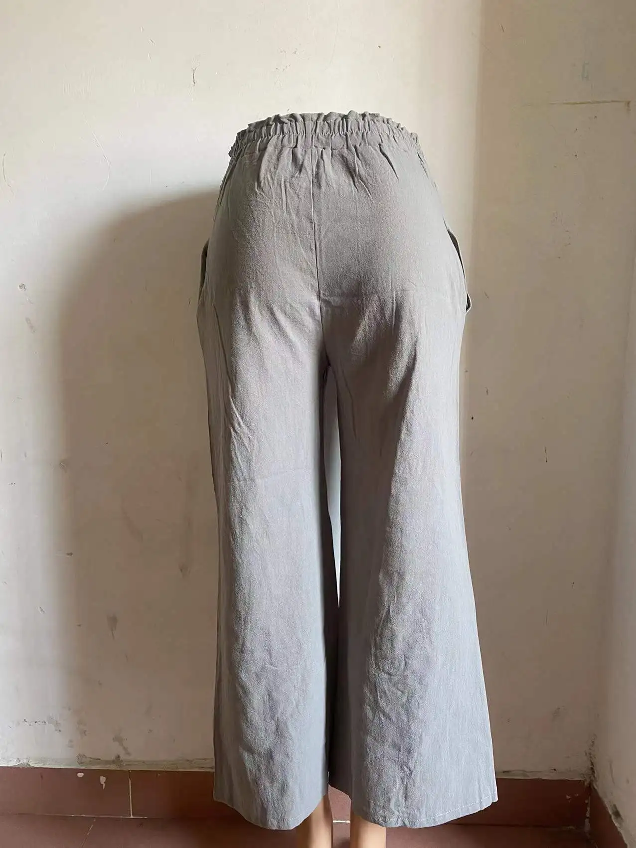 Large Size Solid High Waist Wide Leg Pants Women Loose Casual Summer Pants Trousers Classic Ruffled Soft Long Female Bottoms