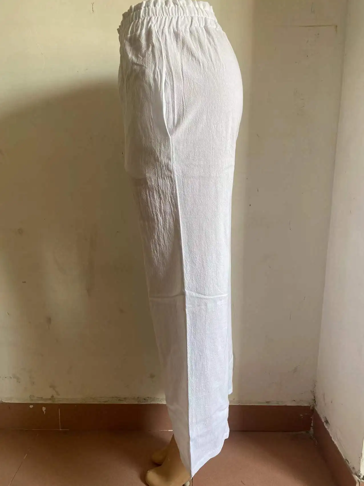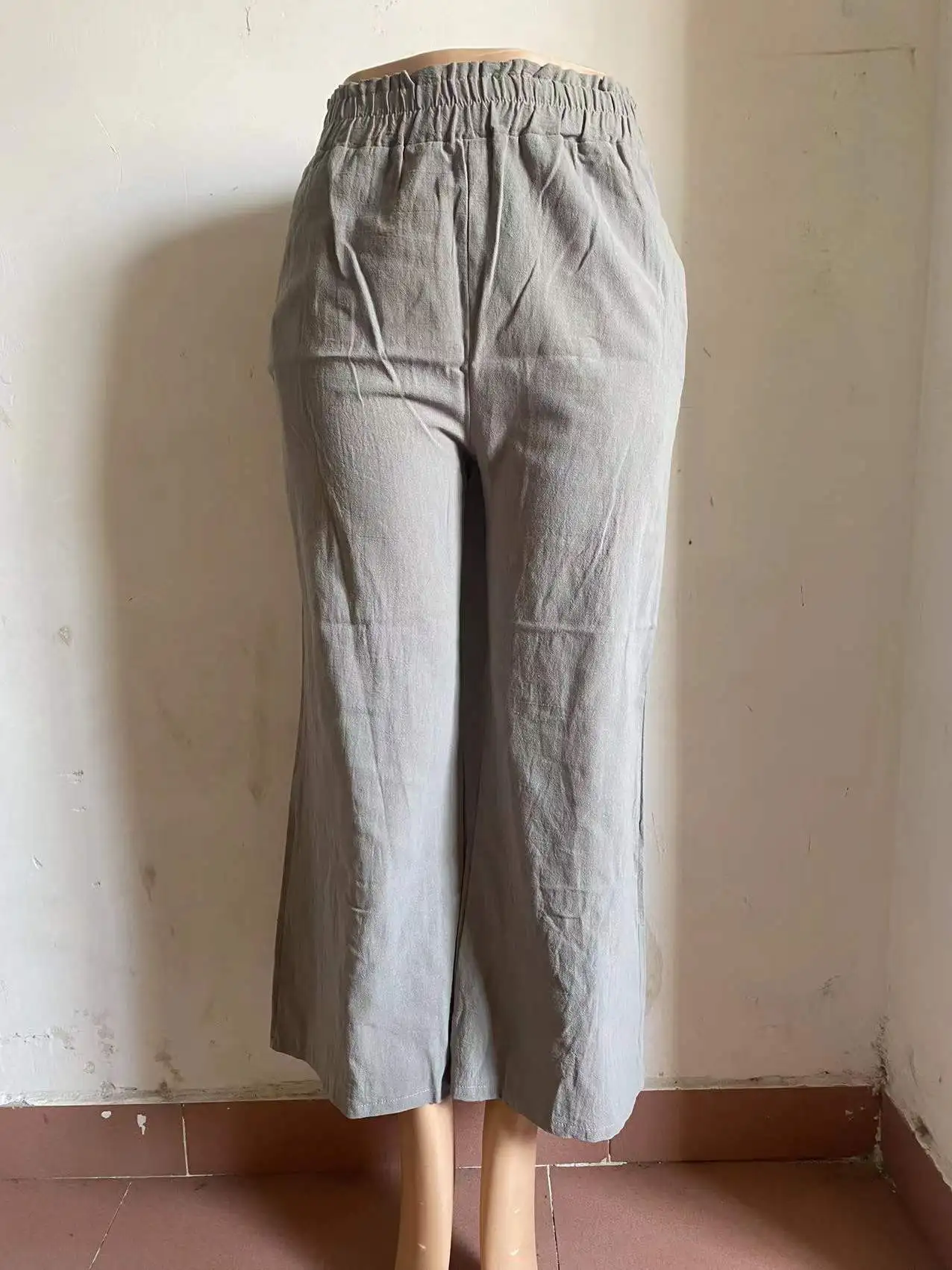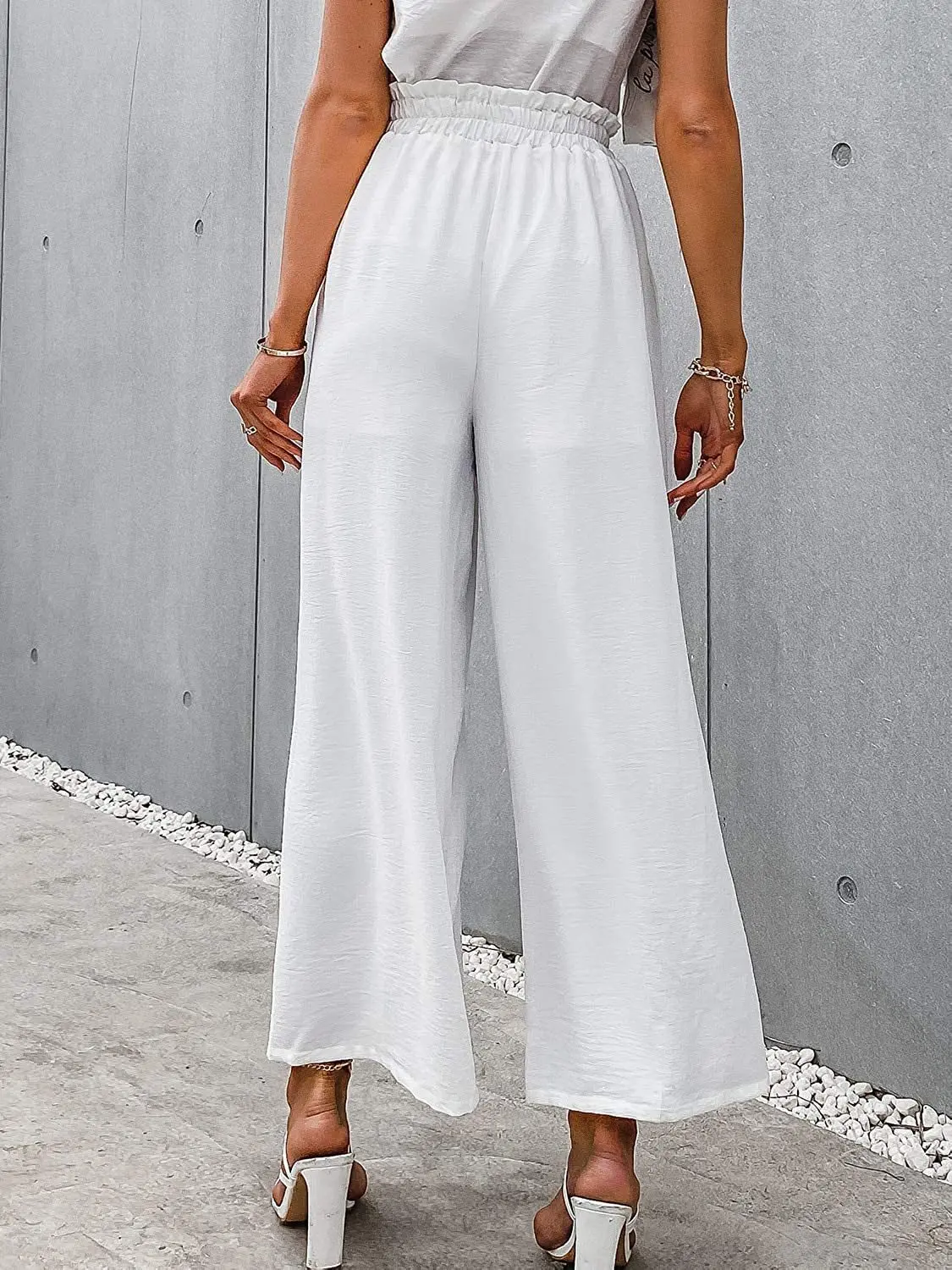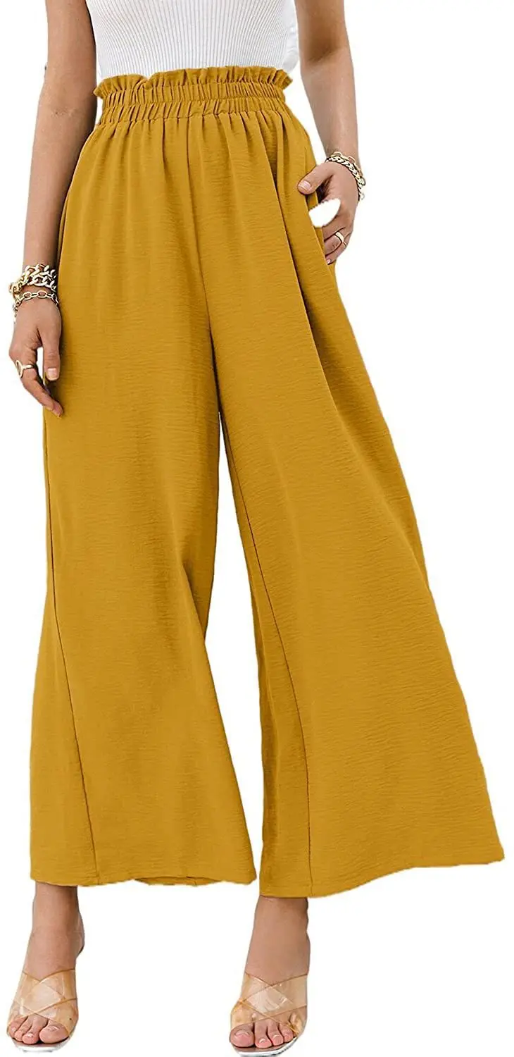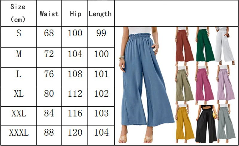 Large Size Solid High Waist Wide Leg Pants Women Loose Casual Summer Pants Trousers Classic Ruffled Soft Long Female Bottoms