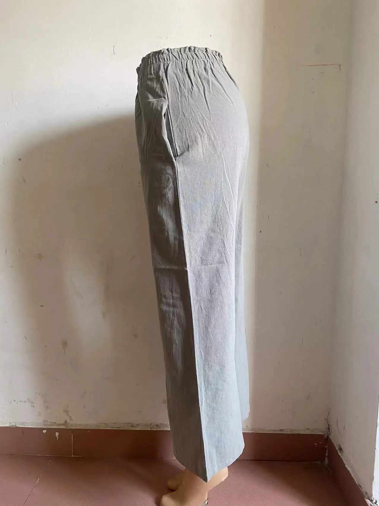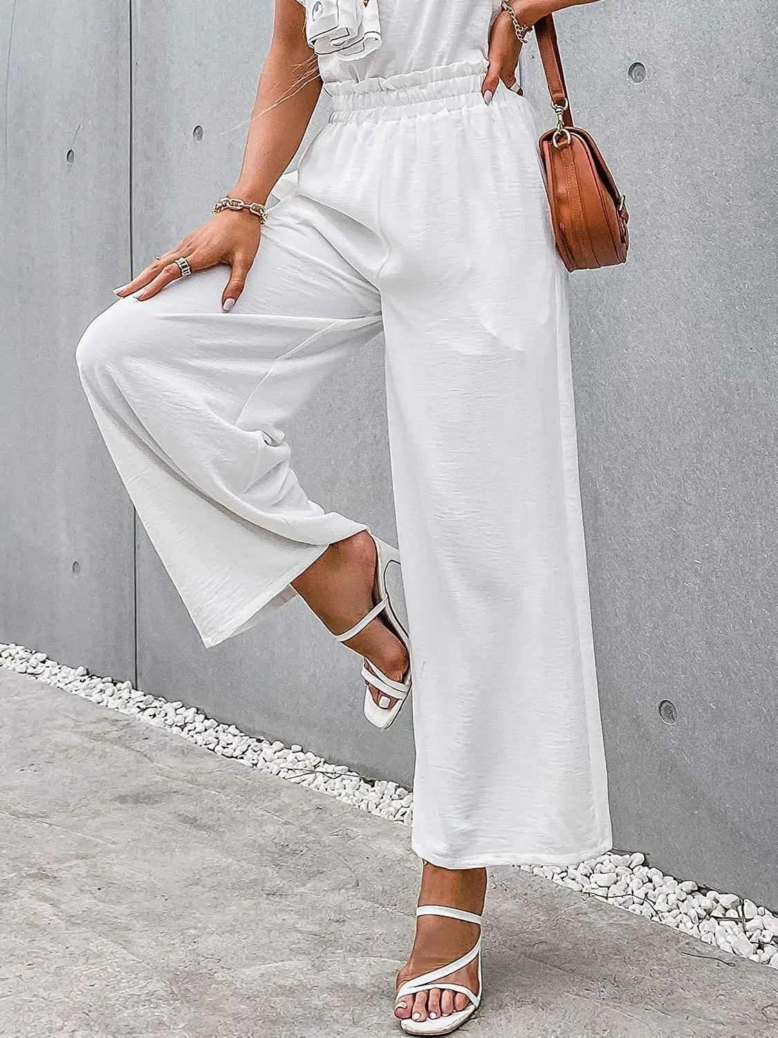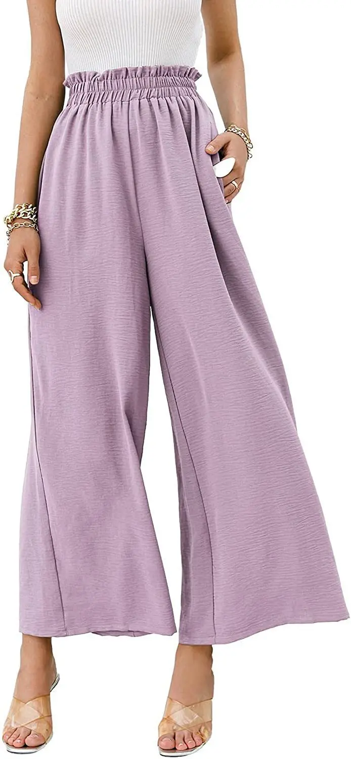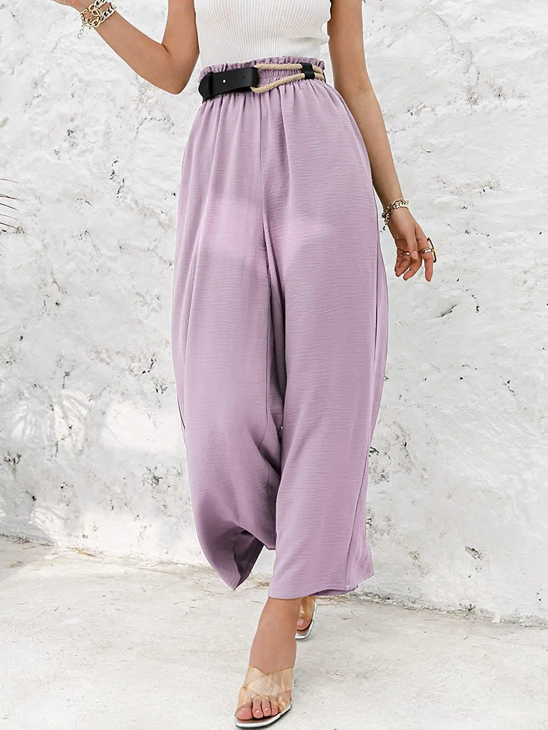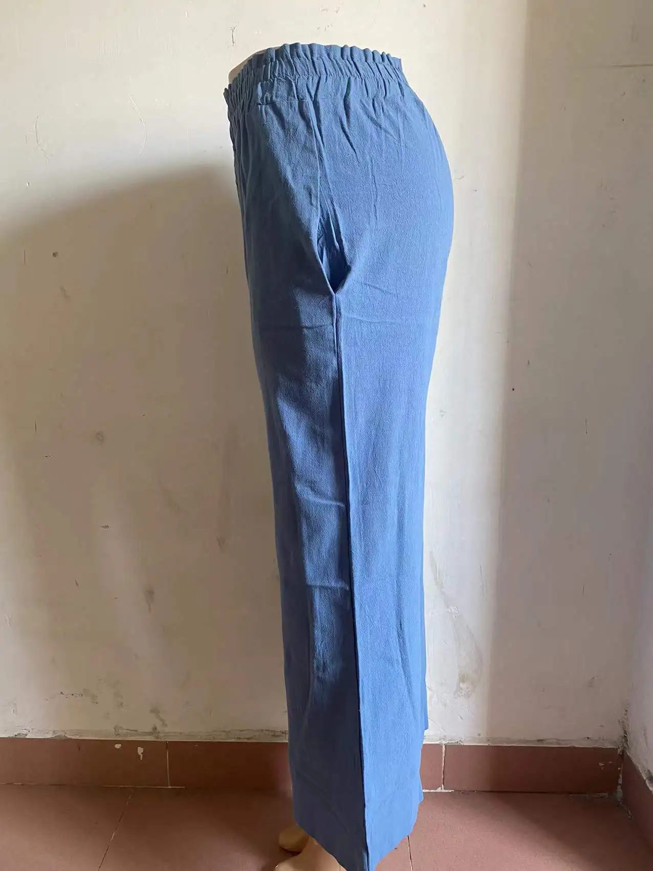 Large Size Solid High Waist Wide Leg Pants Women Loose Casual Summer Pants Trousers Classic Ruffled Soft Long Female Bottoms