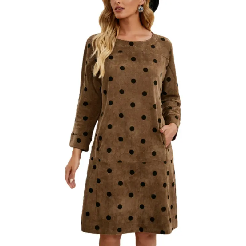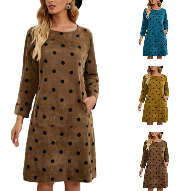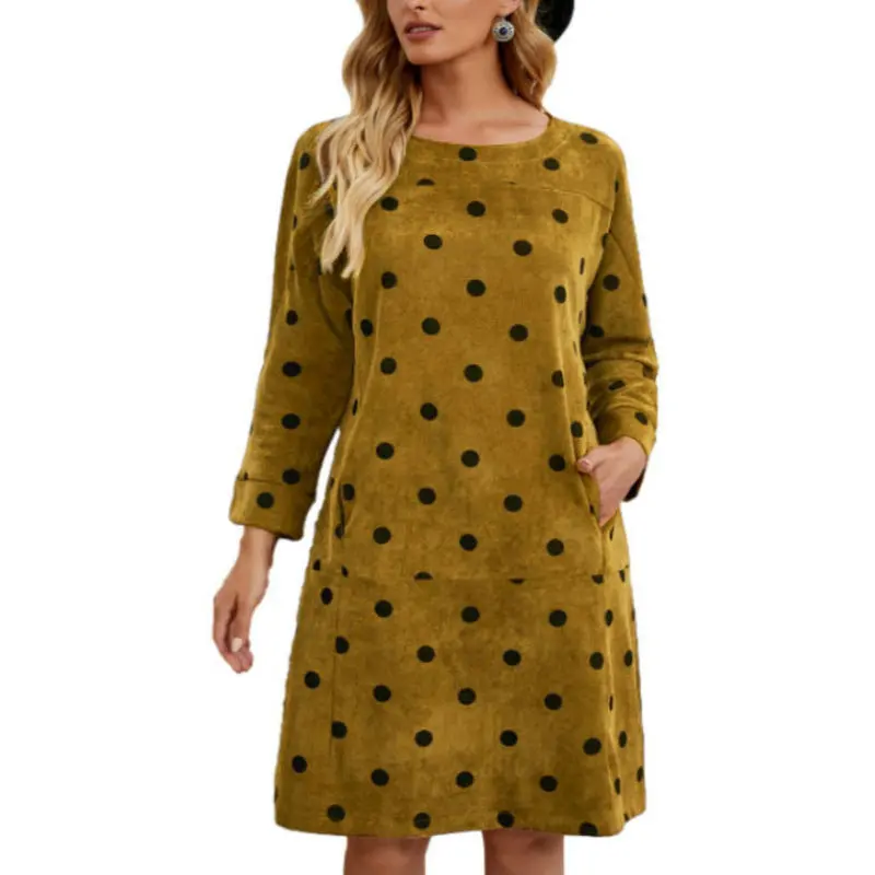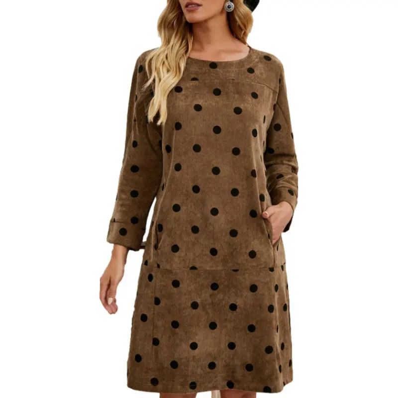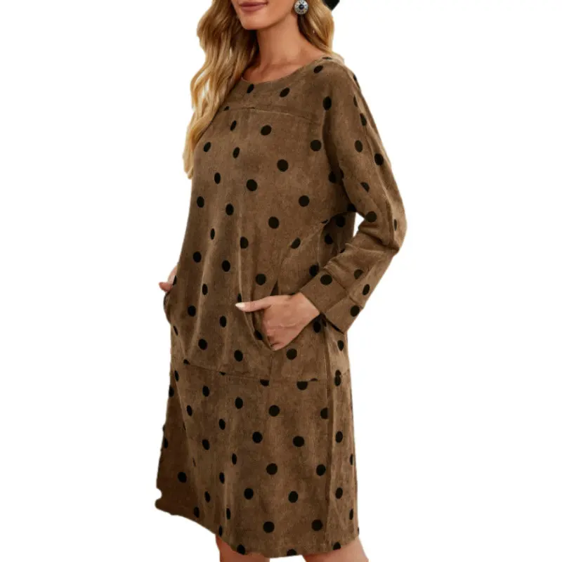 Latest Spring Women Corduroy Long Dress Keeps Warm Overseas All Sizes Slimming Skirt Casual Loose Type Fashion Autumn Cloth