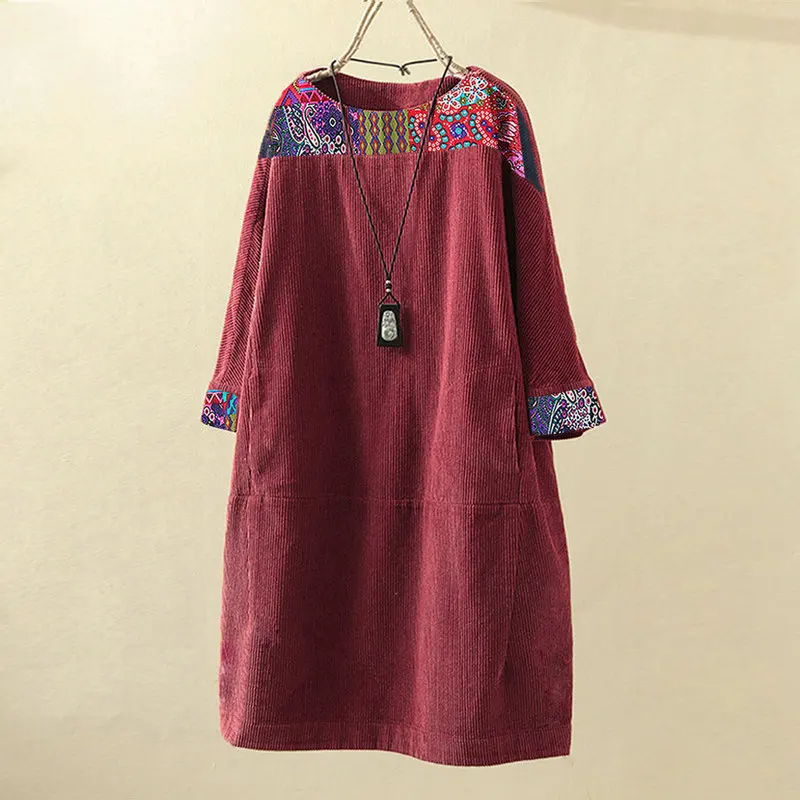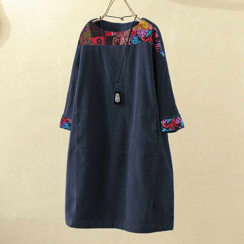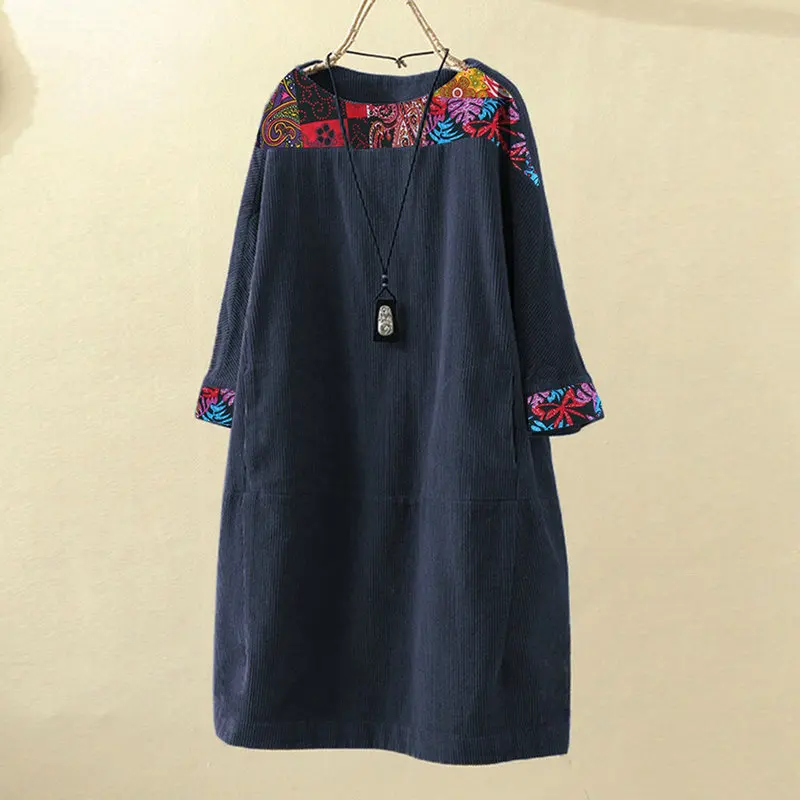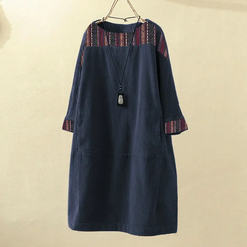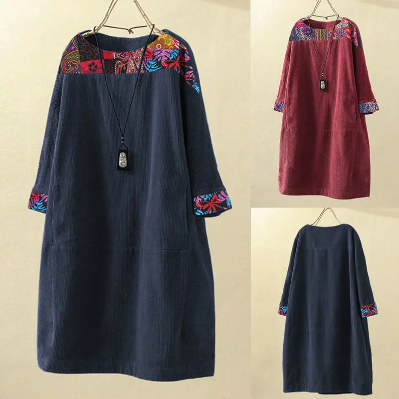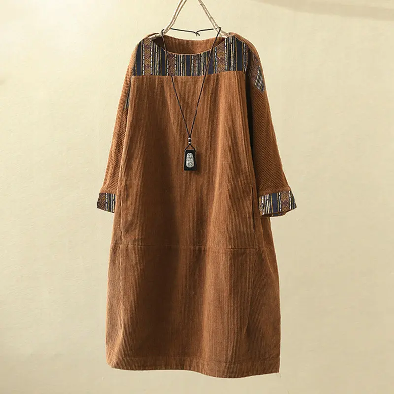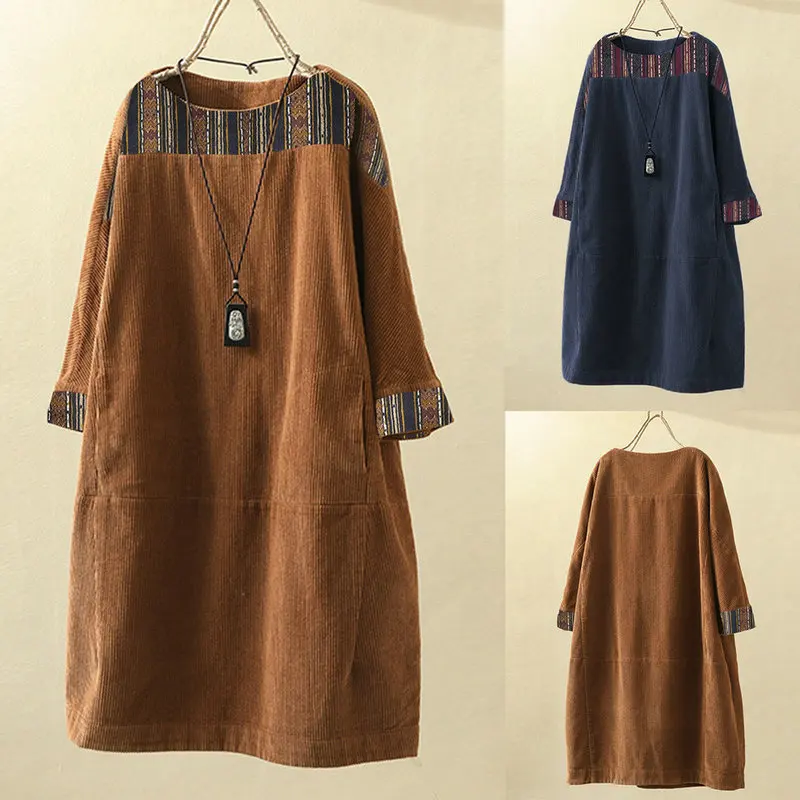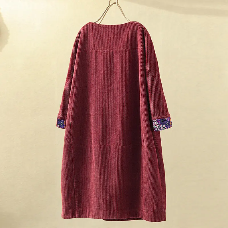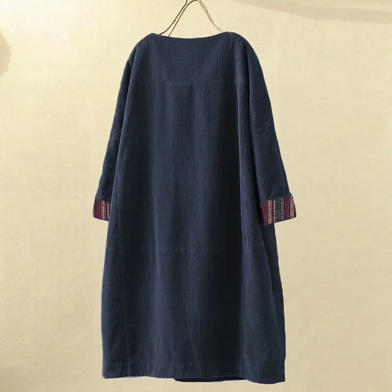 Latest Women Casual Loose Winter Dress All Sizes Lady Corduroy Material Clothes Fashion Autumn Skirts Long Sleeve Solid Color