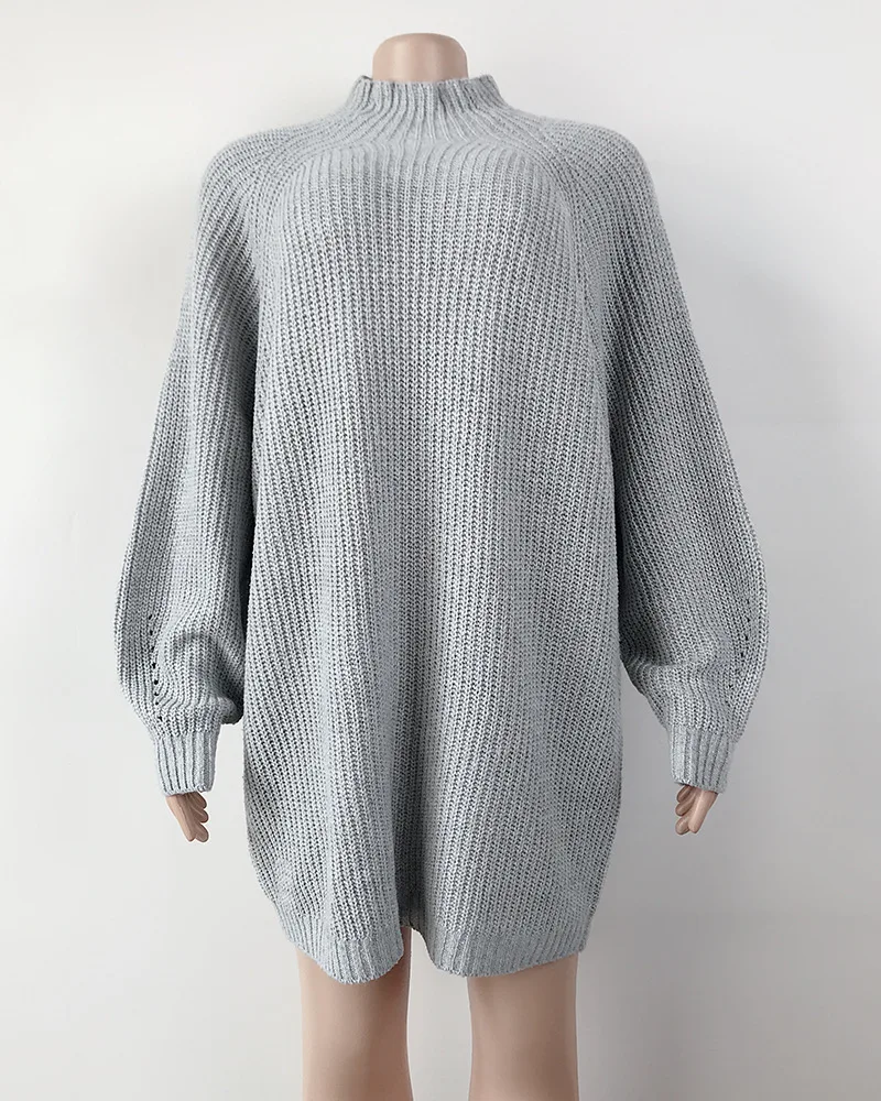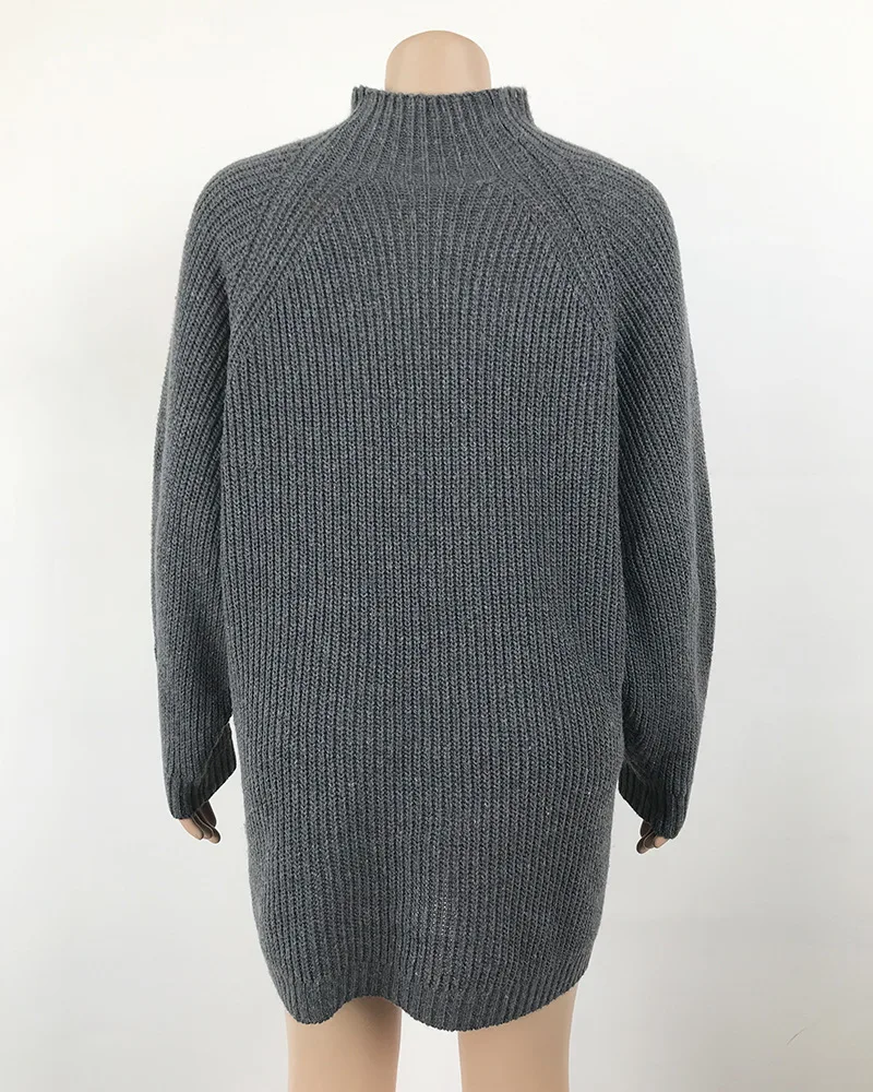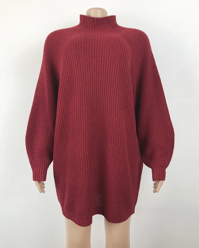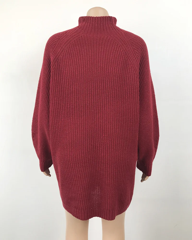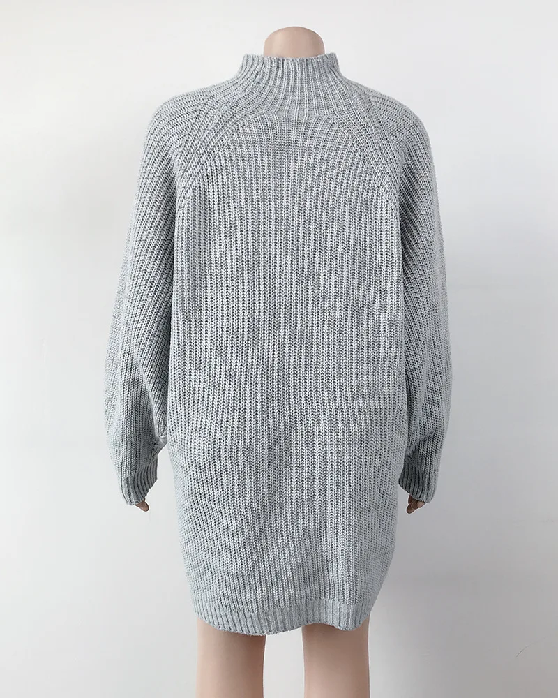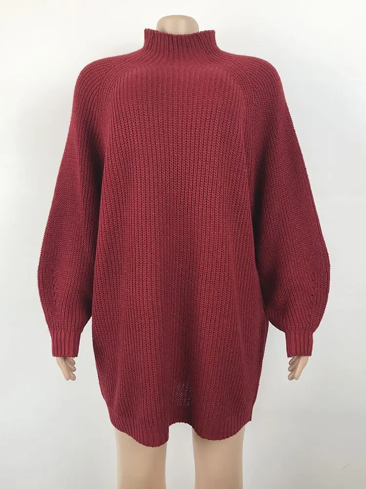Latest Women Winter New High-Necked Ingot Pin Casual Loose Comfortable Solid Color Mid-Length Lady Sweater Keep Warm Comfortable