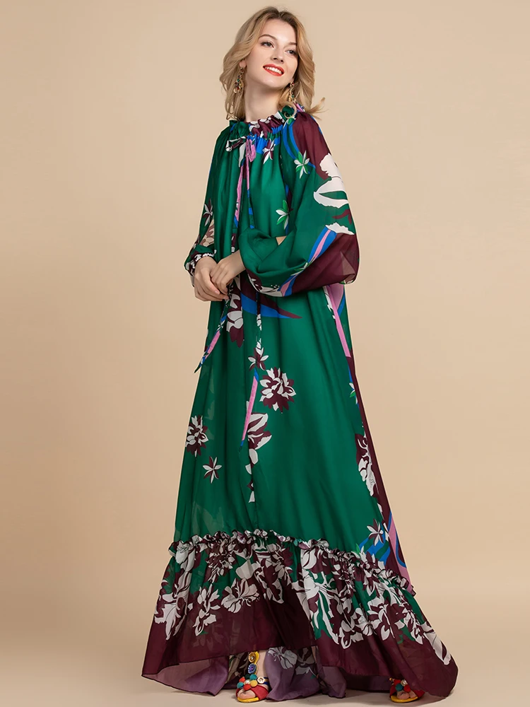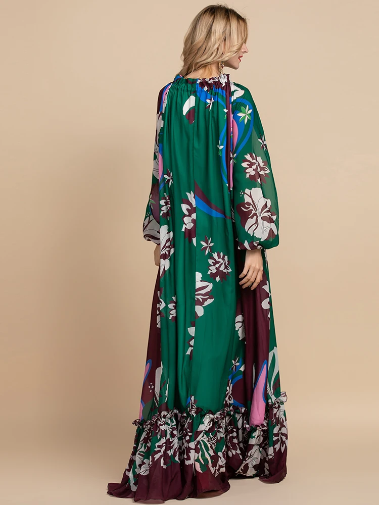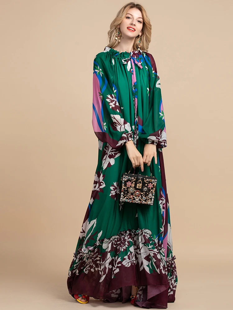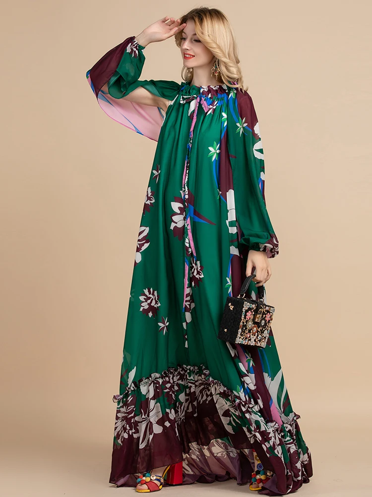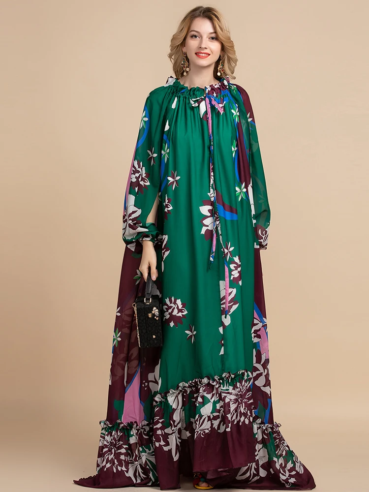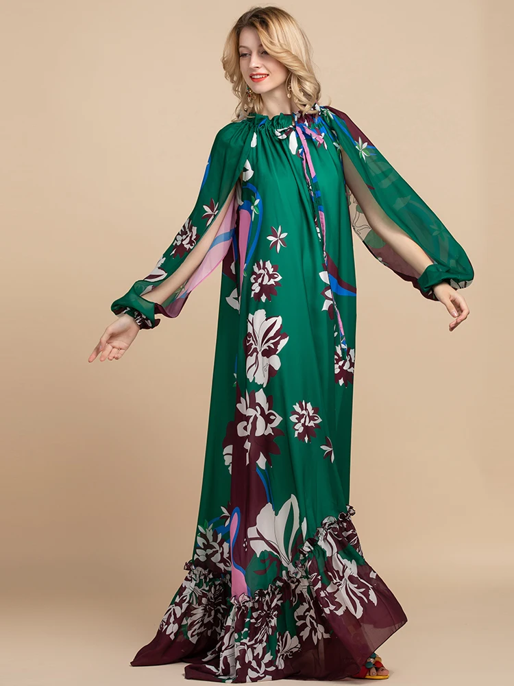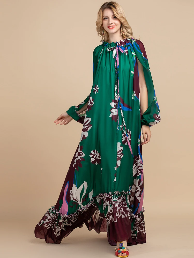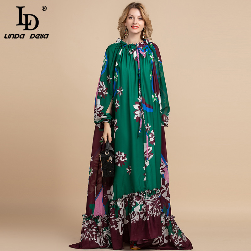 LD LINDA DELLA Autumn Fashion Designer Loose Maxi Dress Women's Split Sleeve Floral Print Holiday Party Vintage Long Dress