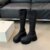 Leather Fabric Splicing Thick Soled Boots Waterproof Platform Heel Women’s Knee Boots Elastic Fabric and Ankle Short Boots 35-39
