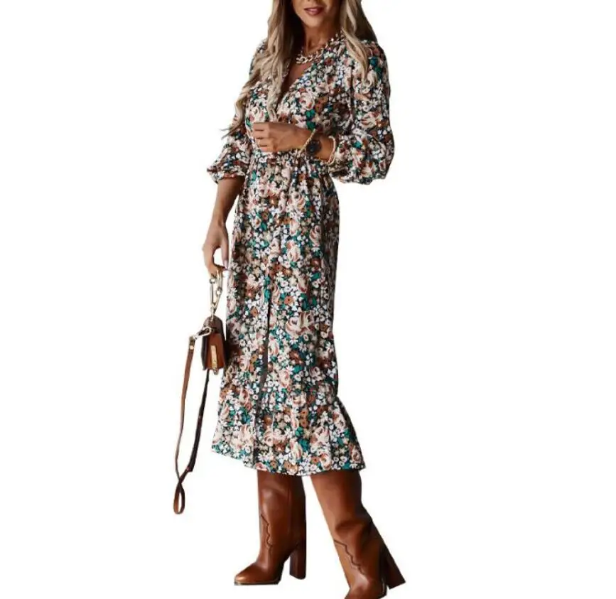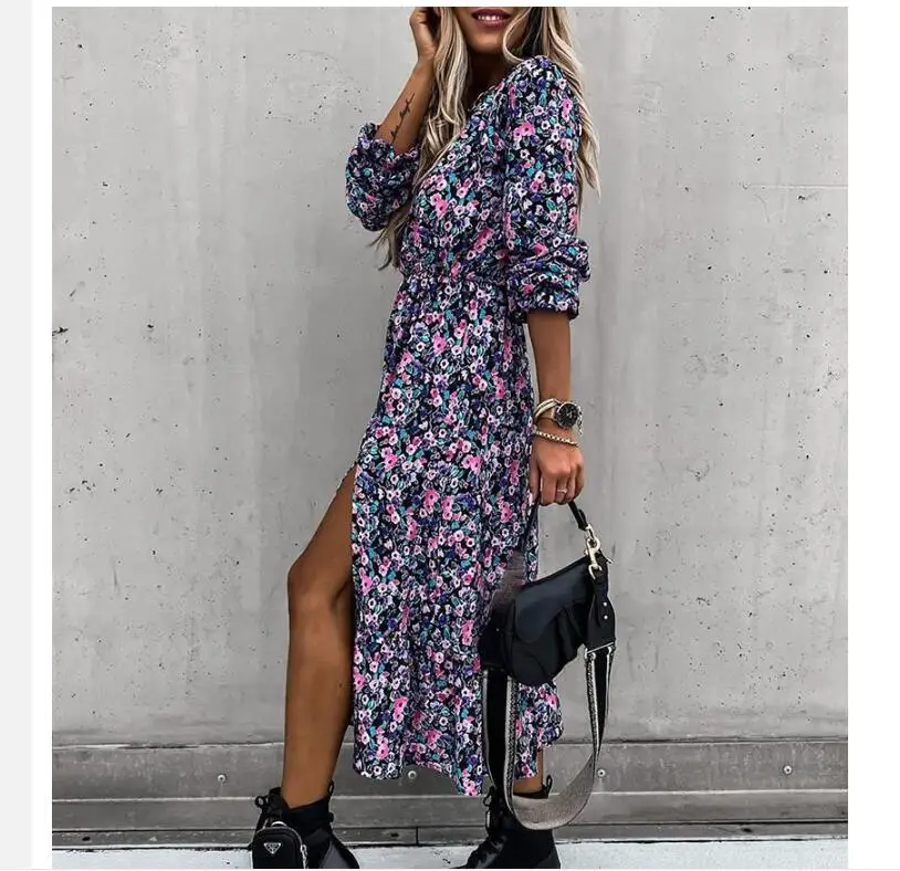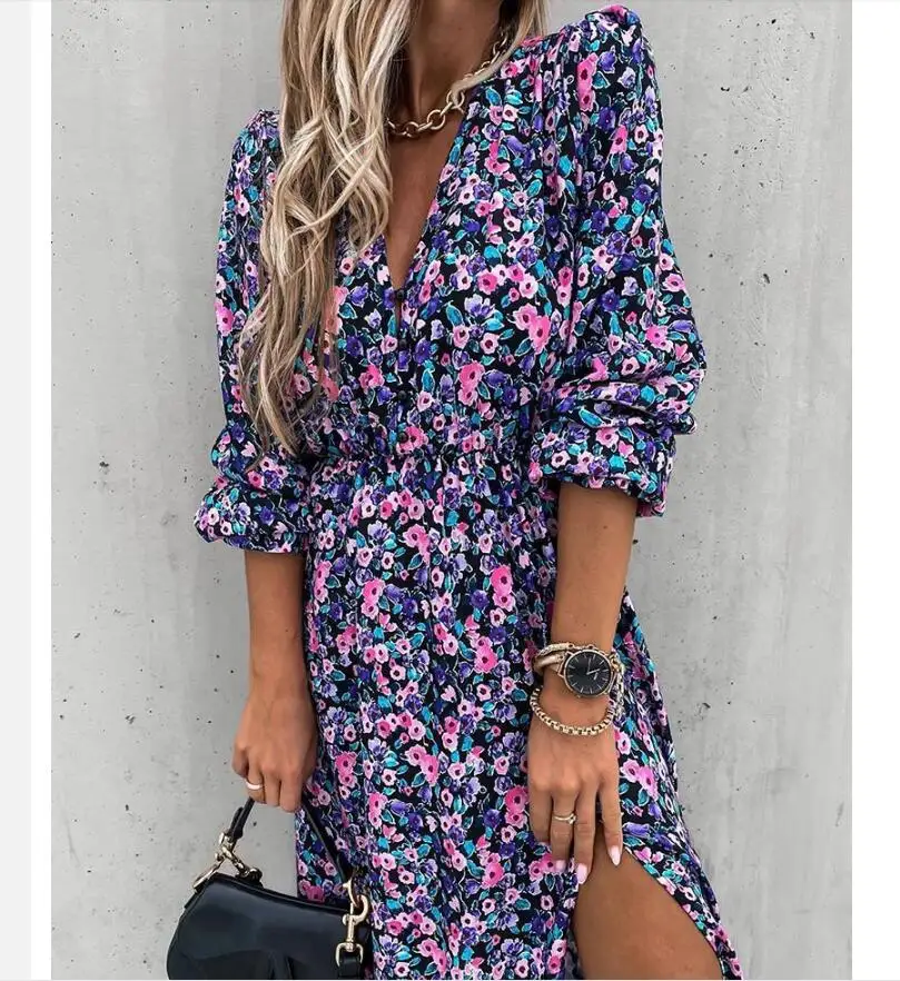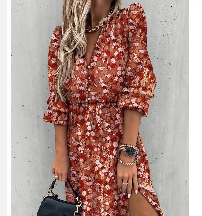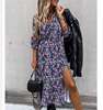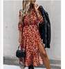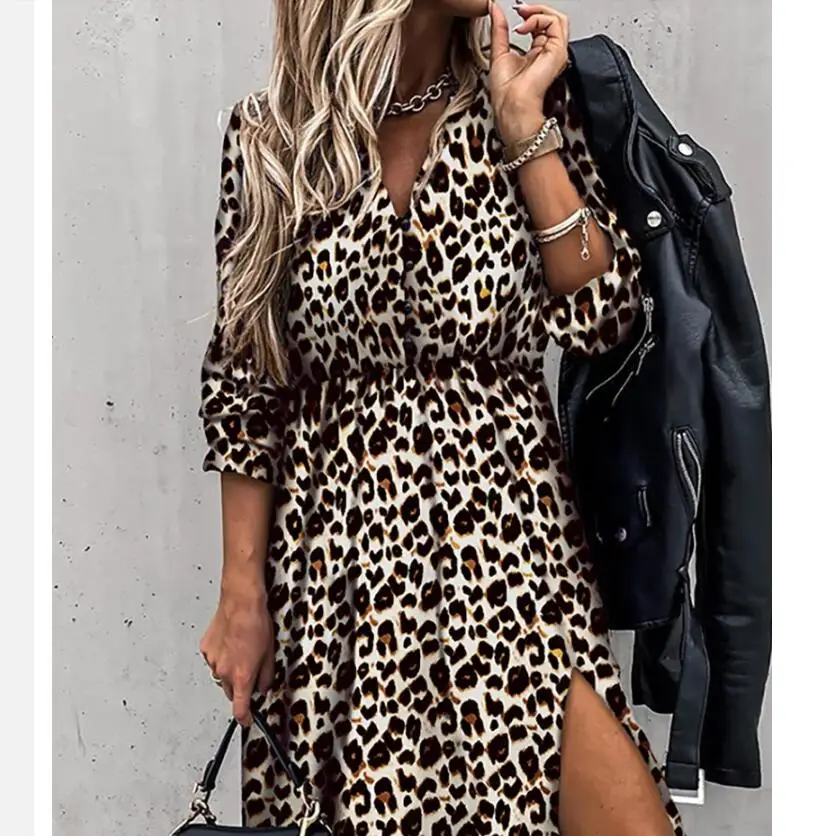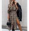 Leopard Women Autumn Dress 2020 Floral Print V-Neck Maxi Tunic Button Up Split vestido Flowy Evening Party Shirt Dresses