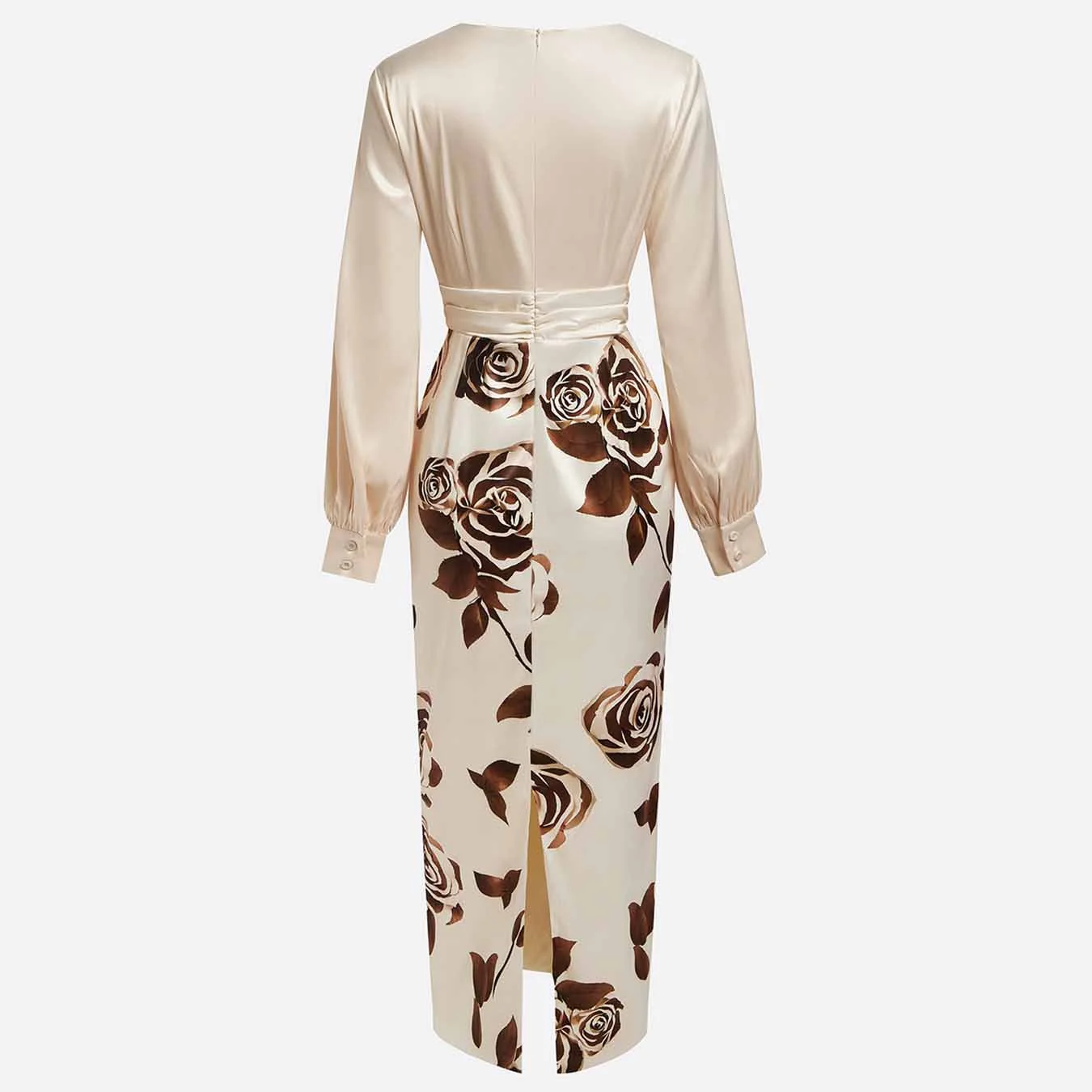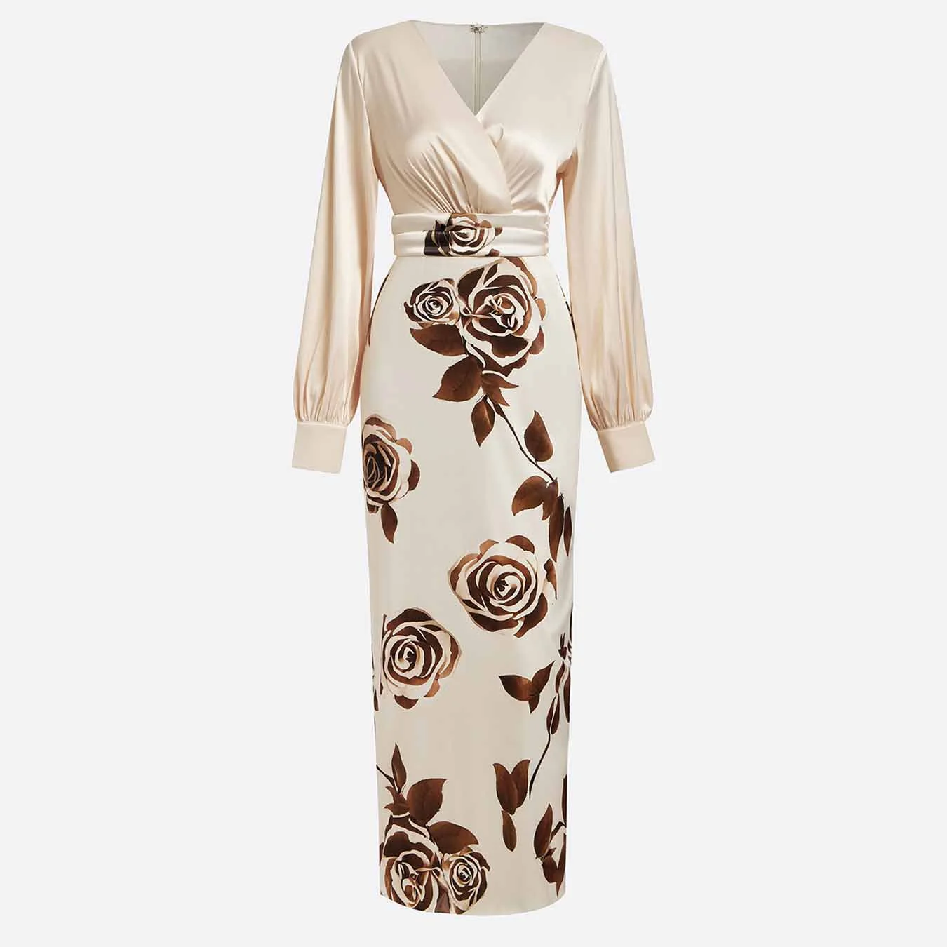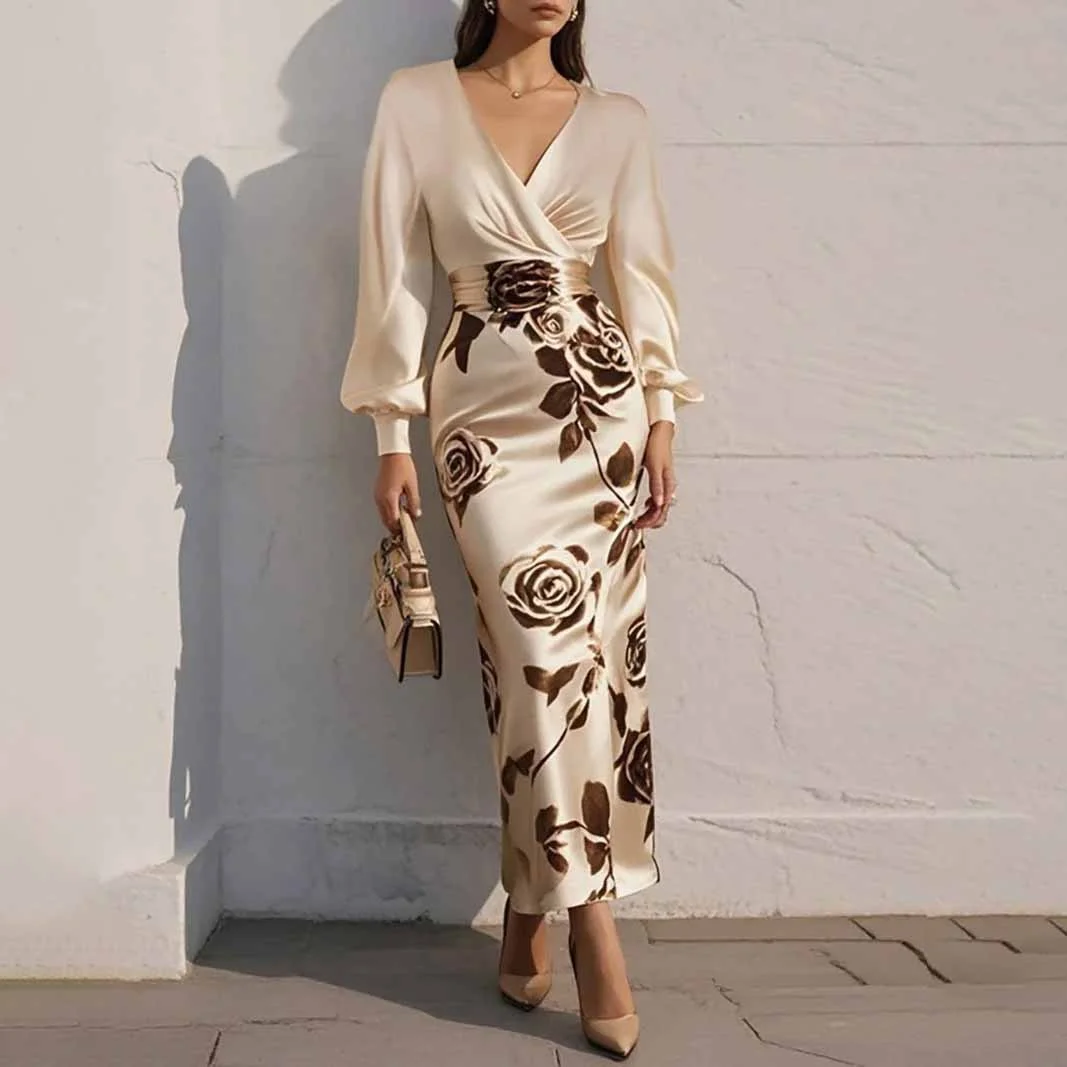Long Dress for Women Spring Fall Lantern Sleeve Slim High Waist Dress Elegant Sexy V-Neck Floral Print Party Dresses Vestido