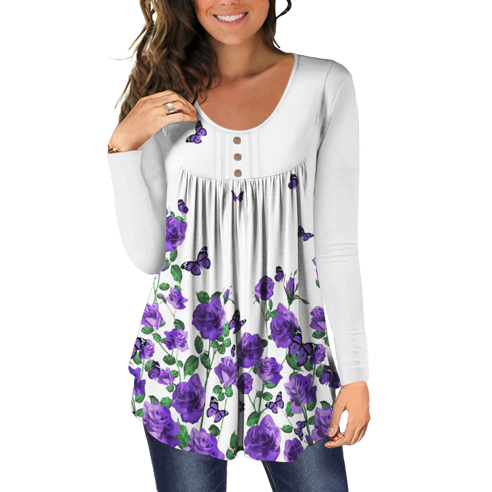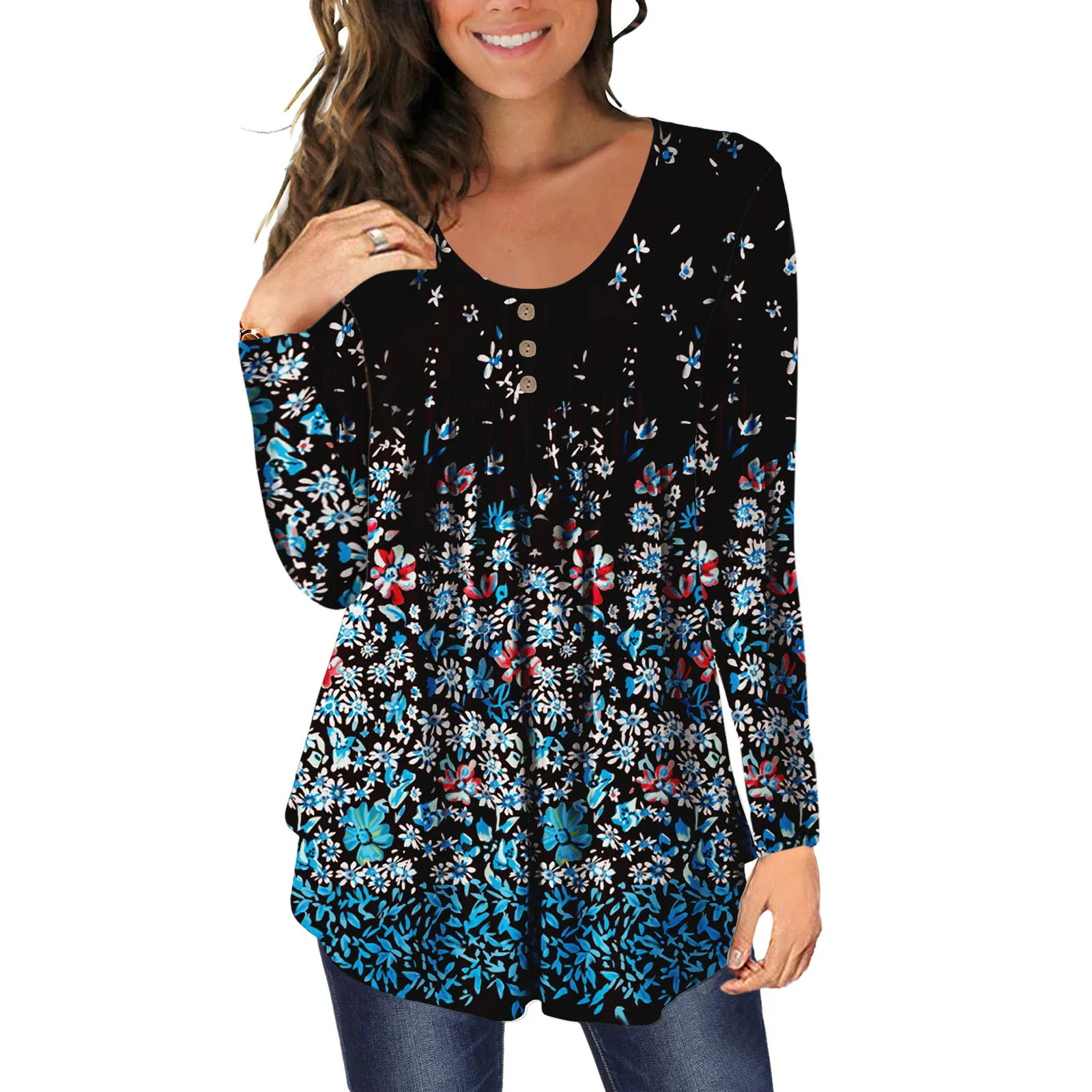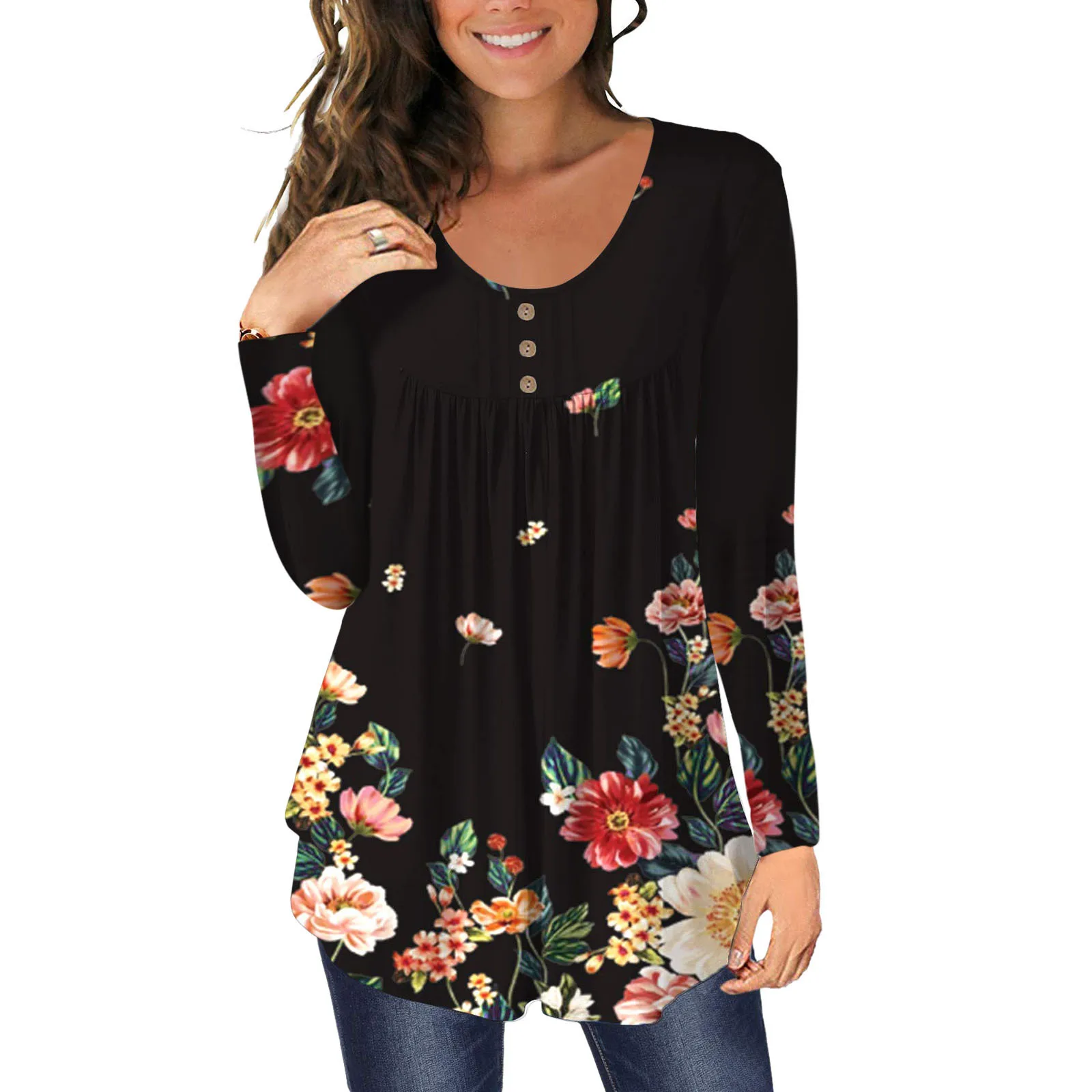 Long-sleeved Casual Blouse Women Fashion O-neck Floral Print Pullover Lady Office Shirts Autumn Vintage Elegant Loose Street Top