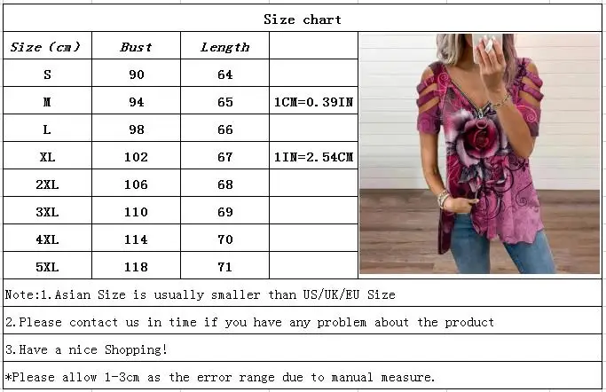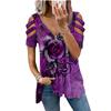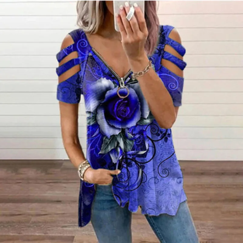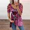 Loose Casual Printing Rose Printing T-shirt Top Summer Women's Short-sleeved V-neck Top Fashion Trend T-shirt Shirt Size
